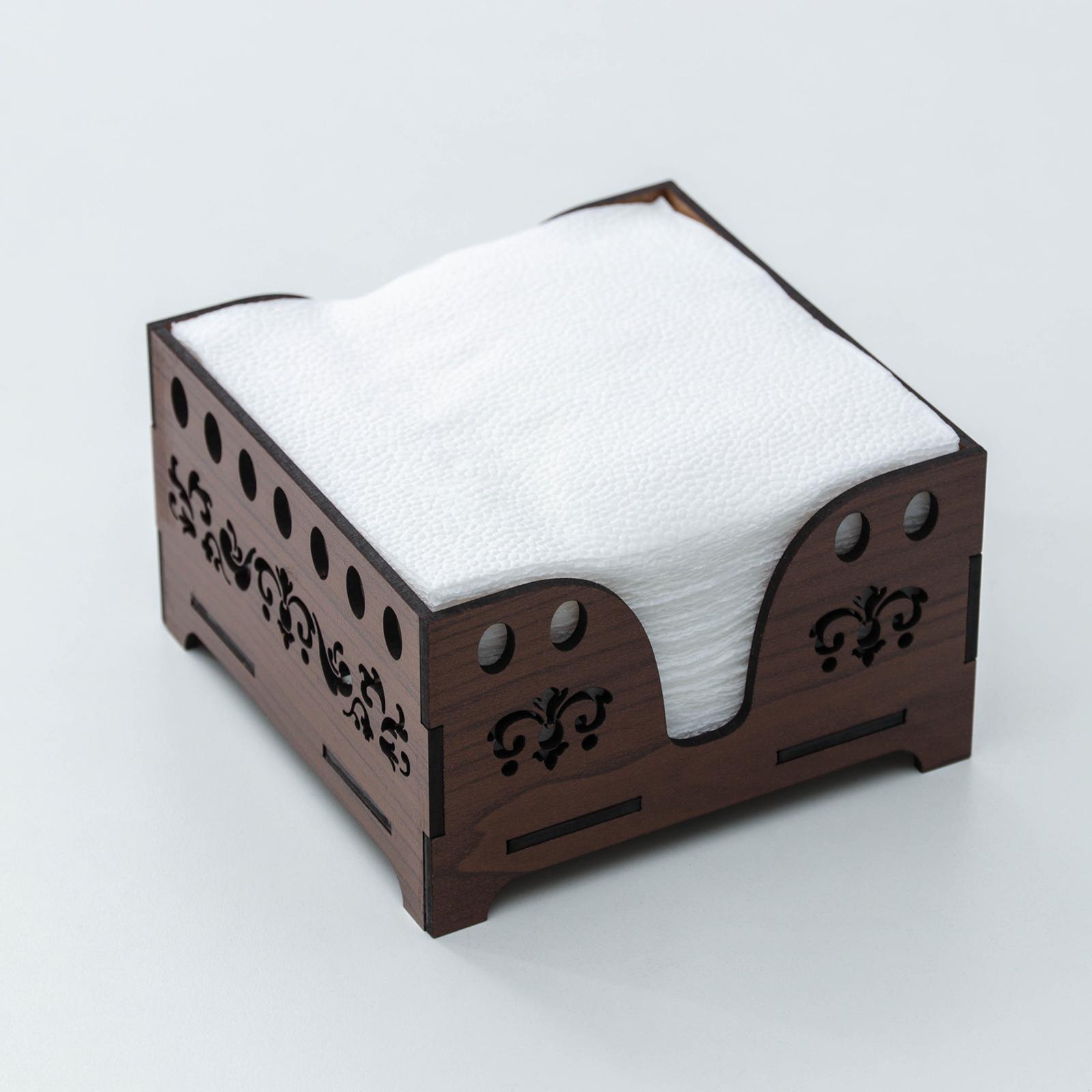 Салфетница доляна «орех», 12,5x12,5 см, с салфетками, деревянная, цвет коричневый
