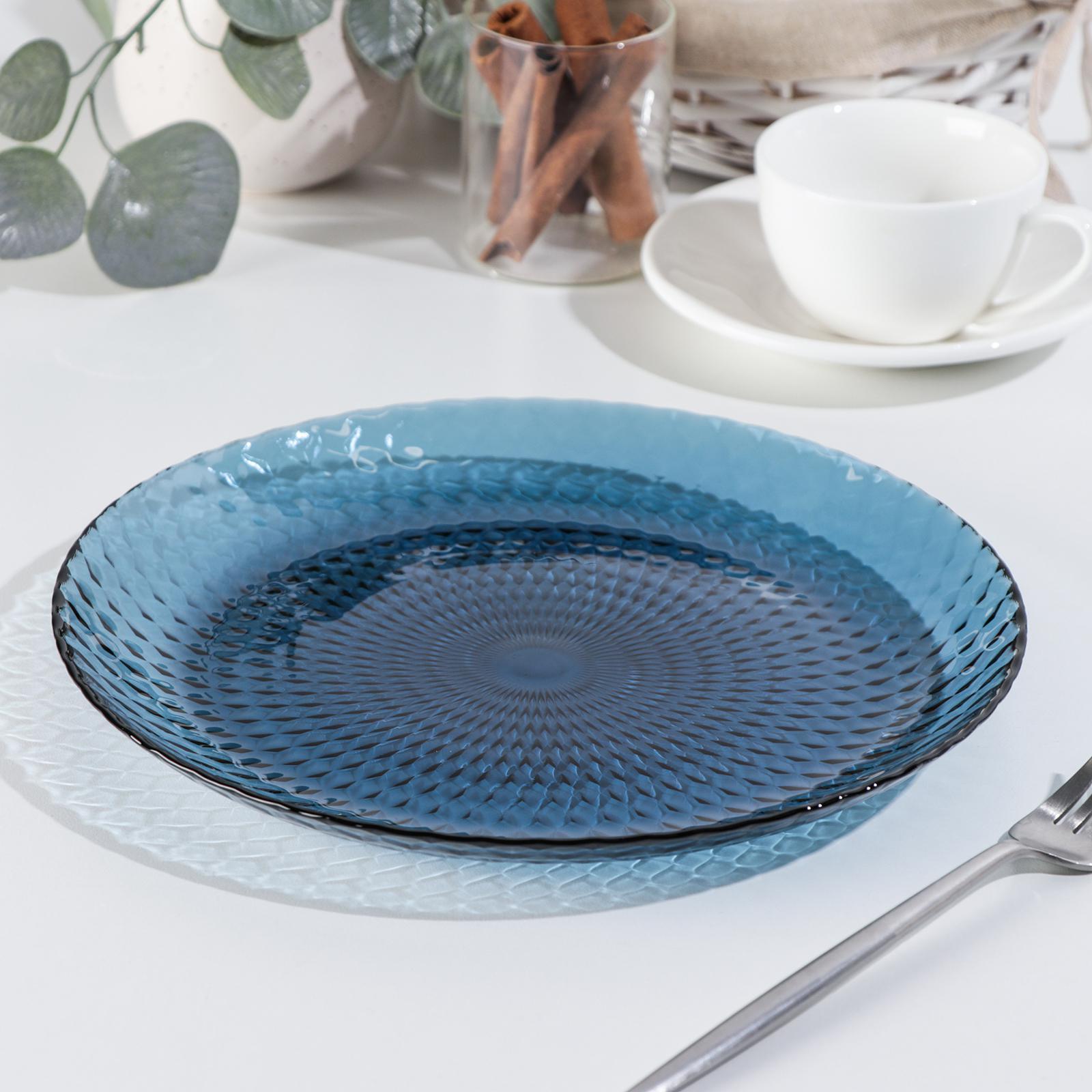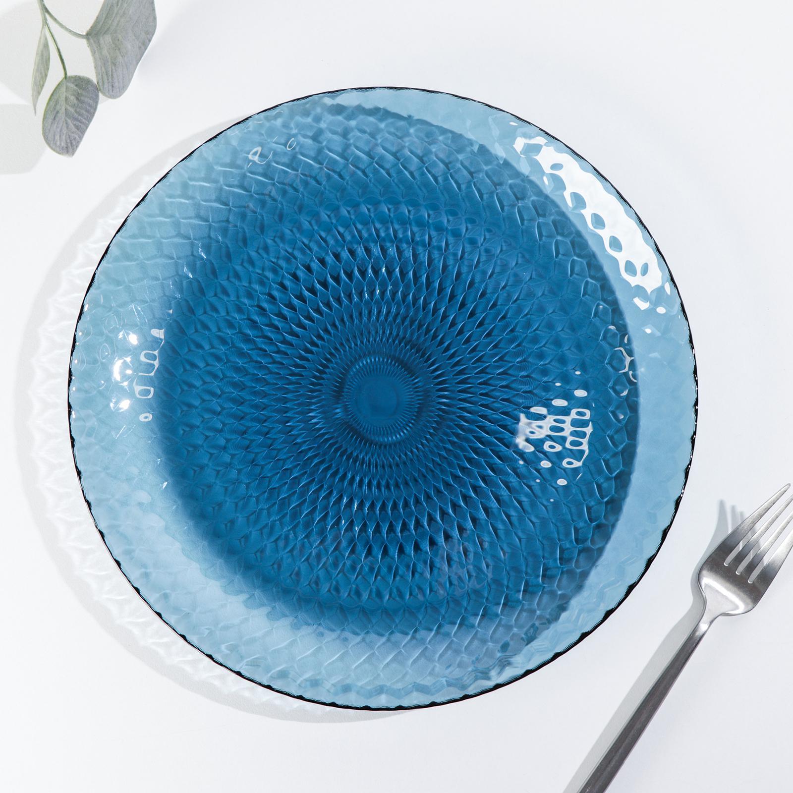 Тарелка плоская стеклянная «идиллия», D=25 см, цвет синий