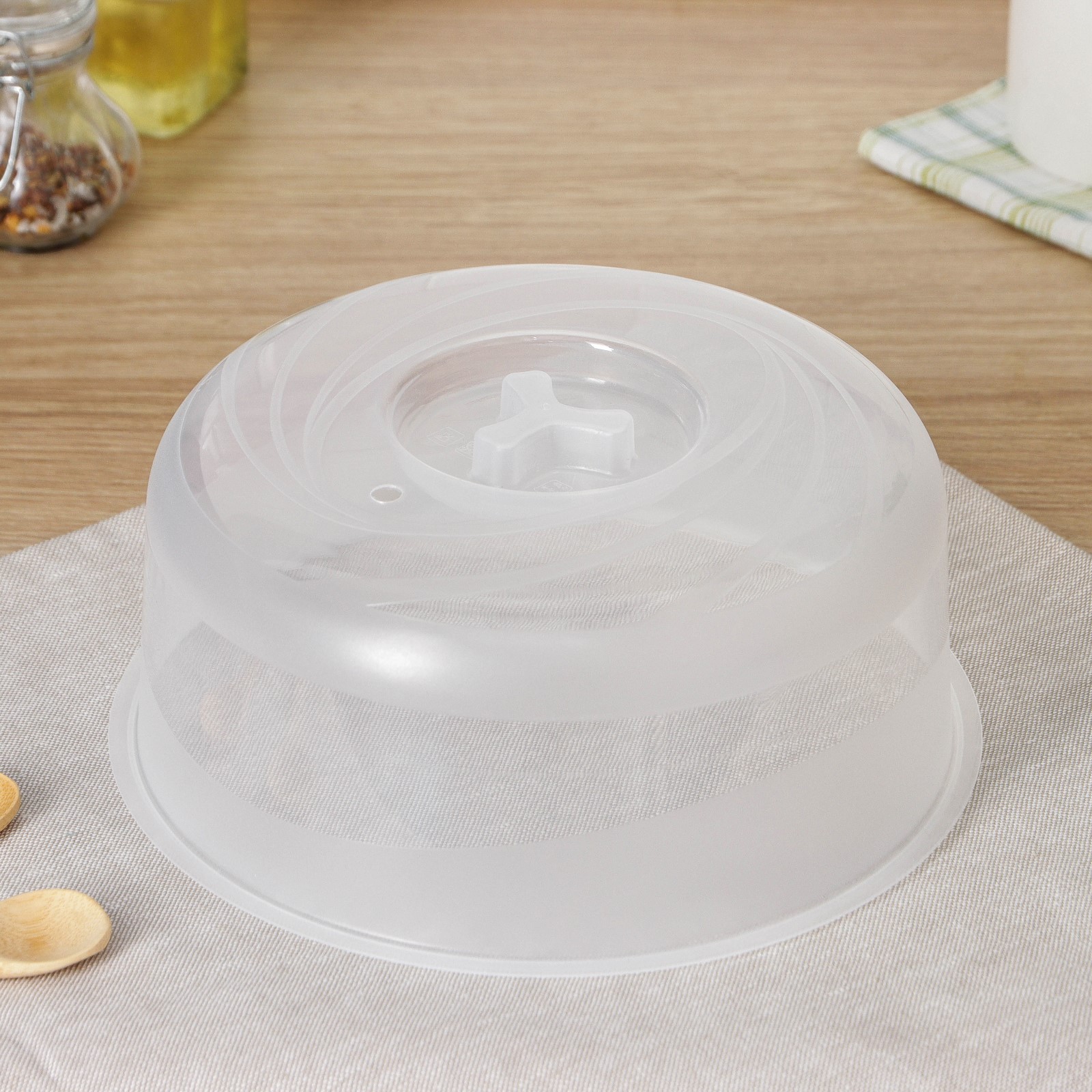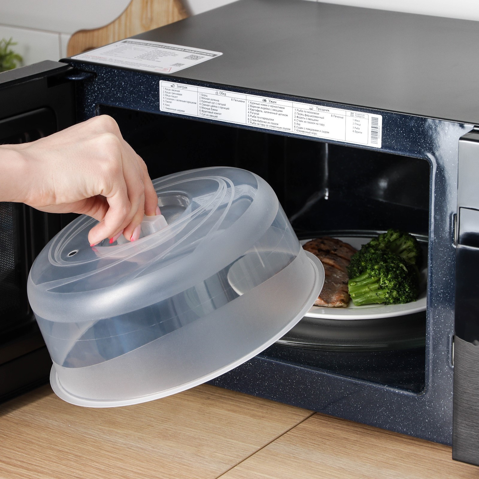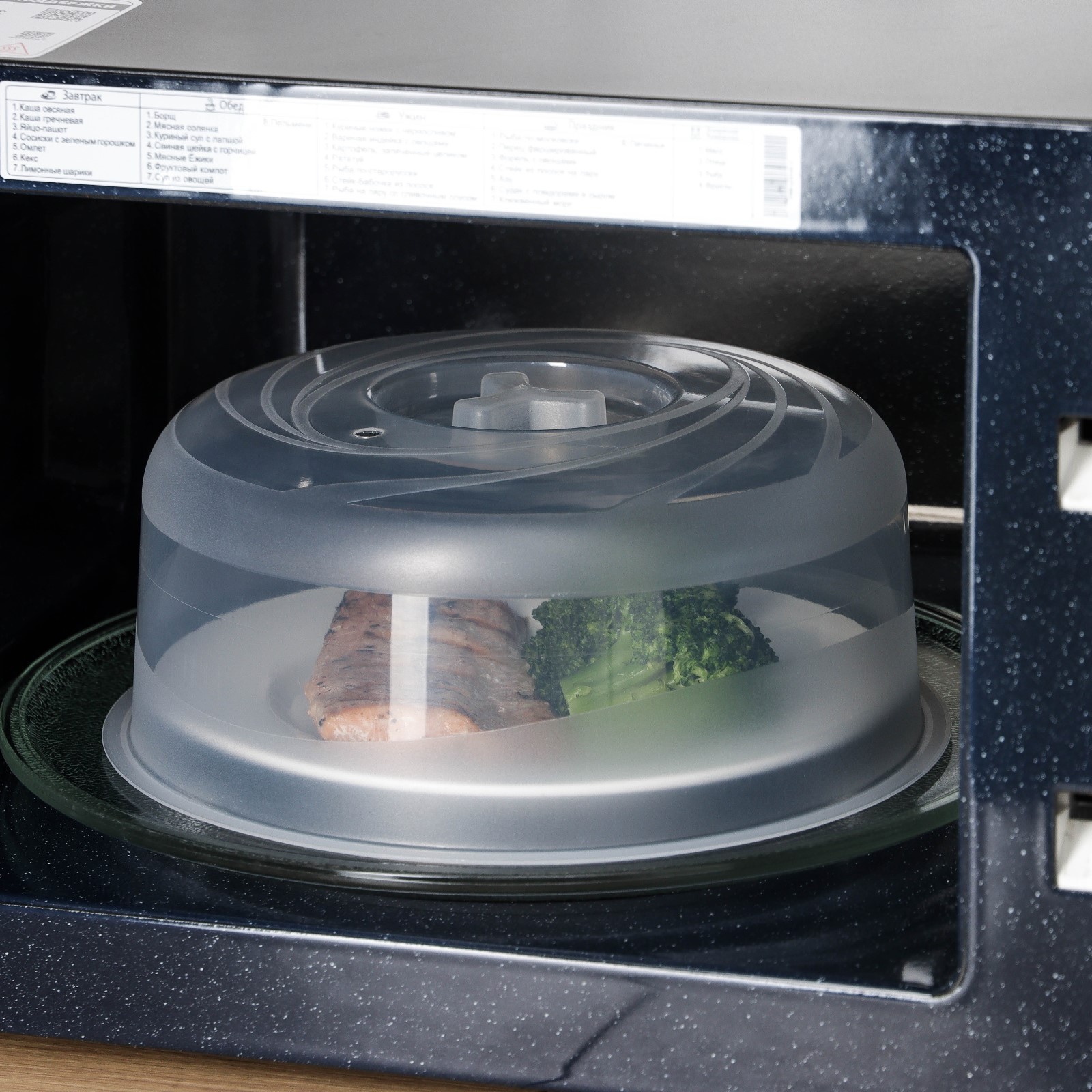 Крышка для свч, verona, d=23 см. Крышка для СВЧ сохранит ваши блюда сочными после разогрева в микроволновой печи, а саму печь защитит от загрязнения. Особенности крышки для СВЧ:Возможно использование при температуре от –40 до +110 °C. Имеется отверстие для выхода пара. С помощью крышки пища разогревается равномернее. Можно использовать в холодильнике как крышку для торта, сыра и т. п. Легко почистить как в тёплой, так и в холодной воде с помощью моющих средств для посуды. Нельзя применять в микроволновых печах при режиме «Гриль». Не впитывает запахи. Легка и удобна в использовании. Долговечность, практичность и экономия времени. Цвет: Прозрачный Форма: Круглая Диаметр, см: 23 Материал: Пластик Температурное ограничение: Нет Пищевой пластик: Да Форма: Круг, шар, цилиндр  развернуть описание ▼