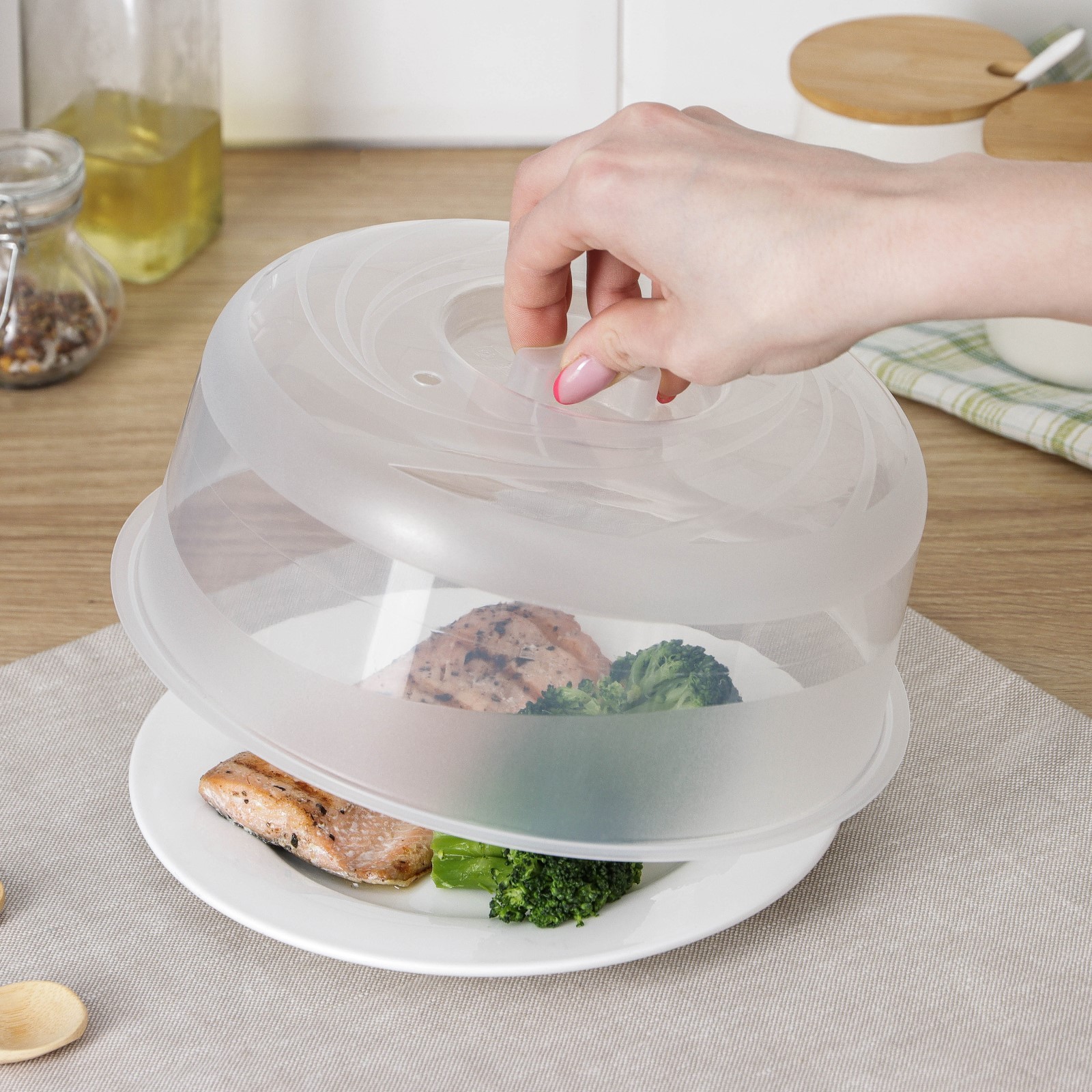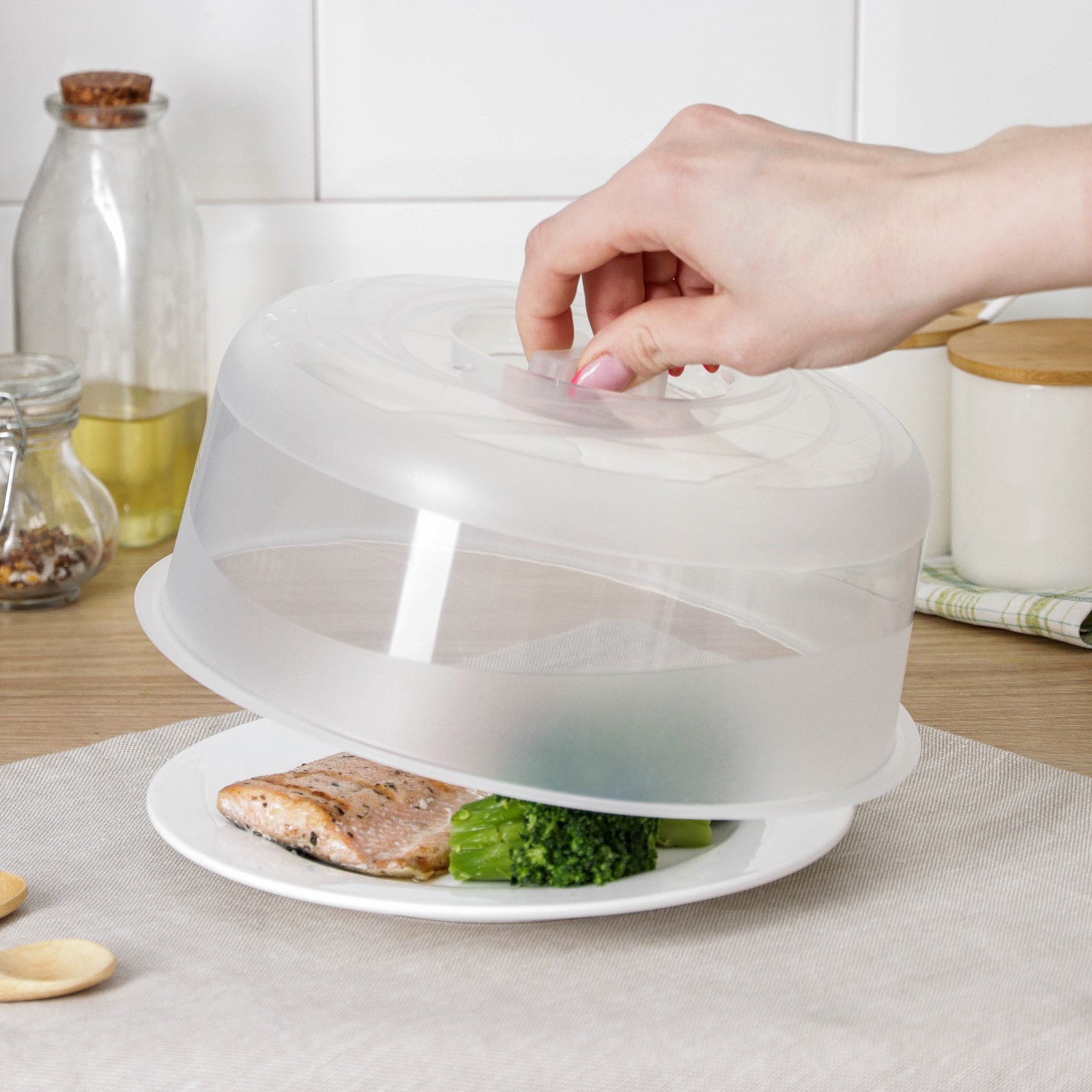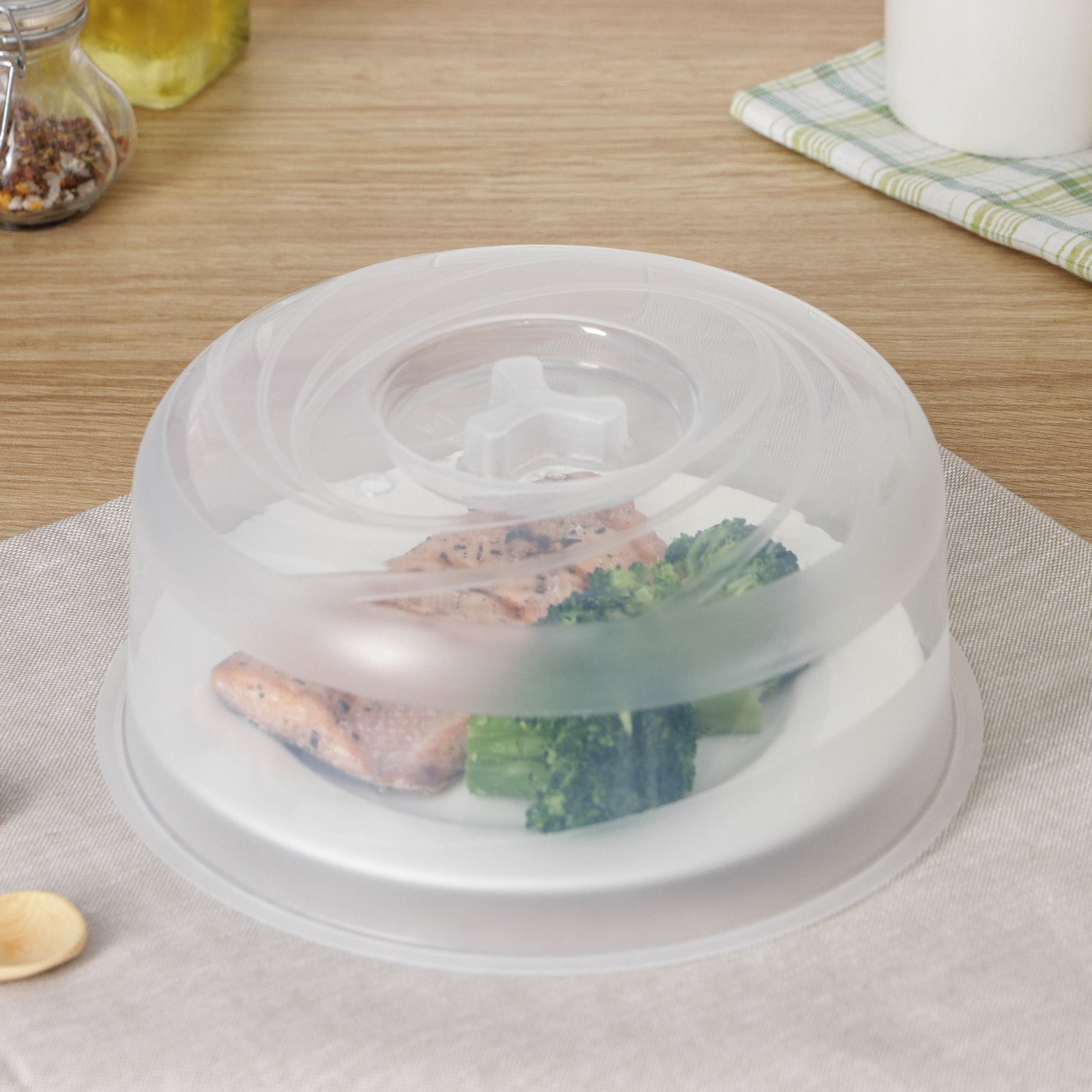 Крышка для свч, verona, d=23 см. Крышка для СВЧ сохранит ваши блюда сочными после разогрева в микроволновой печи, а саму печь защитит от загрязнения. Особенности крышки для СВЧ:Возможно использование при температуре от –40 до +110 °C. Имеется отверстие для выхода пара. С помощью крышки пища разогревается равномернее. Можно использовать в холодильнике как крышку для торта, сыра и т. п. Легко почистить как в тёплой, так и в холодной воде с помощью моющих средств для посуды. Нельзя применять в микроволновых печах при режиме «Гриль». Не впитывает запахи. Легка и удобна в использовании. Долговечность, практичность и экономия времени. Цвет: Прозрачный Форма: Круглая Диаметр, см: 23 Материал: Пластик Температурное ограничение: Нет Пищевой пластик: Да Форма: Круг, шар, цилиндр  развернуть описание ▼
