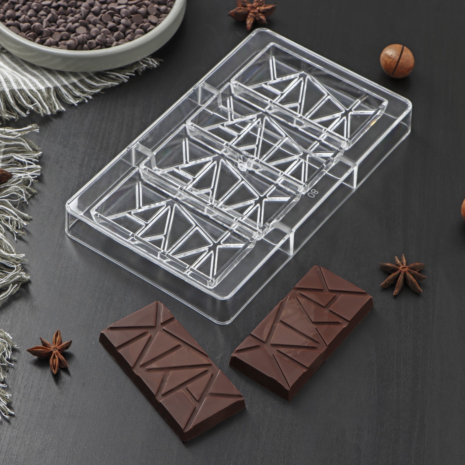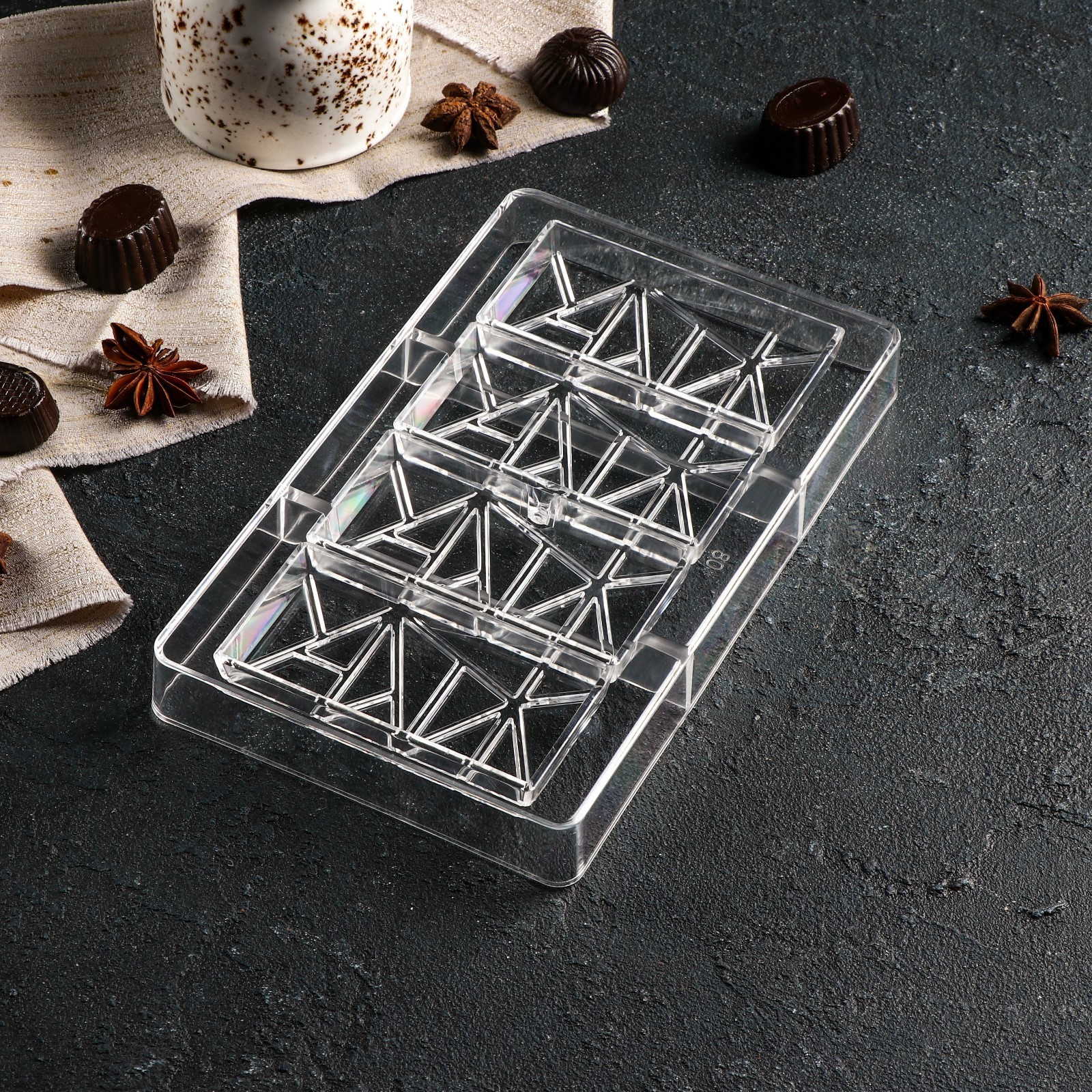 Форма для шоколада и конфет «лайни», 4 ячейки, 20x12x2,5 см, ячейка 8,5x4,2x1 см