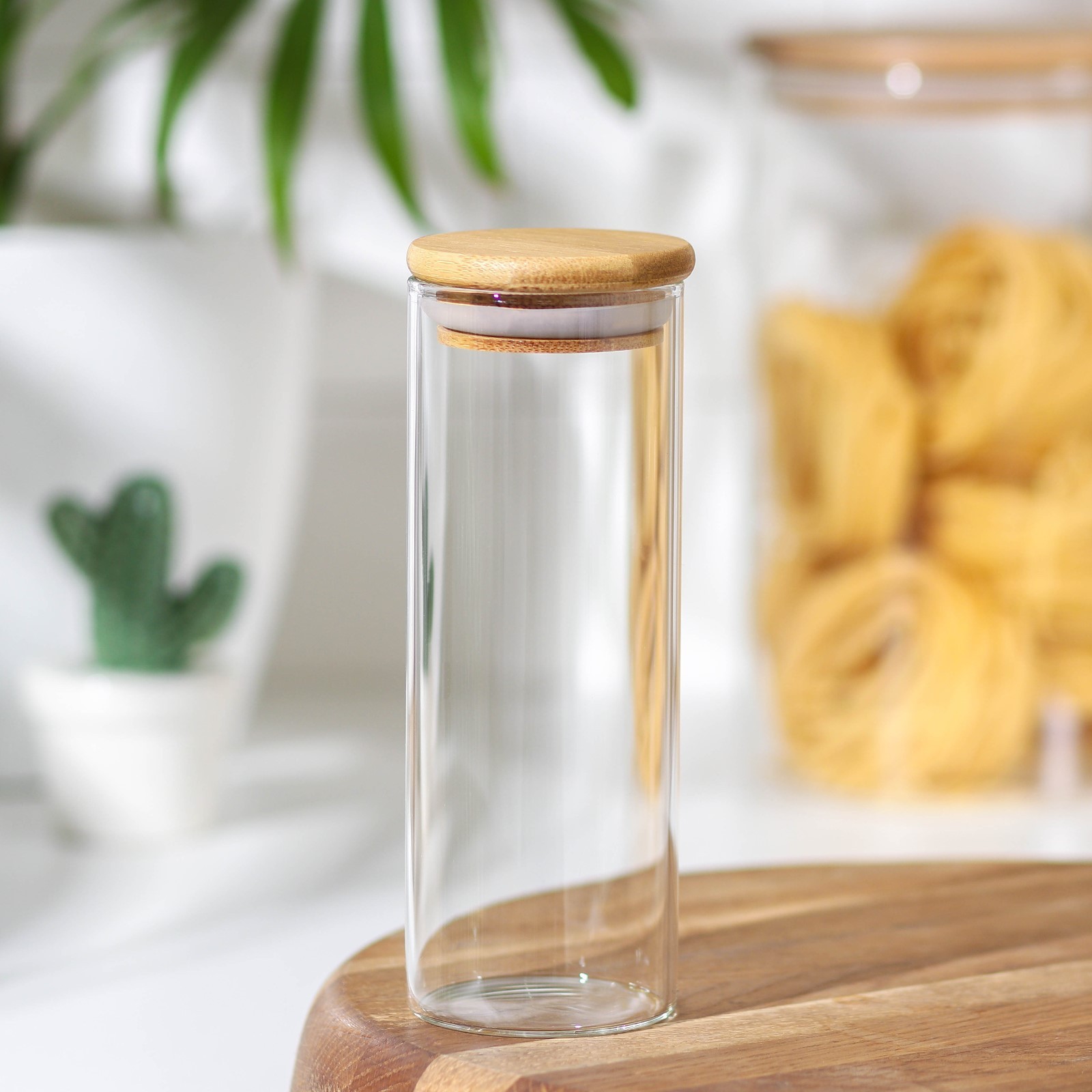 Банка стеклянная для сыпучих продуктов с бамбуковой крышкой «эко», 300 мл, 5,5x15,5 см