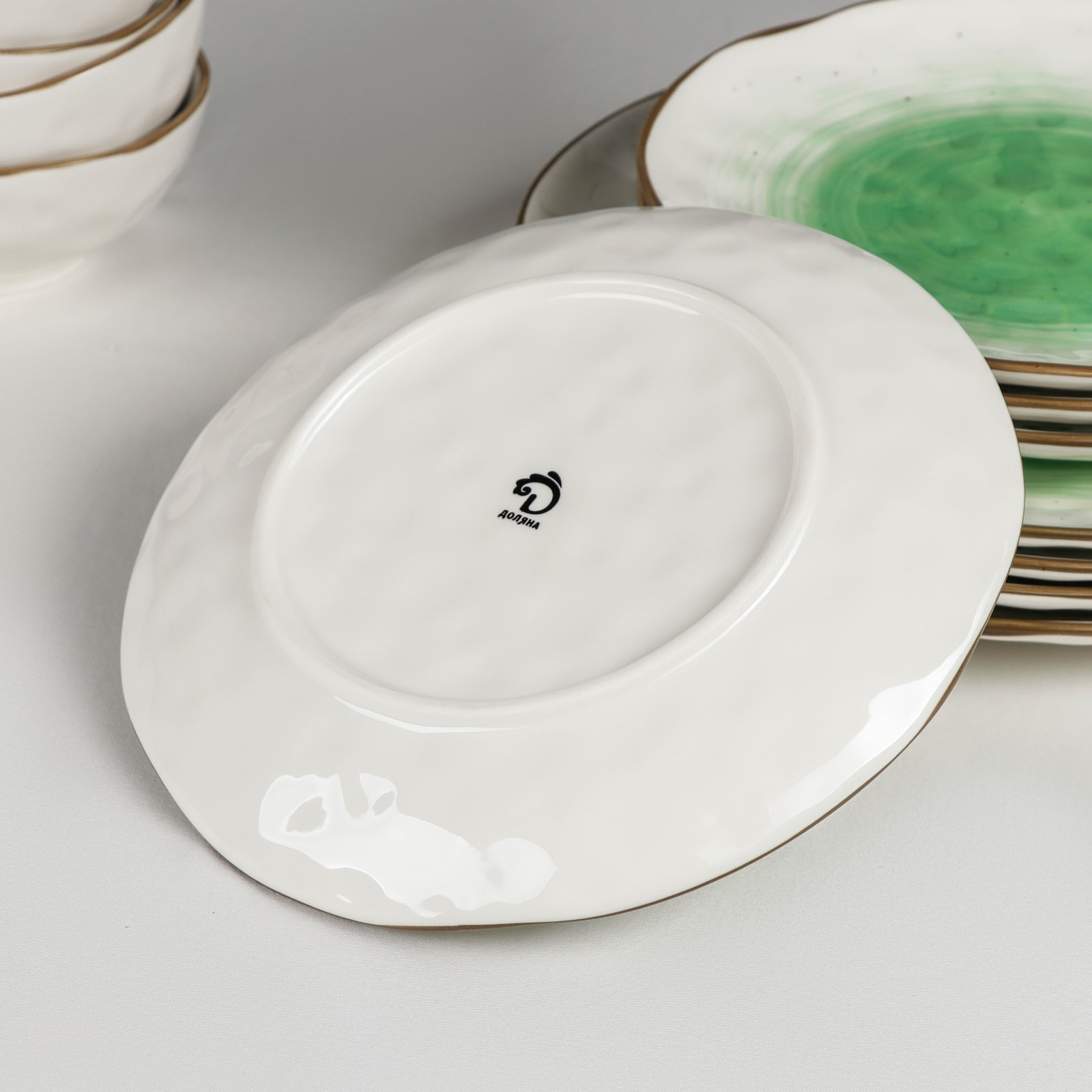 Набор фарфоровой посуды доляна «космос», 16 предметов: 4 тарелки d=21 см, 4 тарелки d=27,5 см, 4 миски d=13 см, 4 кружки 400 мл,. Уникальная коллекция посуды «Космос» от торговой марки Доляна откроет перед вами свои космические просторы! Вся серия изготовлена из прочной керамики и обладает неповторимым дизайном: рельефная «мятая» текстура и насыщенные цвета. Несмотря на свой оригинальный внешний вид, посуду можно применять ежедневно. Керамическая посуда выдерживает низкие и высокие температуры, что позволяет блюдам дольше сохранять тепло. Изделия отличаются высоким качеством исполнения и при бережном использовании прослужат вам долгие годы. Можно использовать в посудомоечной машине и в СВЧ-печи. Цвет: Зелёный Цвет: Белый Форма: Круглая Диаметр, см: 13 Диаметр, см: 21 Диаметр, см: 27.5 Количество персон: 4 В наборе, шт.: 16 Объём, мл: 370 Объём, мл: 400 Тематика: Градиент Материал: Фарфор Вид тарелки: Плоская Вид тарелки: Глубокая Можно мыть в посудомоечной машине: Да Можно использовать в СВЧ-печи: Да Текстура: С рельефом Особенности: Без особенностей Матовая поверхность: Нет Для горячего: Да Запрет реализации по сегментам: 00000000485  развернуть описание ▼