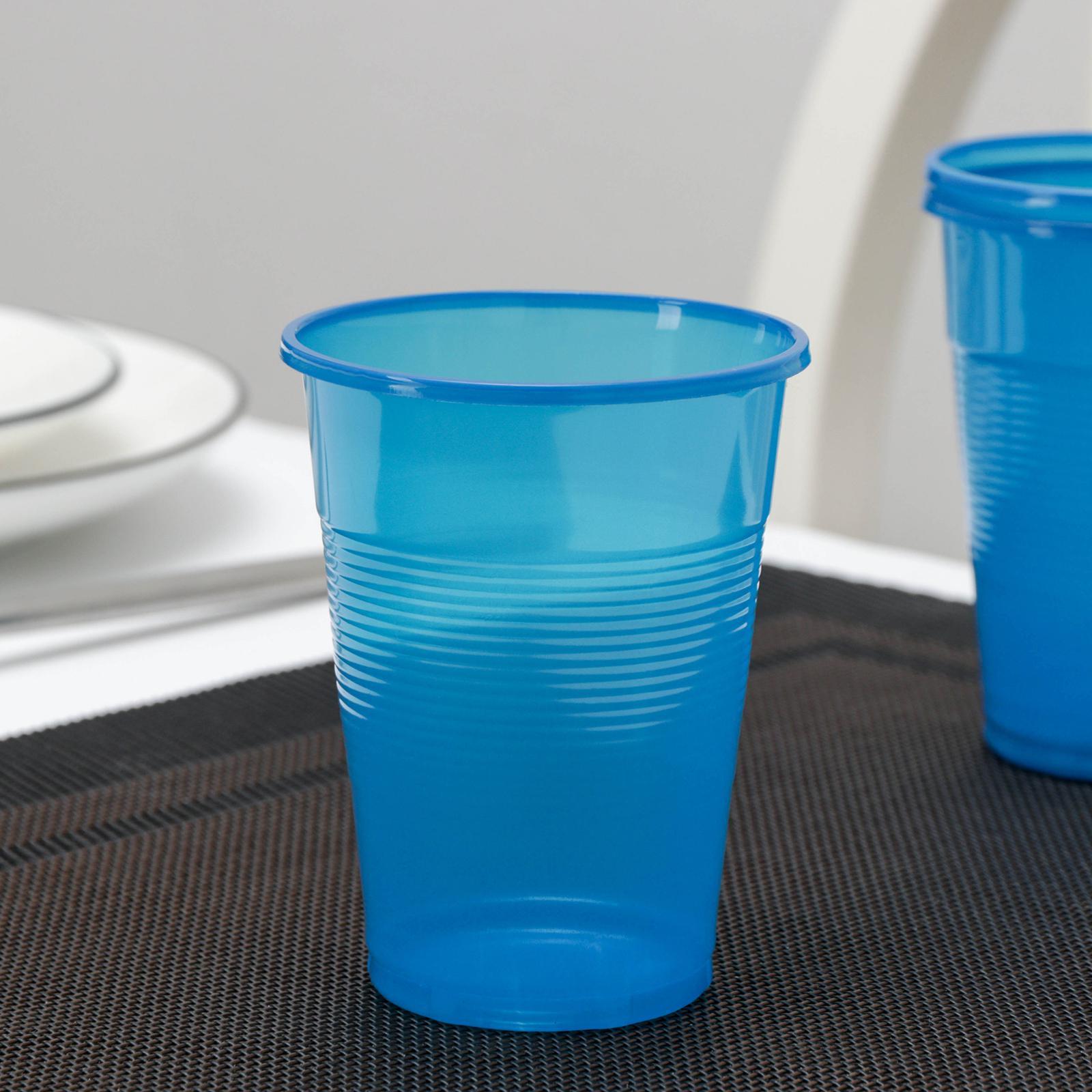 Стакан одноразовый пластиковый «мопс», 200 мл, цвет синий