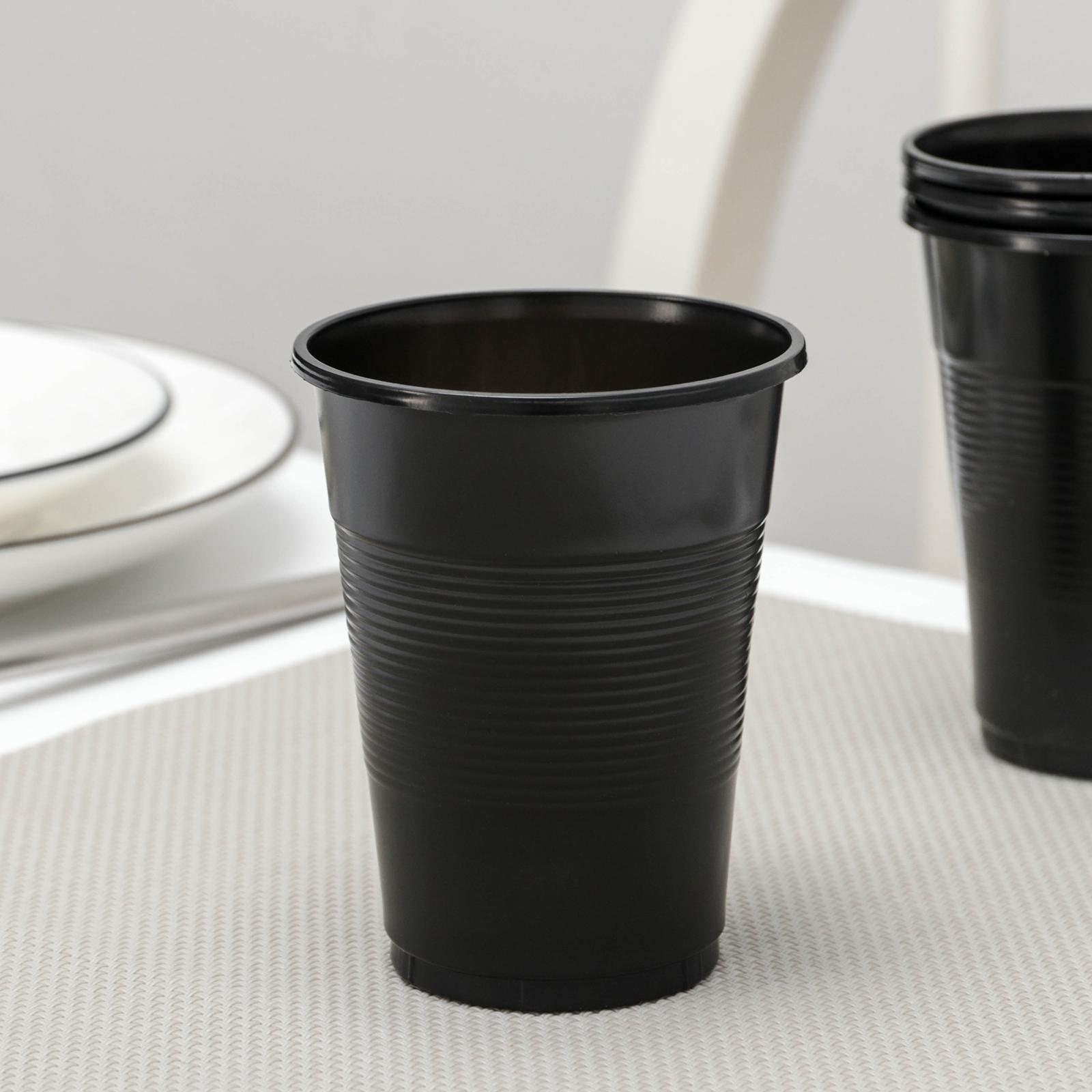 Стакан одноразовый пластиковый «мопс», 200 мл, цвет чёрный