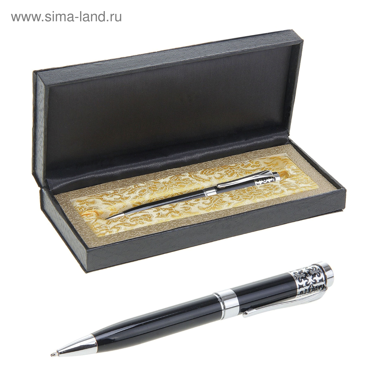 Ручка подарочная, шариковая «гравюра» в кожзам футляре, чёрно-серебристая