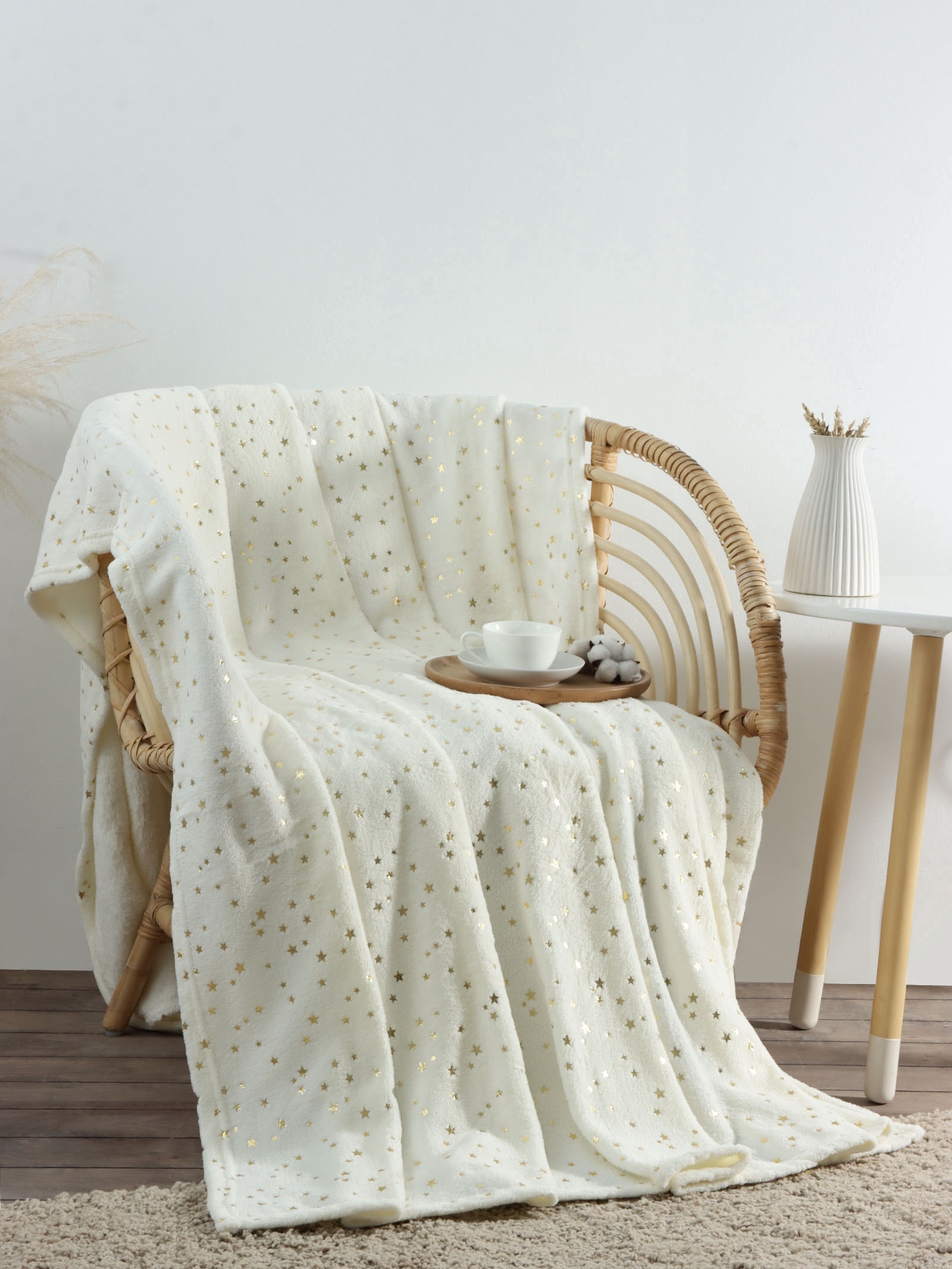 Плед «этель. золотые звезды», 180 200 см, корал-флис, белый