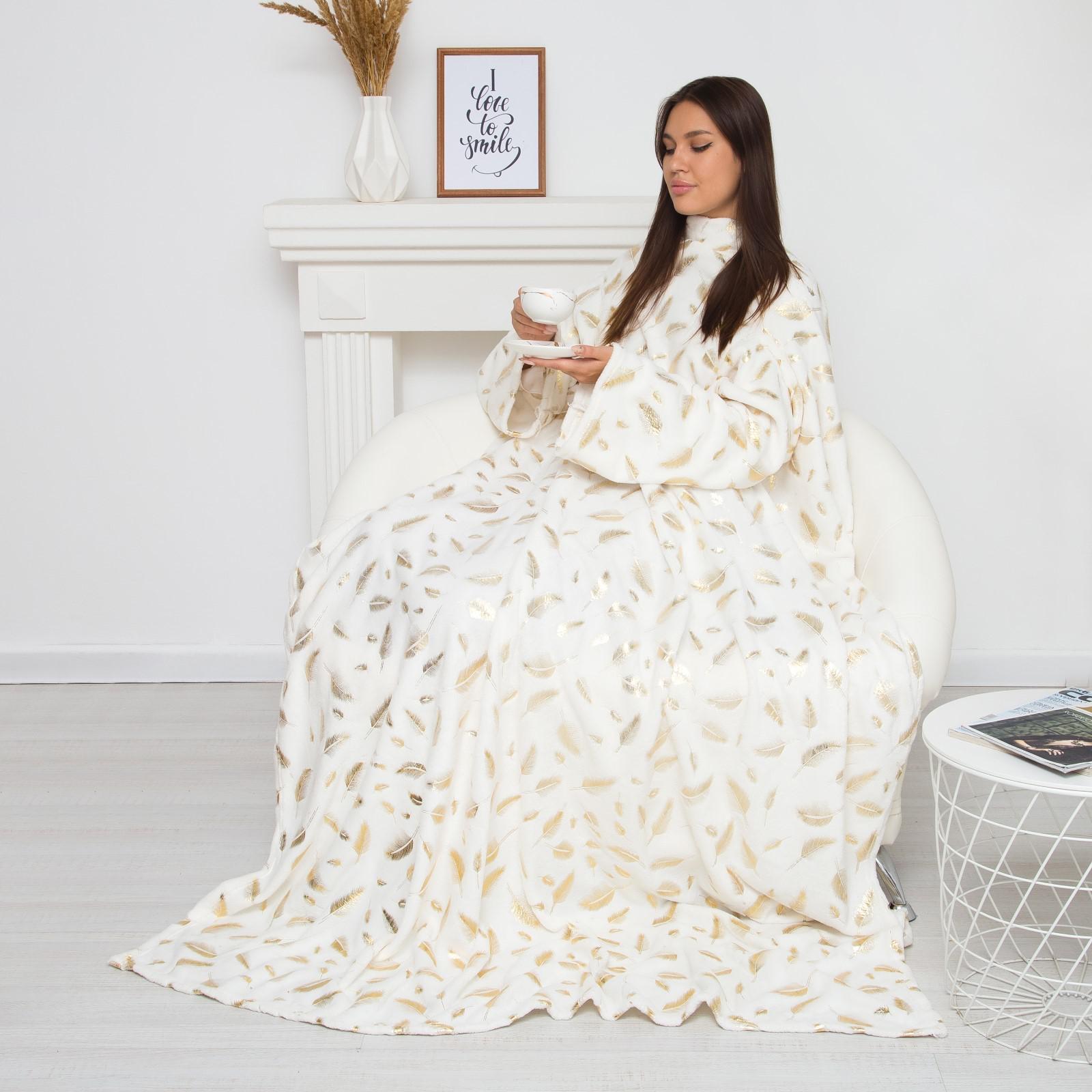 Плед с рукавами «этель. перья», 150 200 см, корал-флис