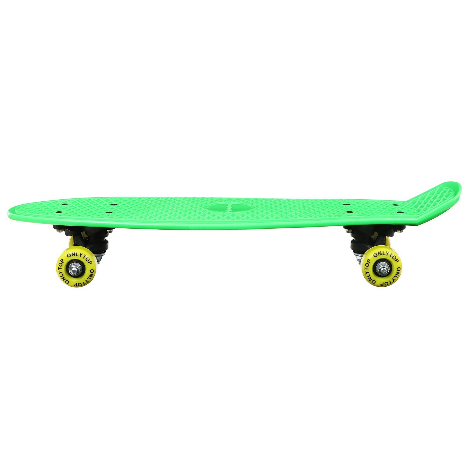 Пенниборд onlytop, 56х15 см, колёса pvc 50 мм, пластиковая рама, цвет изумрудный. Компактный и манёвренный пенниборд — отличный выбор для юных начинающих скейтбордистов. Предназначен для катания по городским улицам. Дека с ребристой поверхностью обеспечивает хорошее сцепление с подошвой обуви и не позволяет ногам скользить по доске. Материал деки изготовлен из пластика — это повышает уровень долговечности и устойчивости к влаге, поэтому пенниборд подходит для регулярной езды в любых погодных условиях. Цвет: Зелёный Возраст: От 6 лет Количество колёс: 4 Ширина деки, см: 15 Maксимальная нагрузка, кг: 50 Диаметр колеса, мм: 50 Длина деки, см: 56 Материал колёс: Пластиковые Материал деки: Пластик Вид: Пенниборд Материал подвески: Пластик Тип подшипника: ABEC-7  развернуть описание ▼