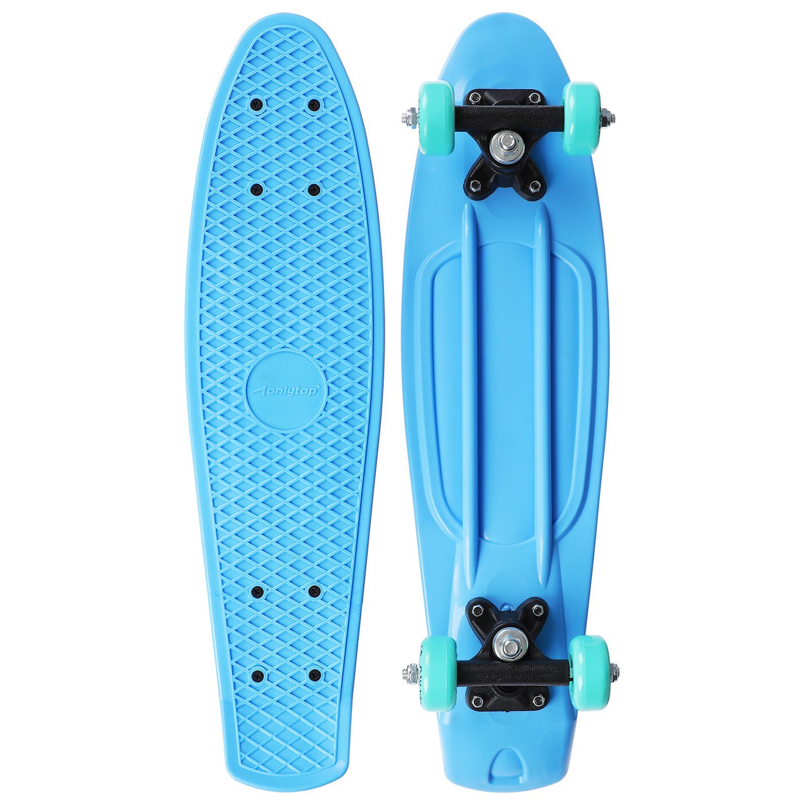 Пенниборд onlytop, 56х15 см, колёса pvc 50 мм, пластиковая рама, цвет светло-голубой.