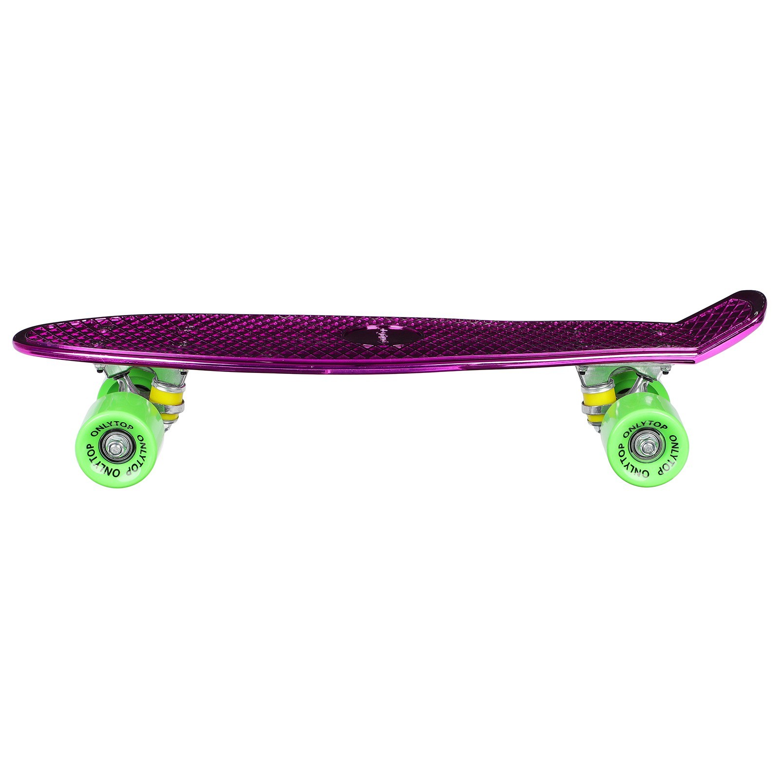 Пенниборд onlytop, 56х15 см, колёса pu 60х45 мм, алюминиевая рама, цвет фиолетовый. Компактный и манёвренный пенниборд — отличный выбор для юных начинающих скейтбордистов. Предназначен для катания по городским улицам. Дека с ребристой поверхностью обеспечивает хорошее сцепление с подошвой обуви и не позволяет ногам скользить по доске. Материал деки изготовлен из пластика — это повышает уровень долговечности и устойчивости к влаге, поэтому пенниборд подходит для регулярной езды в любых погодных условиях. Колёса изготовлены из полиуретана — крепкого и износостойкого материала, который обеспечивает хорошую устойчивость на поверхности и позволяет кататься на плитке и брусчатке. Подшипники ABEC 7 обладают высокой точностью вращения и влагозащитой. Цвет: Фиолетовый Возраст: От 6 лет Количество колёс: 4 Ширина деки, см: 15 Maксимальная нагрузка, кг: 50 Длина деки, см: 56 Диаметр колеса, мм: 60 Материал колёс: Полиуретановые Материал деки: Пластик Вид: Пенниборд Материал подвески: Алюминий Тип подшипника: ABEC-7  развернуть описание ▼