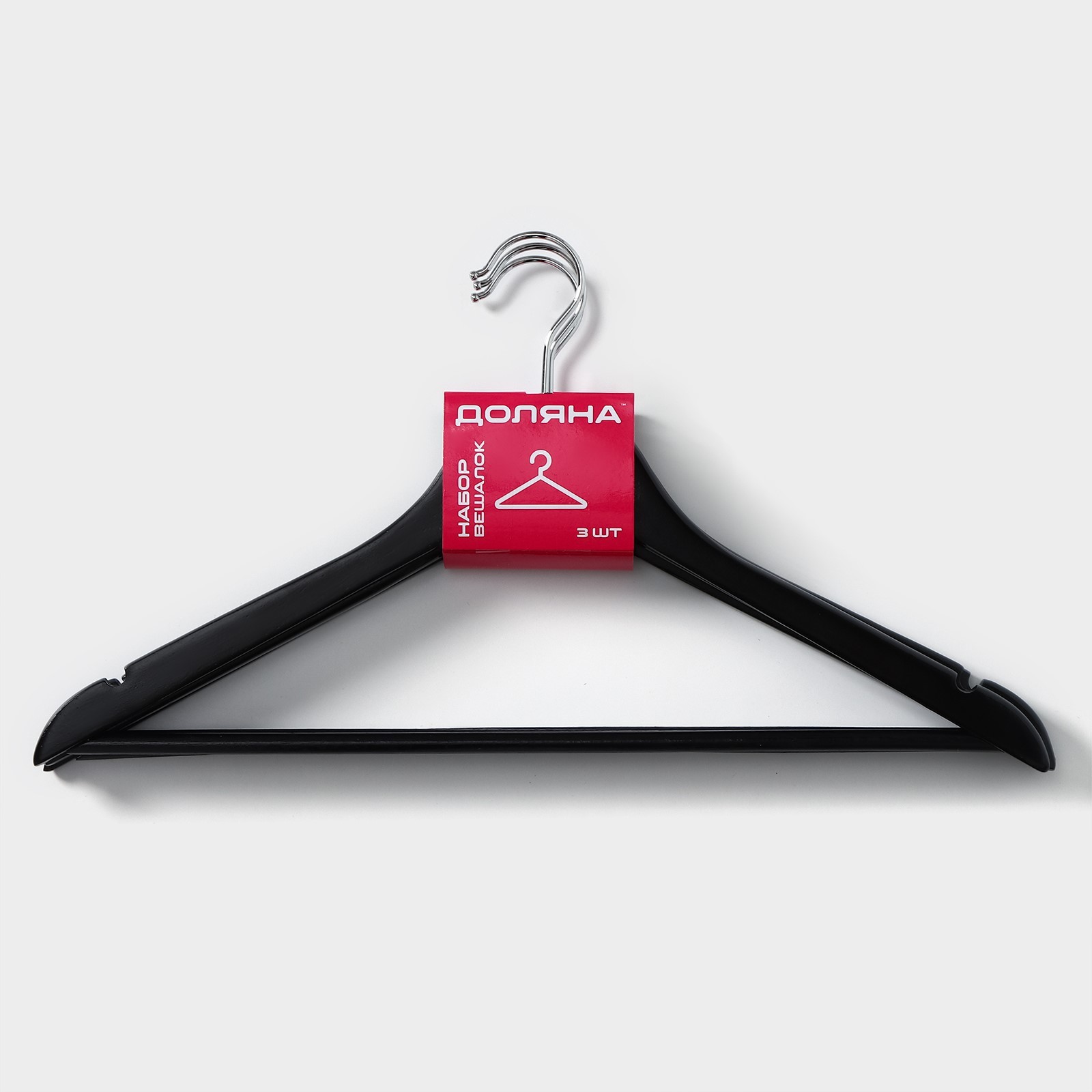 Плечики - вешалки для одежды деревянные с перекладиной доляна, 44,5х23 см, 3 шт, сорт в, цвет чёрный