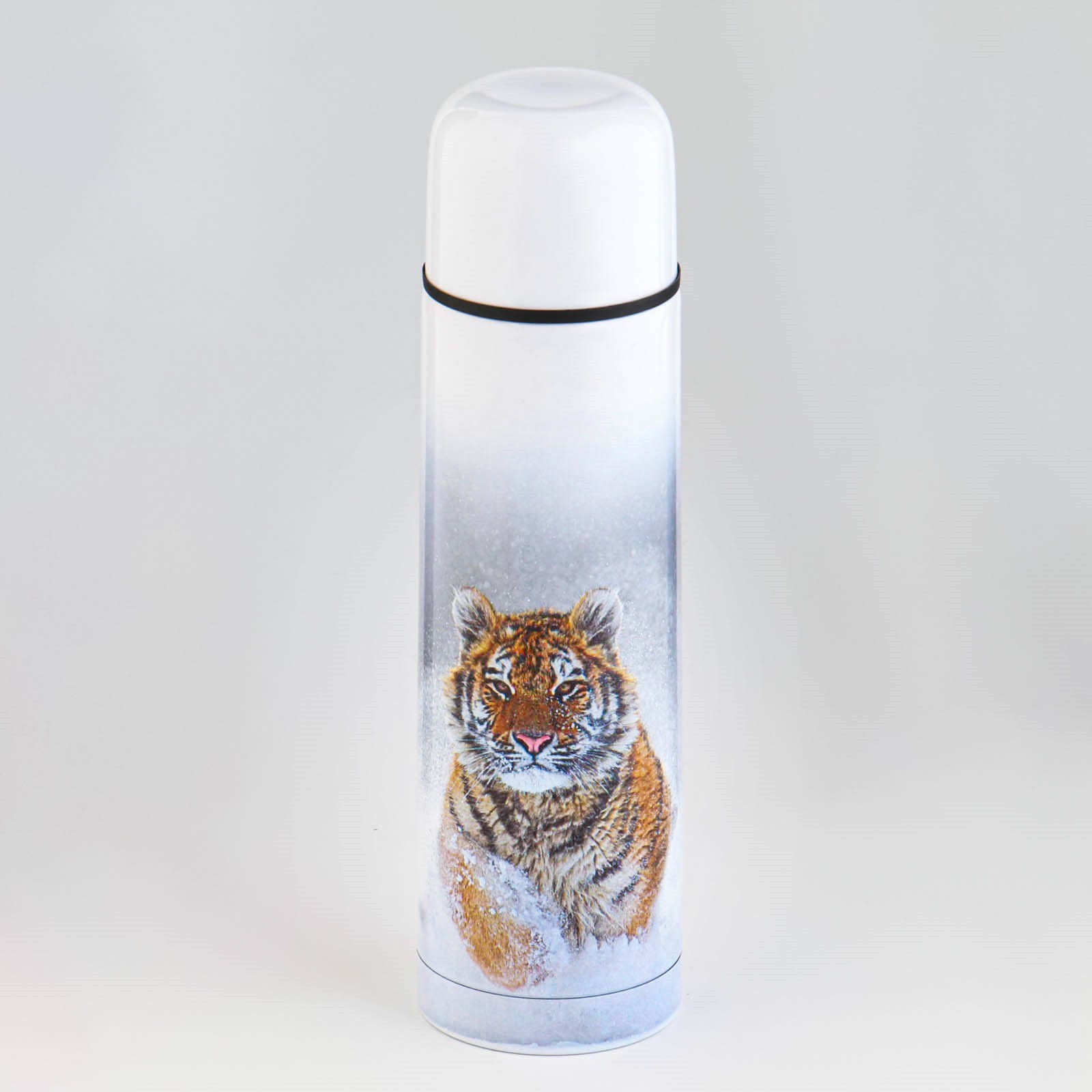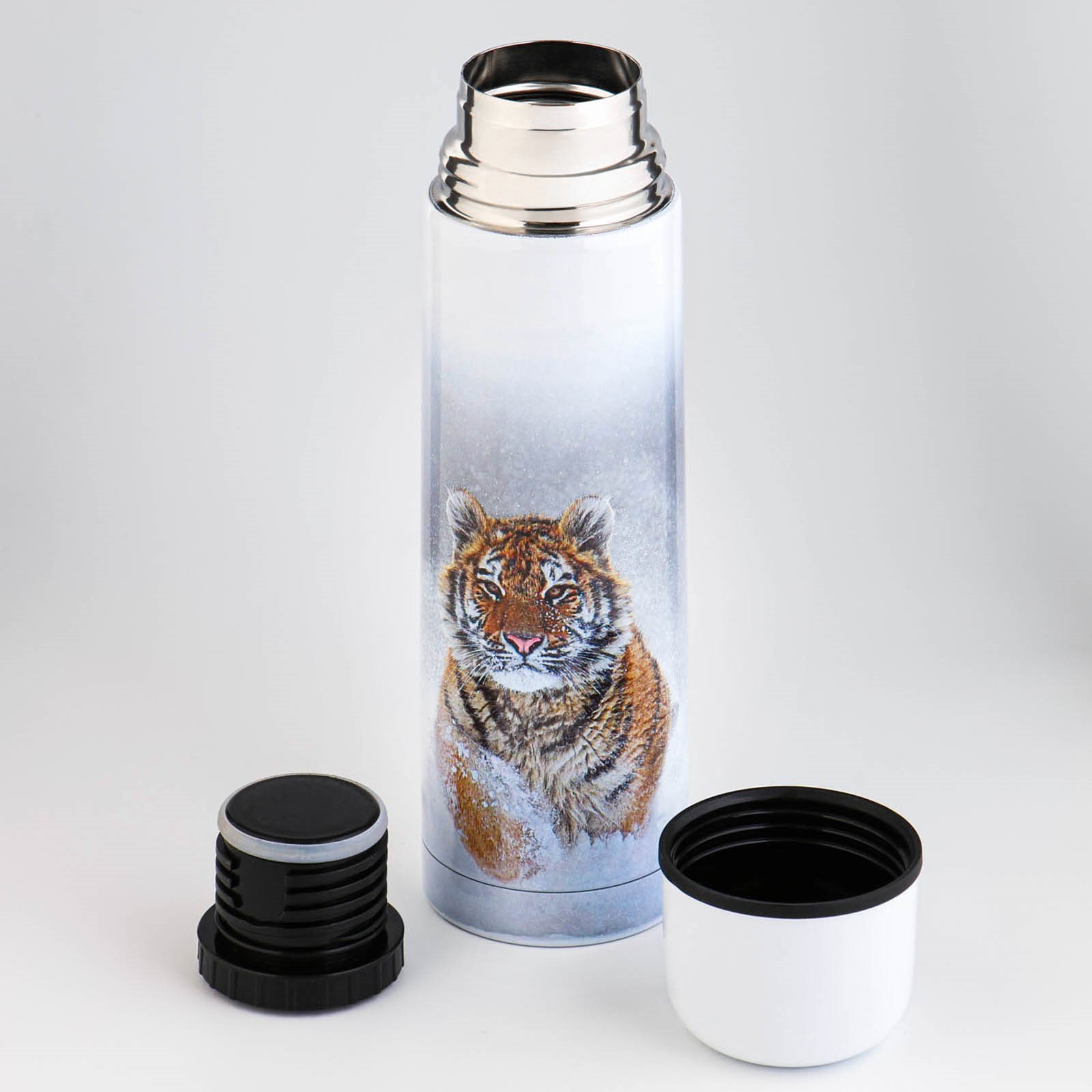 Термос, 500 мл, гильза "мастер к. тигр", с кружкой, сохраняет тепло 24 ч, хром