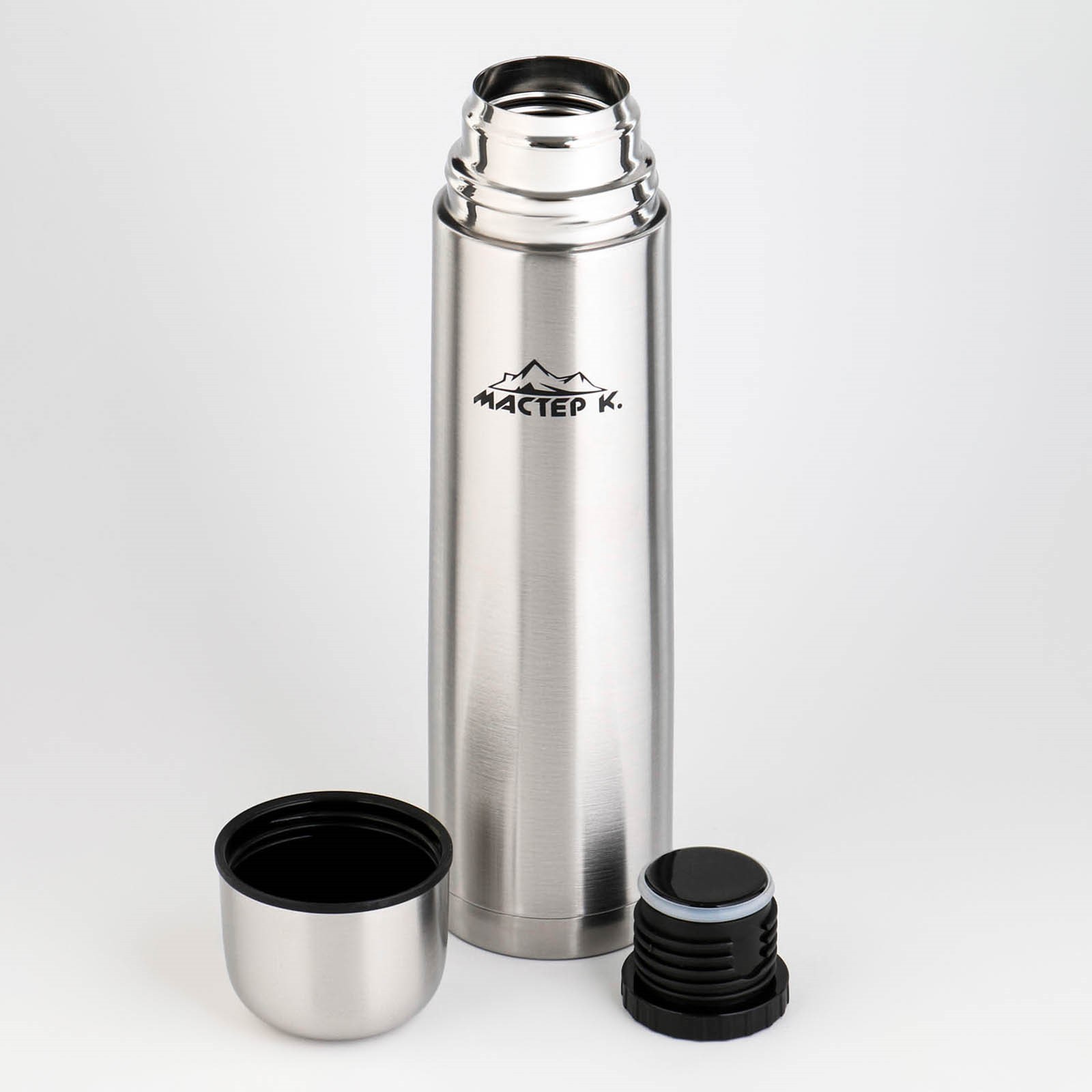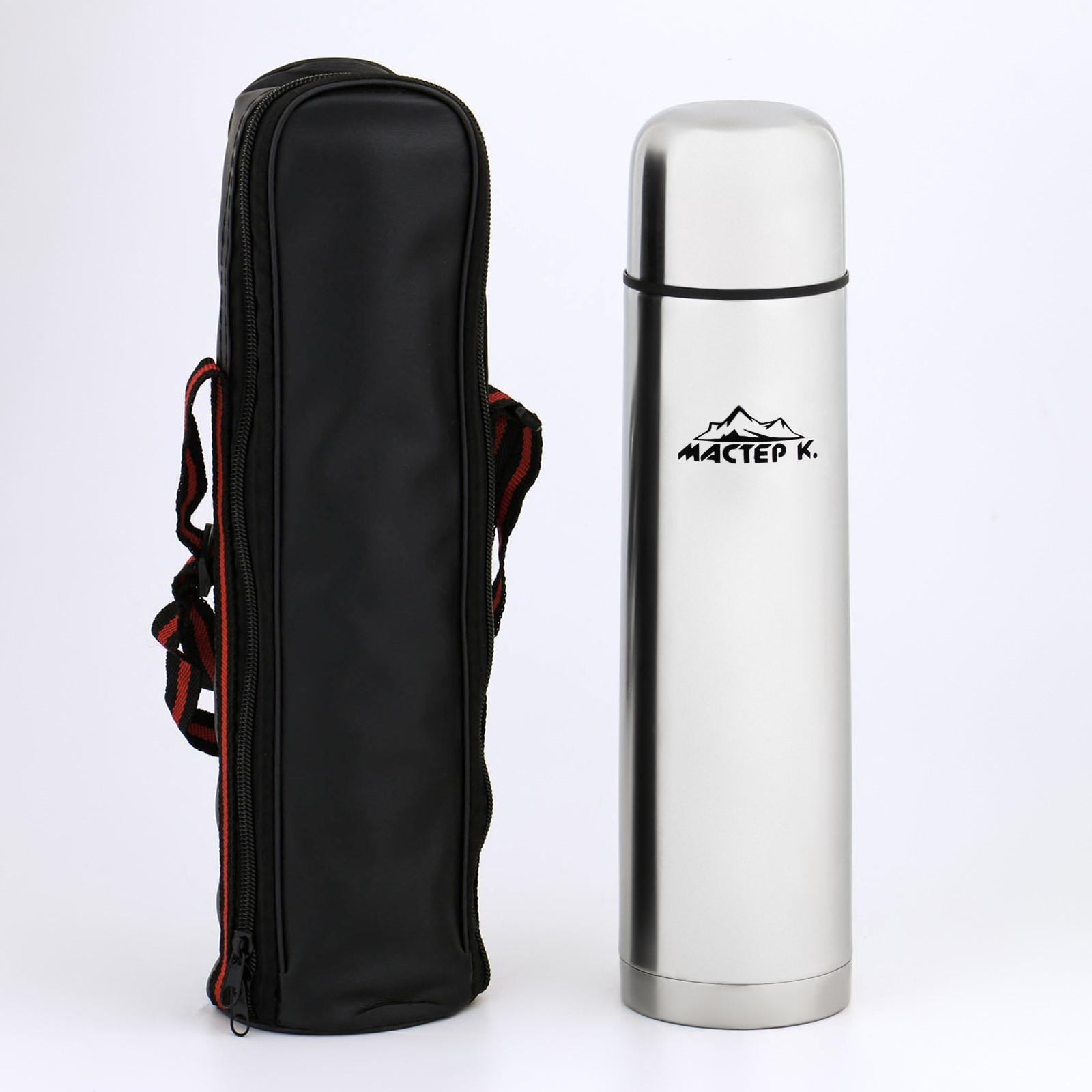 Термос, 1 л, гильза "мастер к.", с кружкой, сохраняет тепло 24 ч, в чехле, хром