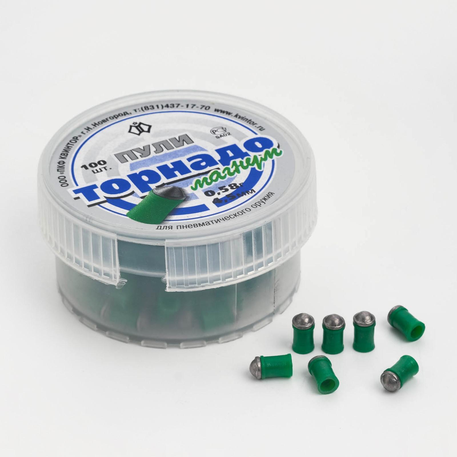 Пули для пневматики "торнадо-магнум" кал. 4,5мм, 0,58гр, 100шт. «Торнадо-Магнум» представляют собой металлопластиковые пули среднего веса (0, 58 г). Они состоят из свинцового сердечника с головной частью ожевальной формы и пластикового контейнера-обтюратора. Смещенный вперед центр тяжести и пластиковый хвостовик стабилизируют пулю в полете и повышают кучность. Данные пули используются для стрельбы из пневматического оружия калибра 4, 5 мм с дульной энергией от 7, 5 Дж и выше. Характеристики: Калибр: 4. 5 мм, Вес: 0. 58 г, Длина: 8. 7 мм, Количество пуль в упаковке: 100 шт. Вес, г: 0.58 В упаковке, шт.: 100 Калибр: 4.5 мм Температурное ограничение: Нет  развернуть описание ▼