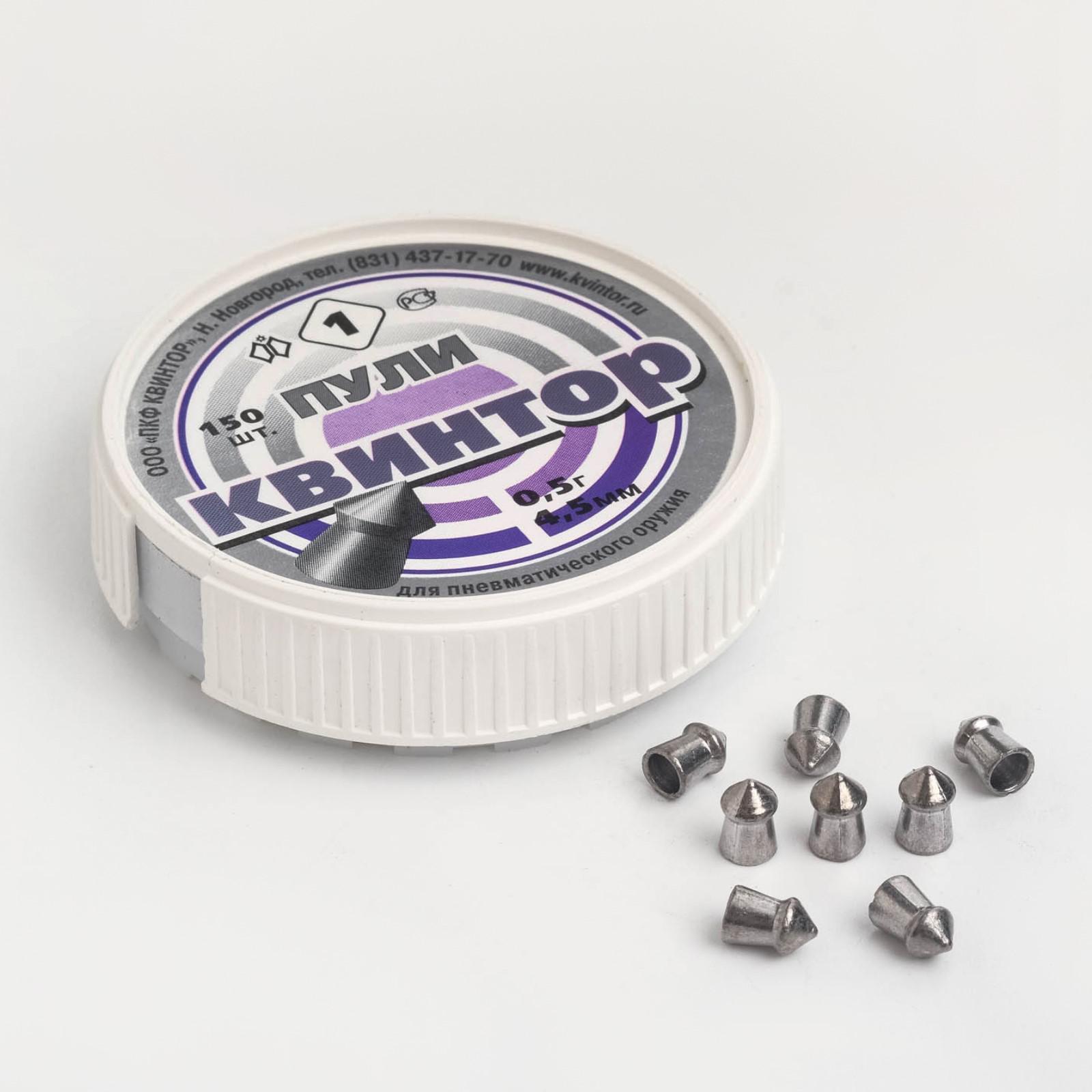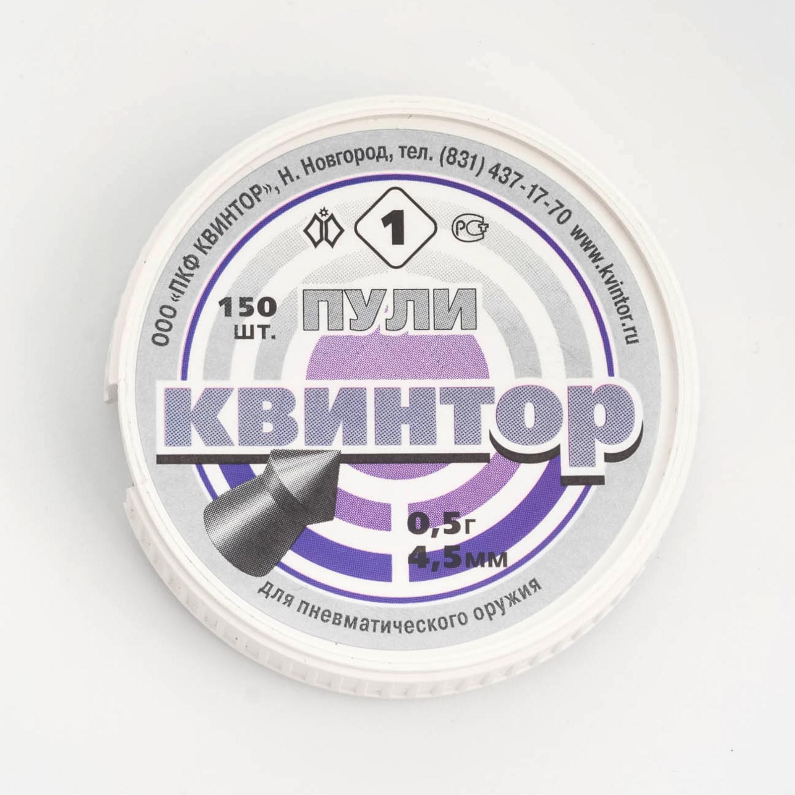 Пули для пневматики "квинтор" остроконечные, кал.4,5мм, 0,5 гр, 150шт. «Квинтор» — штампованные свинцовые пули с остроконечной формой головной части. Эта особенность строения значительно увеличивает степень ее проникающей способности. Пули имеют высокие показатели скорости (в полете) и неплохую кучность попадания в цель. Подходят для моделей пневматического оружия различной мощности. Характеристики: Калибр: 4. 5 мм, Вес: 0. 5 г, Длина: 7, 4 мм, Количество пуль в упаковке: 150 шт. Вес, г: 0.5 В упаковке, шт.: 150 Калибр: 4.5 мм Температурное ограничение: Нет  развернуть описание ▼