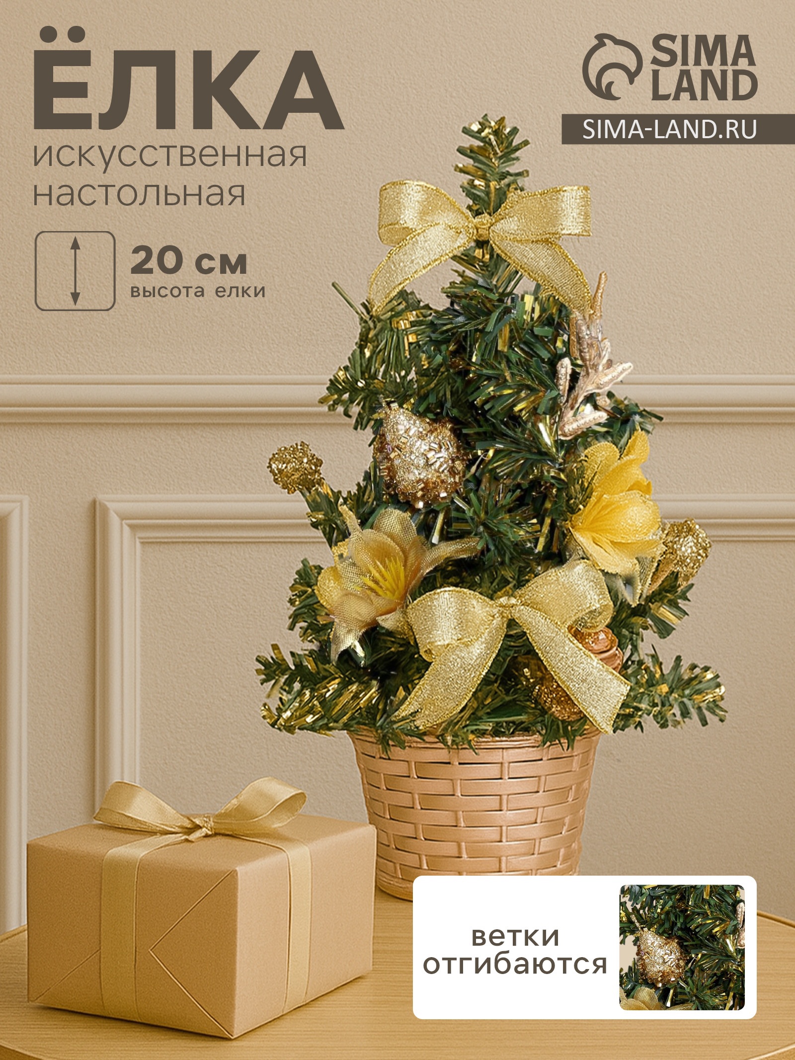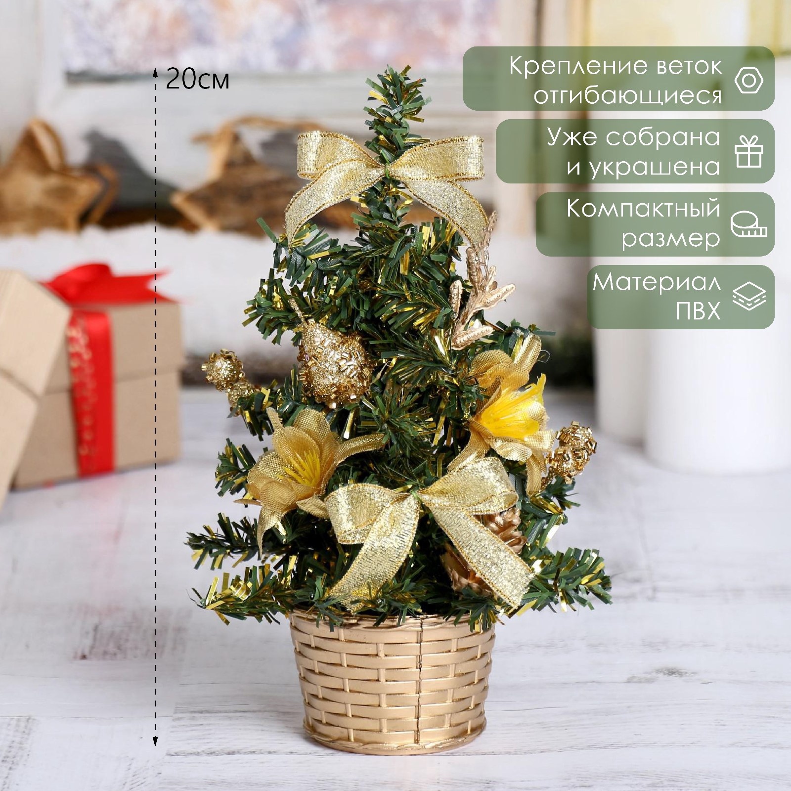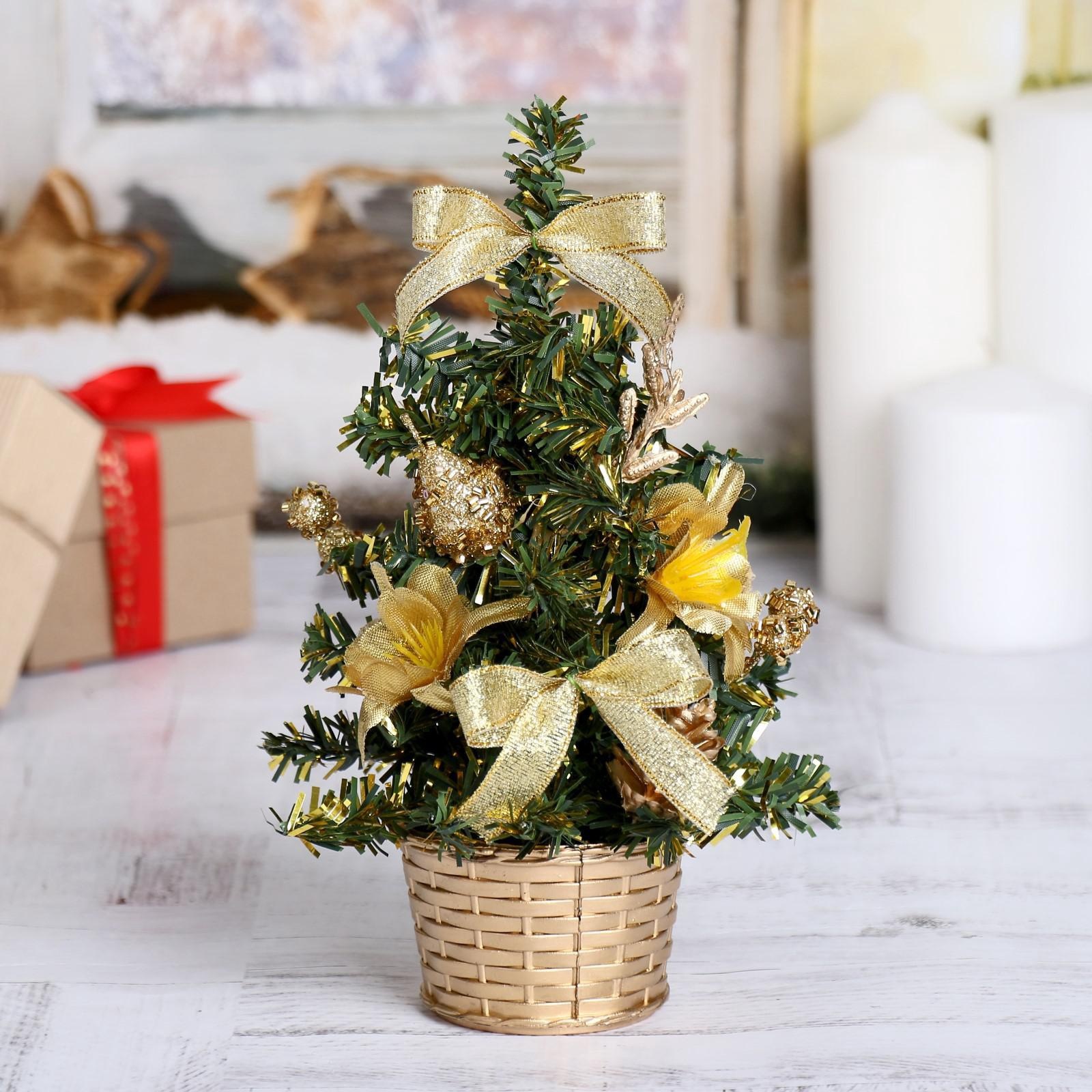 Искусственная ёлка настольная «зимнее волшебство. цветы», 20 см, золото, пвх ветки отгибаются