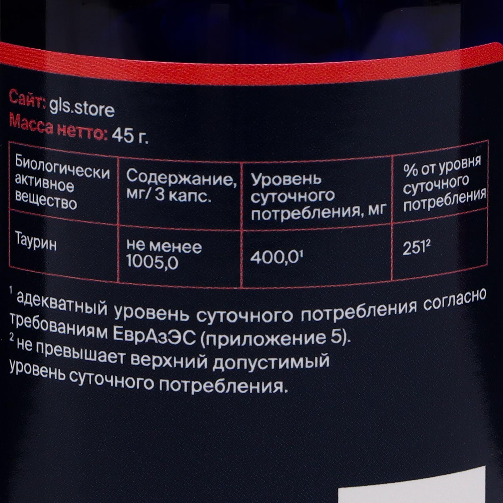 Таурин 1000 для повышения энергии и выносливости gls pharmaceuticals, 90 капсул по 400 мг. GLS ТАУРИН 1000 - Биологически активная добавка (БАД) к пище - повышает выносливость организма к физическим нагрузкам. Увеличивает скорость распада жиров Оказывает антиатерогенное действие, Снижает артериальное давление при гипертонической болезни, Повышает чувствительность к инсулину, Имеет гепатопротекторное действие. 3 вегетарианские капсулы (суточная доза) содержат: Таурин - 1000 мг Показания в качестве биологически активной добавки к пище - источника витамина В6, содержащей таурин. Противопоказания индивидуальная непереносимость компонентов, беременность, кормление грудью. Перед применением рекомендуется проконсультироваться с врачом. Вес, г/Объём, мл: 45 Количество капсул/таблеток в упаковке: 90 Форма выпуска: Капсулы/таблетки Вид: Отдельные аминокислоты Температурное ограничение: Нет Назначение: Для энергии и тонуса организма Назначение: Для похудения Форма выпуска: Капсулы Честный знак: Да  развернуть описание ▼