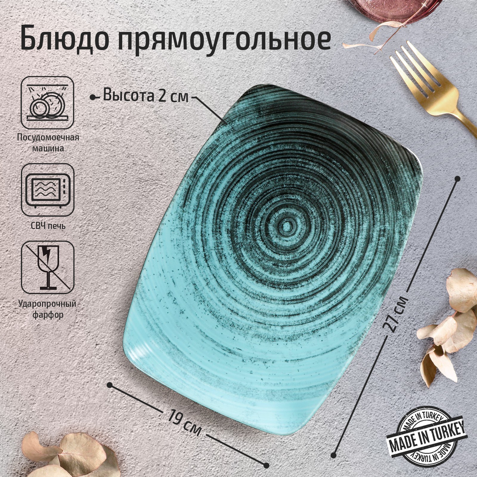 Блюдо сервировочное прямоугольное Porland Lykke, 19х27 см, цвет бирюзовый