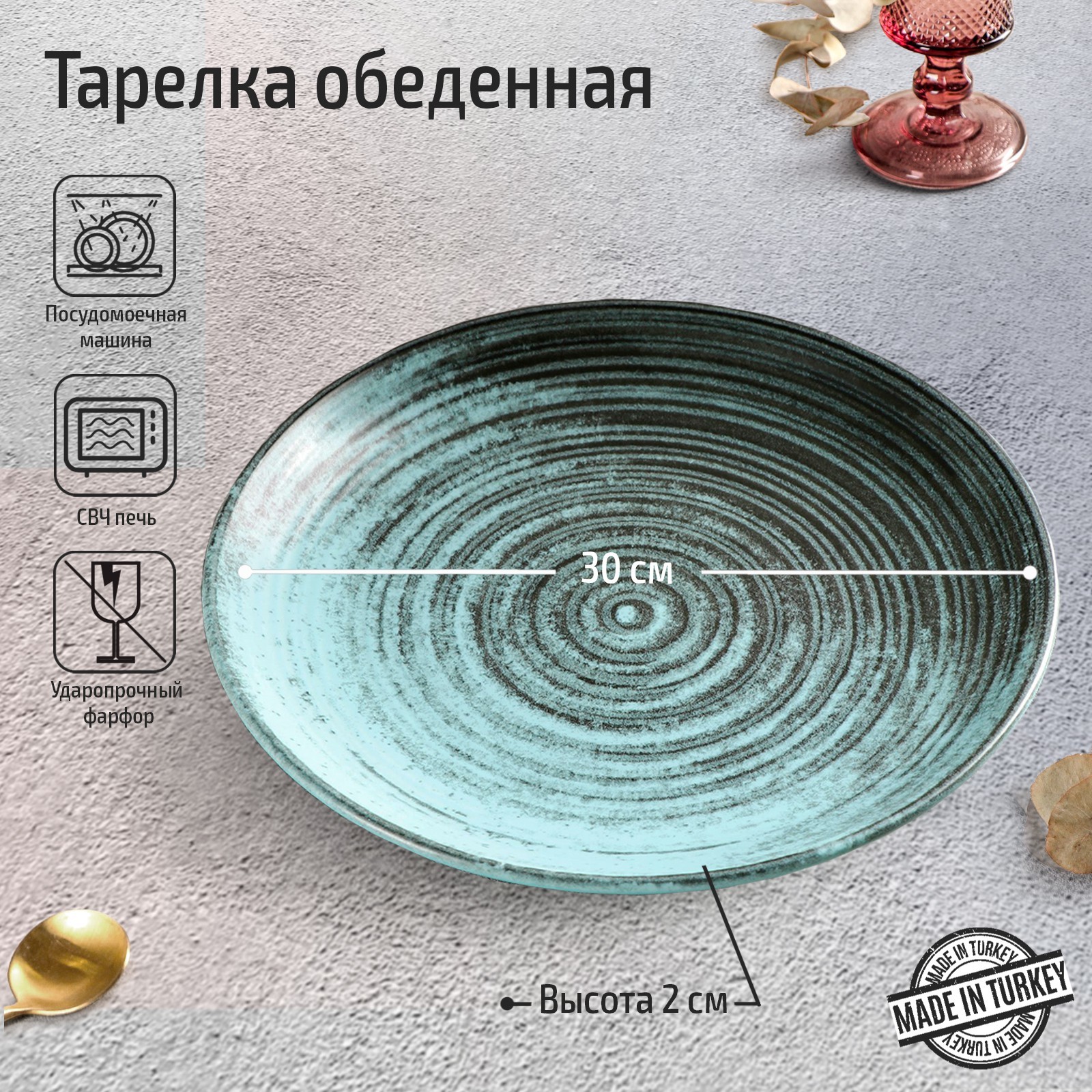 Тарелка с вертикальным бортом Porland Lykke, D=30 см, цвет бирюзовый