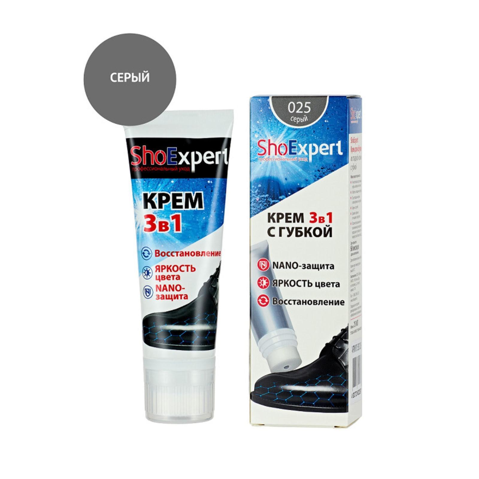 Крем для обуви Shoexpert, туба с губкой, серый, 75 мл