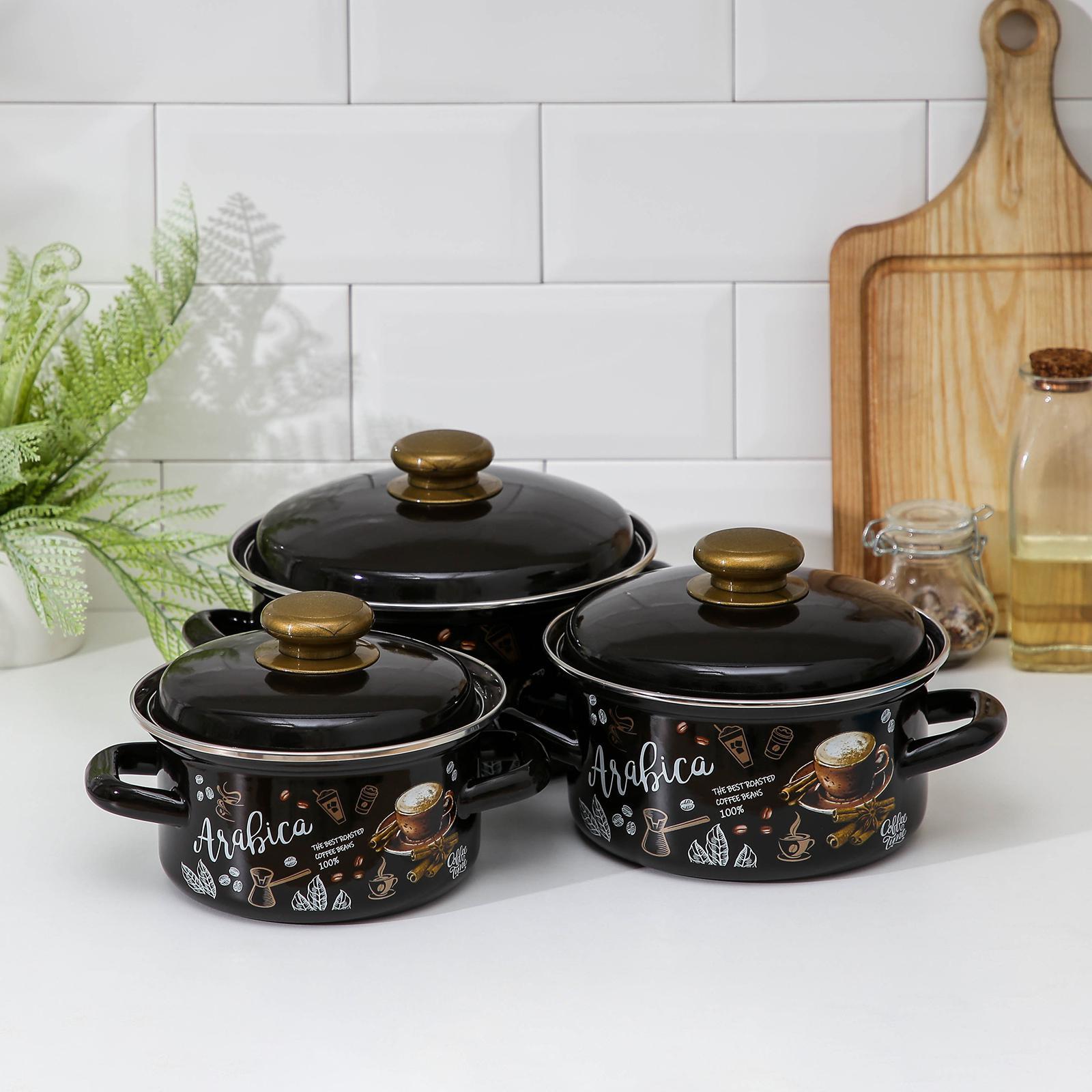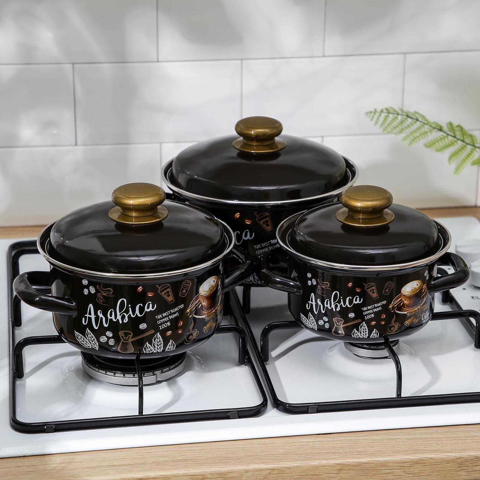Набор кастрюль «арабика-1»: 3 предмета: 1 л, 1,5 л, 2,3 л, эмалированные крышки, индукция