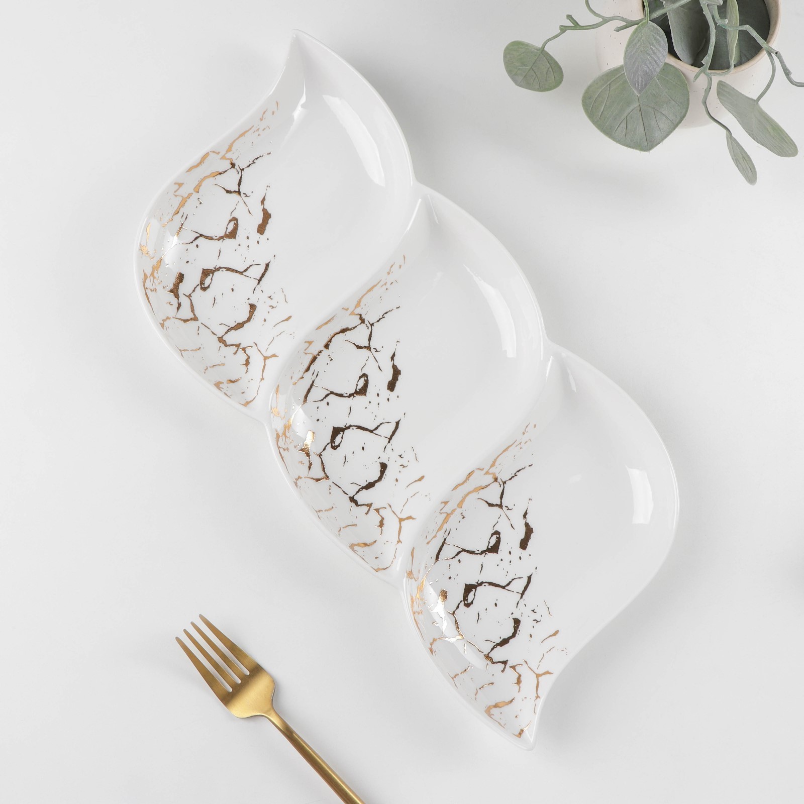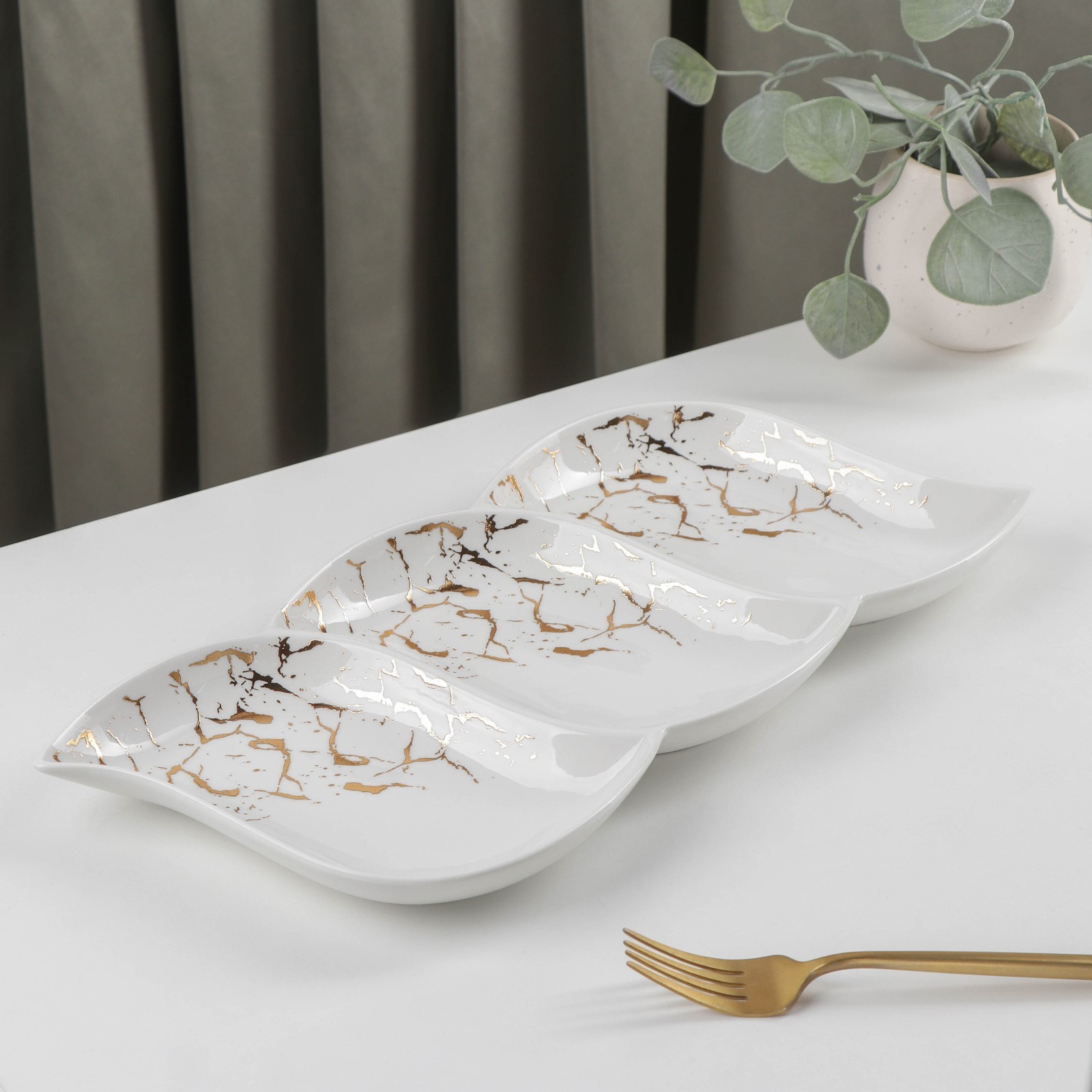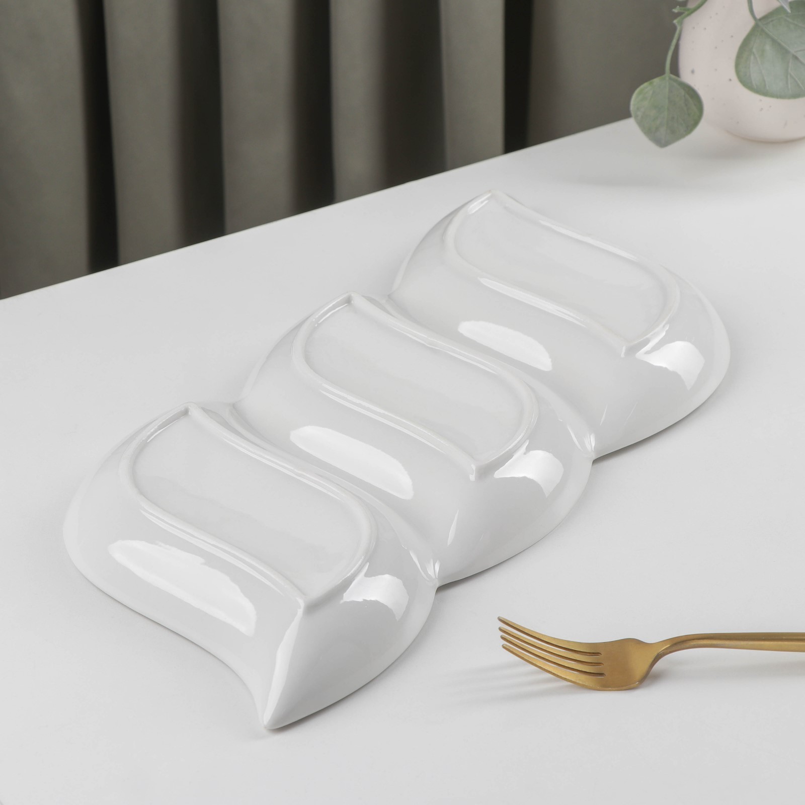 Менажница керамическая 3 ячейки «марбл», 36x17x3 см, цвет белый