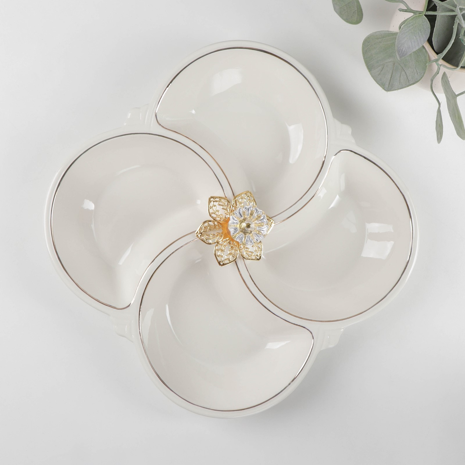 Менажница керамическая 4 ячейки «богема», 25,5x4 см, цвет белый