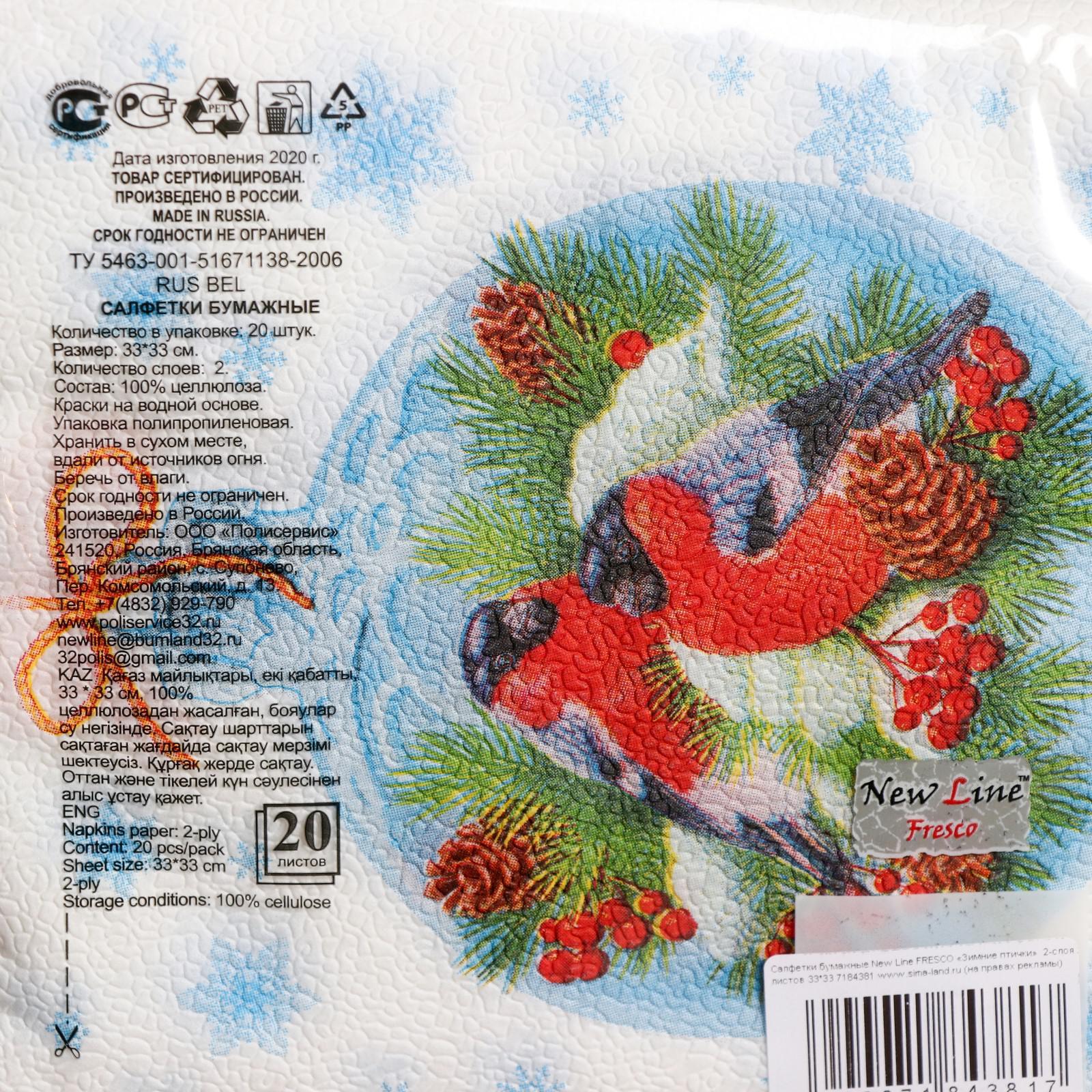 Новогодние салфетки бумажные New Line Fresco «зимние птички», 33х33 см, 2 слоя