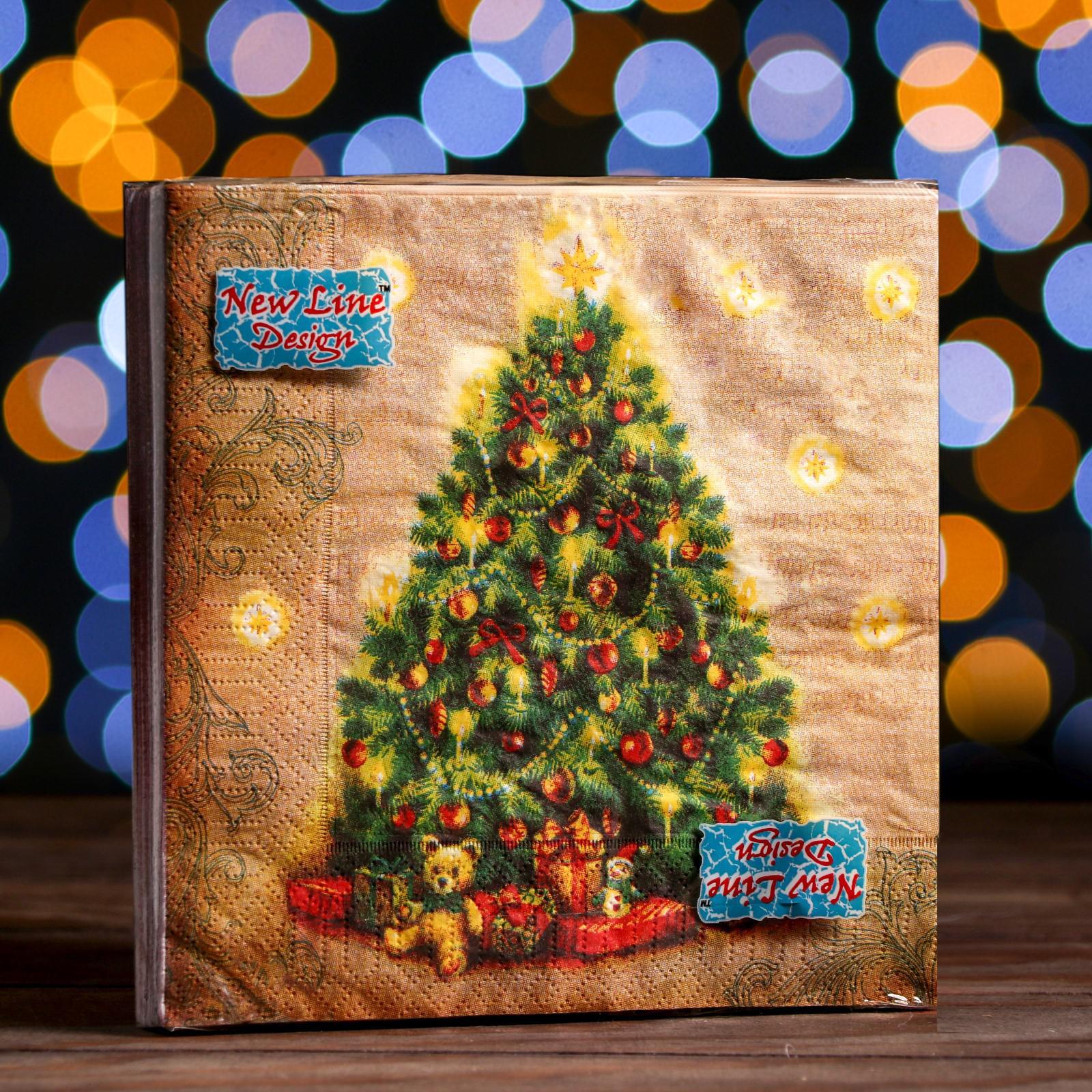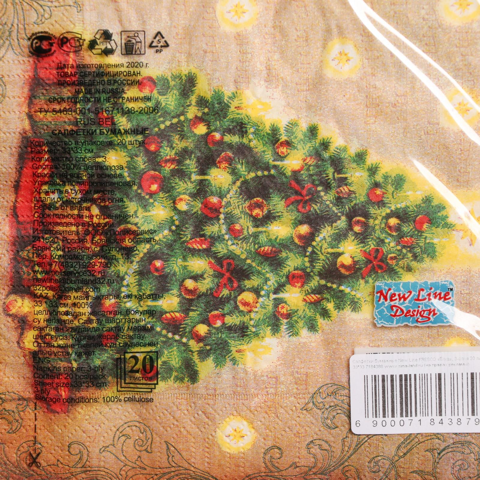 Новогодние салфетки бумажные New Line Fresco «ёлка», 33х33 см, 3 слоя
