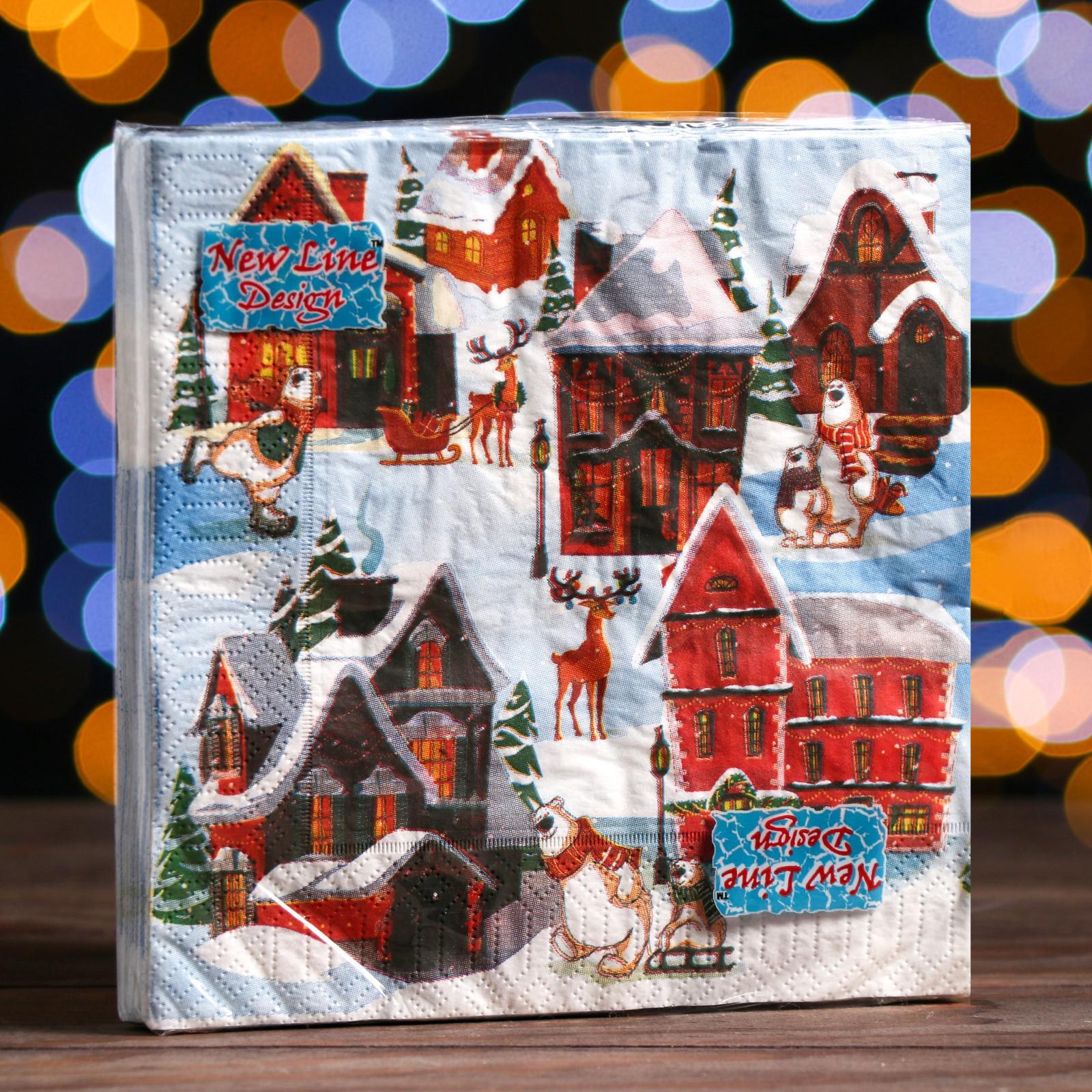 Новогодние салфетки бумажные New Line Fresco «домики», 33х33 см, 3 слоя