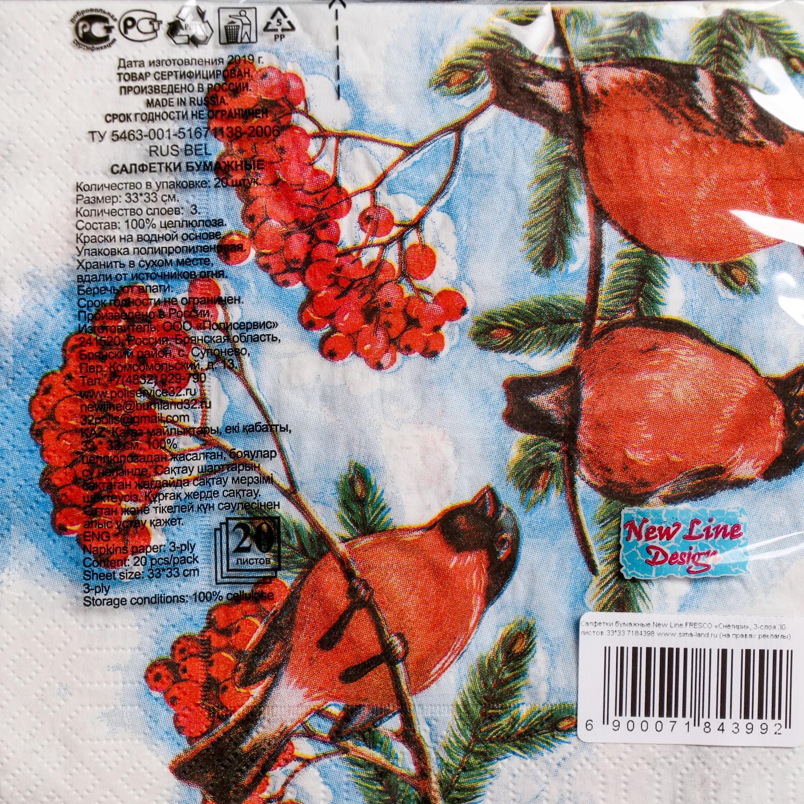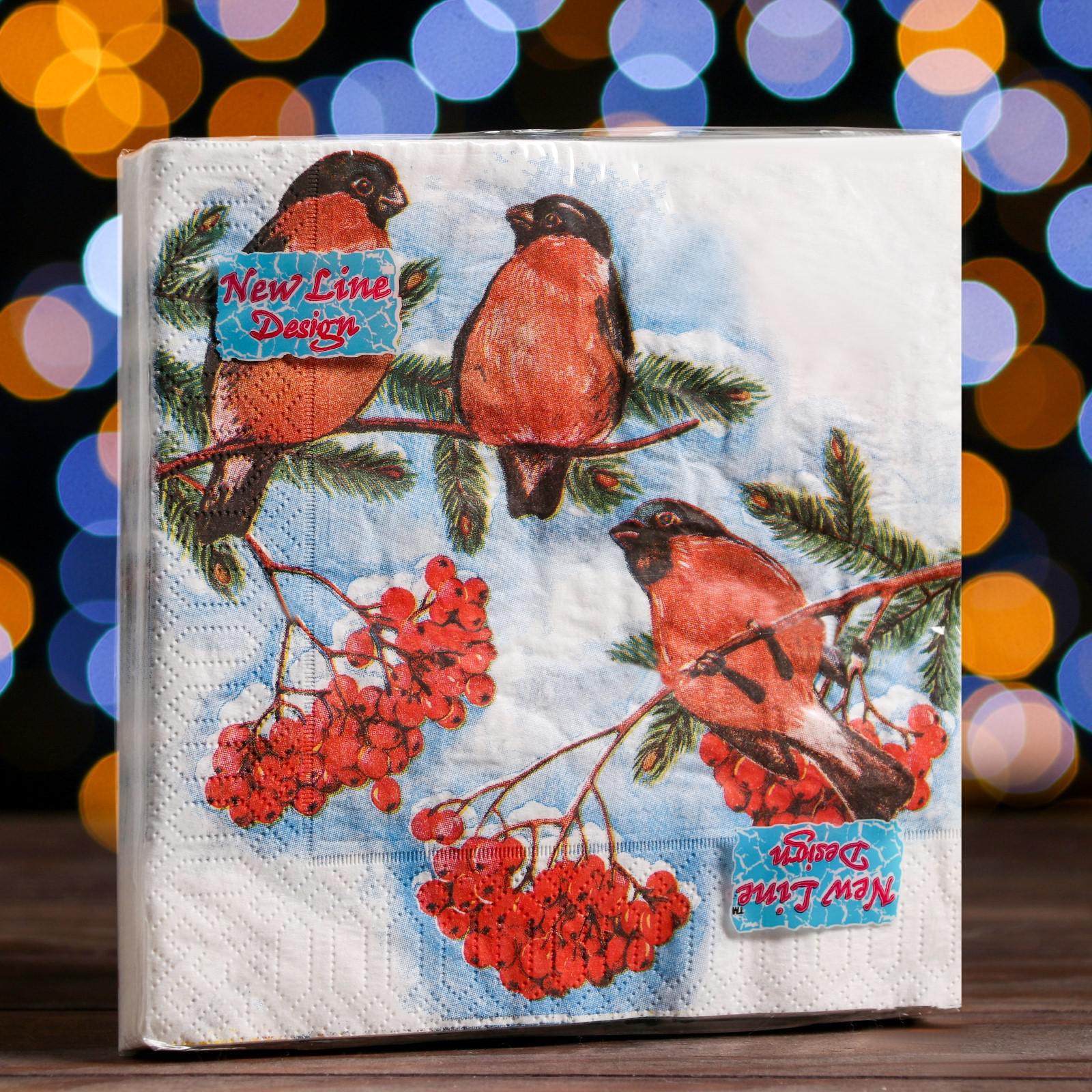 Новогодние салфетки бумажные New Line Fresco «снегири», 33х33 см, 3 слоя