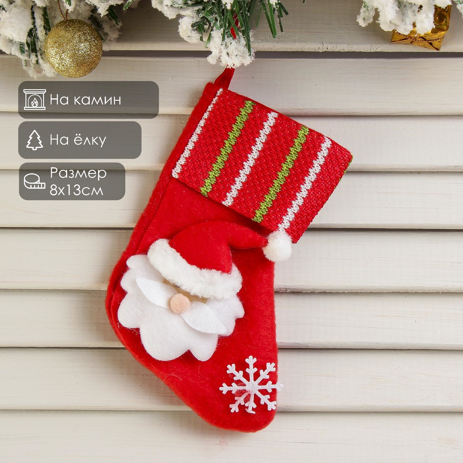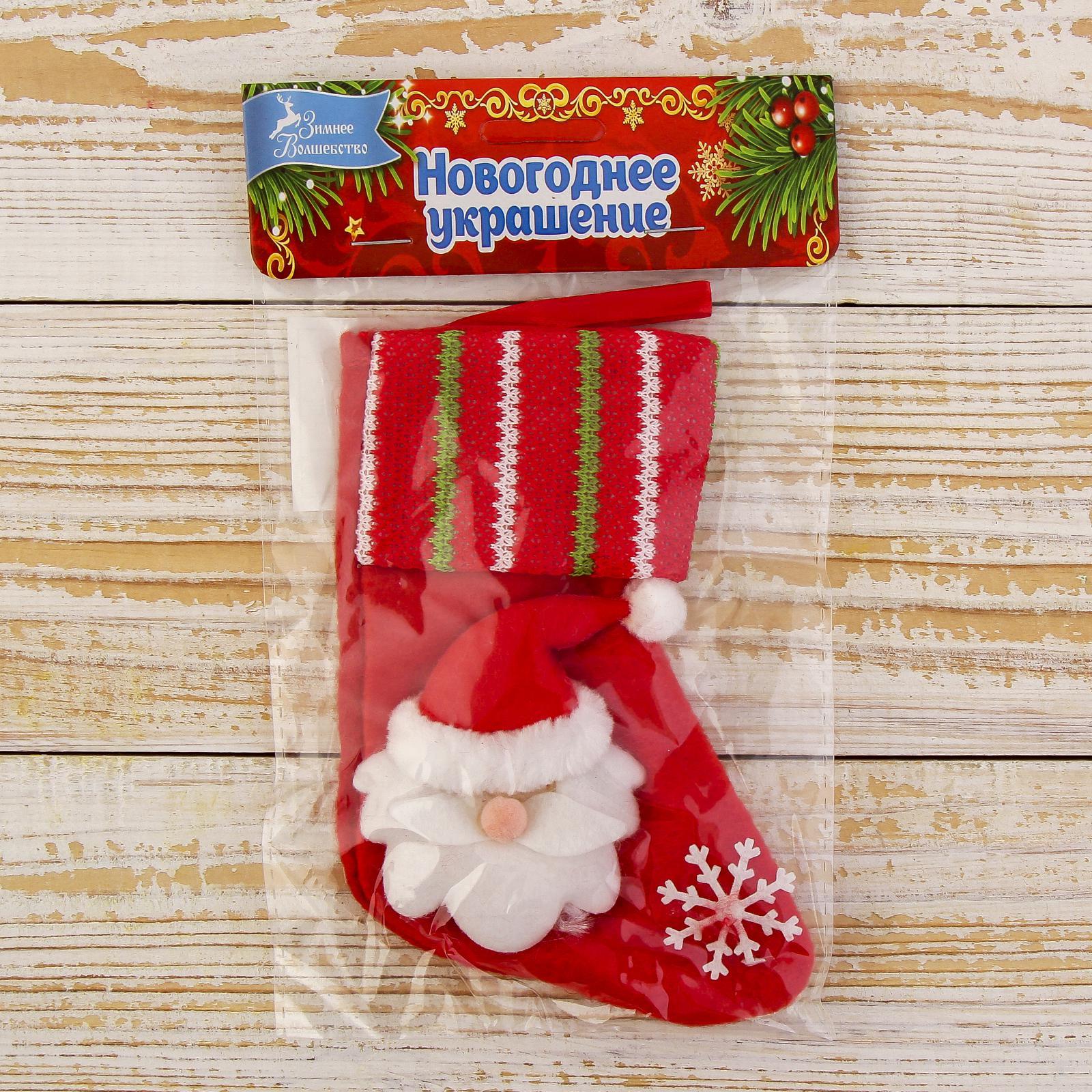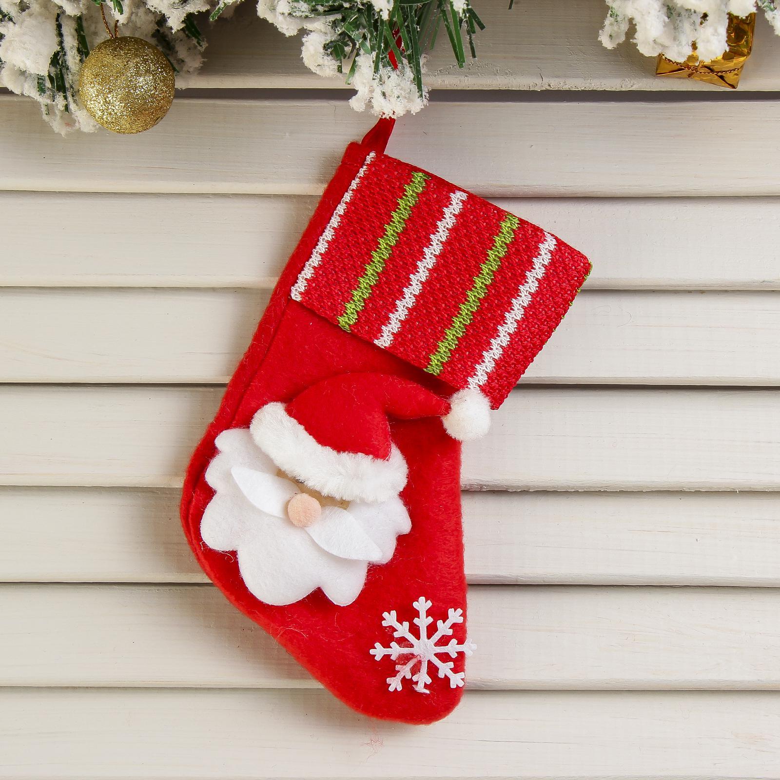 Носок для подарков «дед мороз со снежинкой» 13 8 см, красный