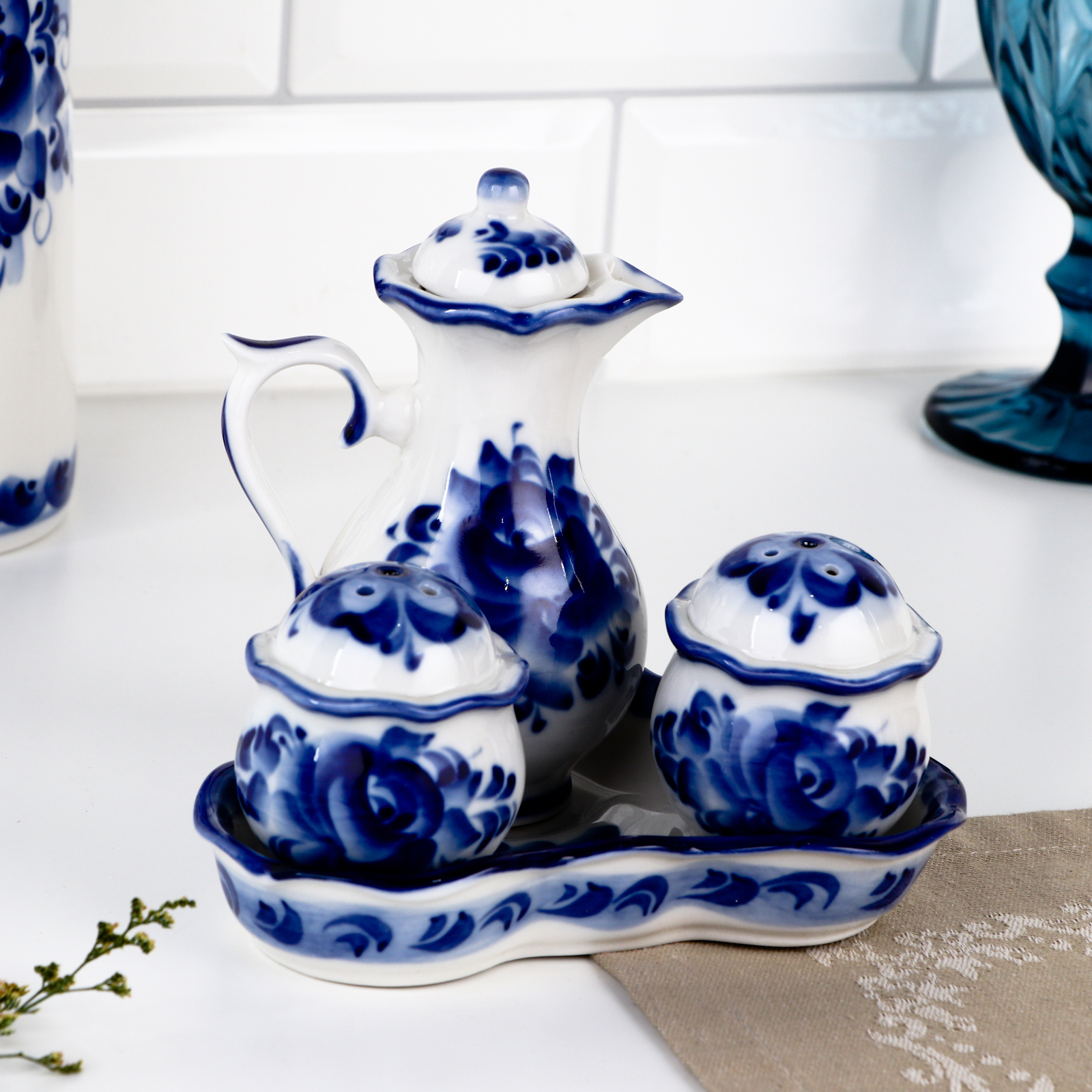 Набор для специй «весенний», 4 предмета, гжель