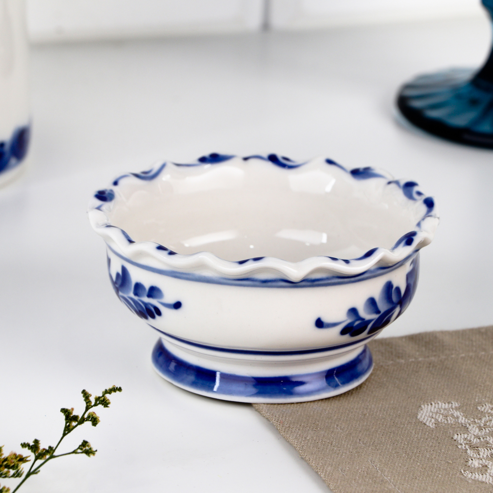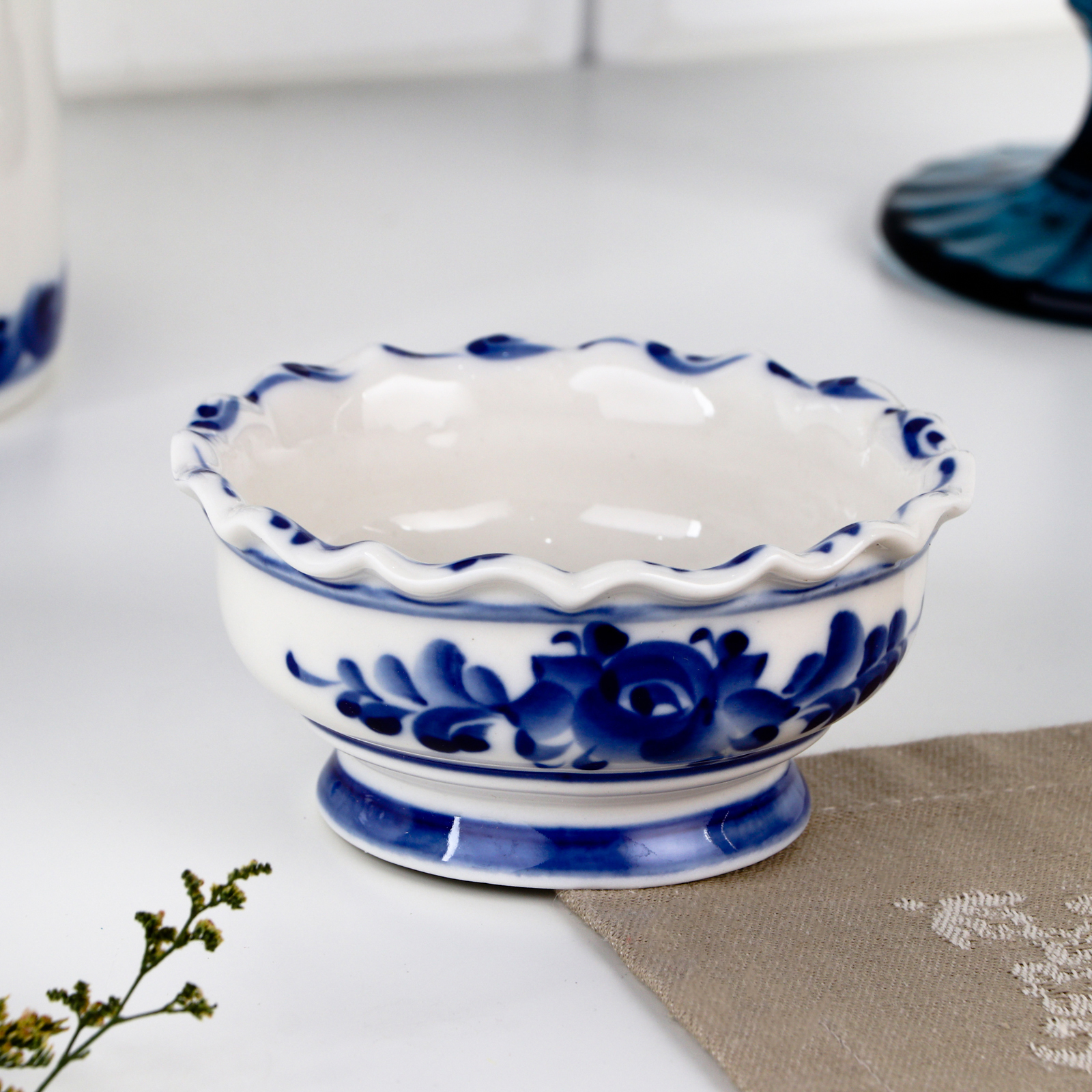 Розетка «цветы», 10,5х10,5x5 см, гжель