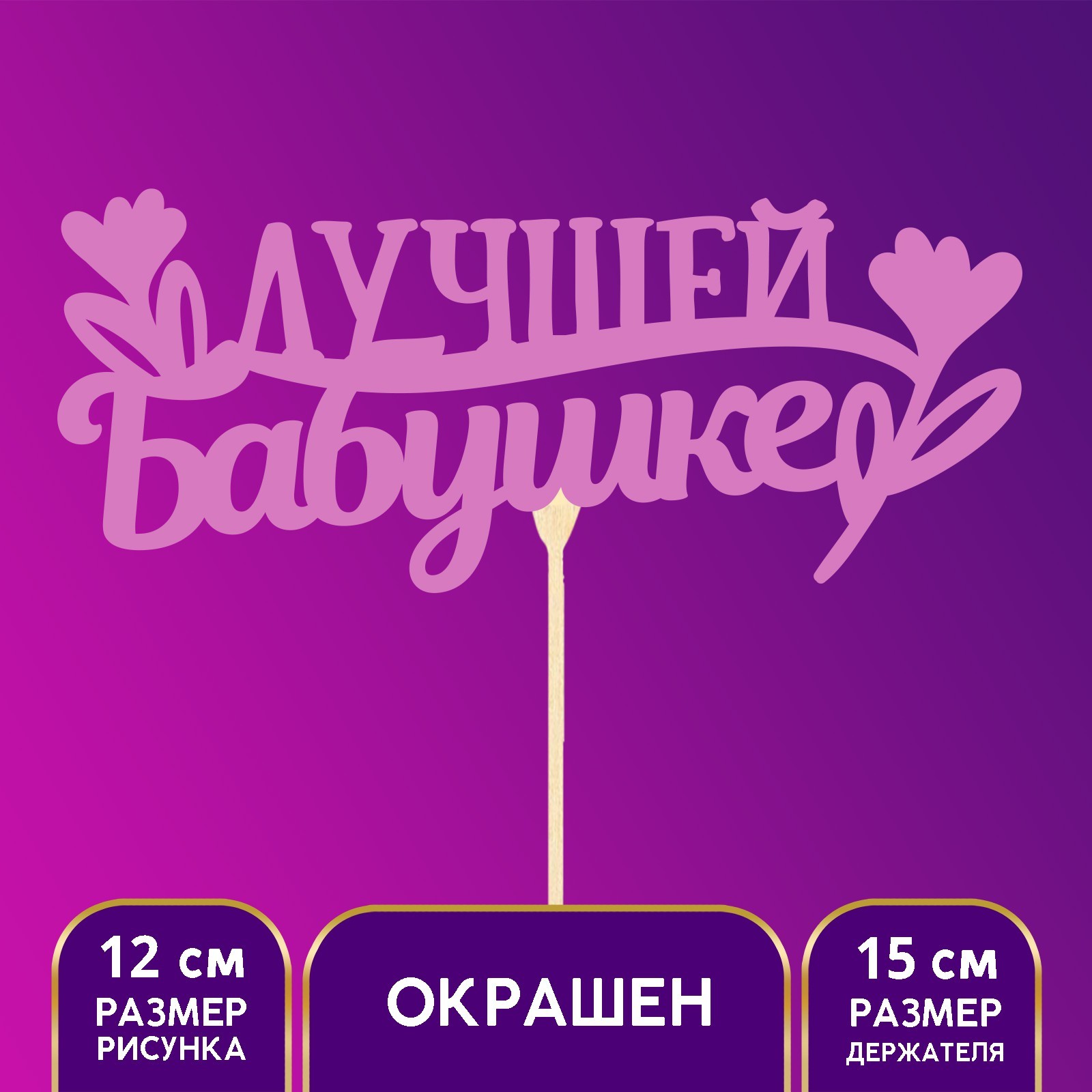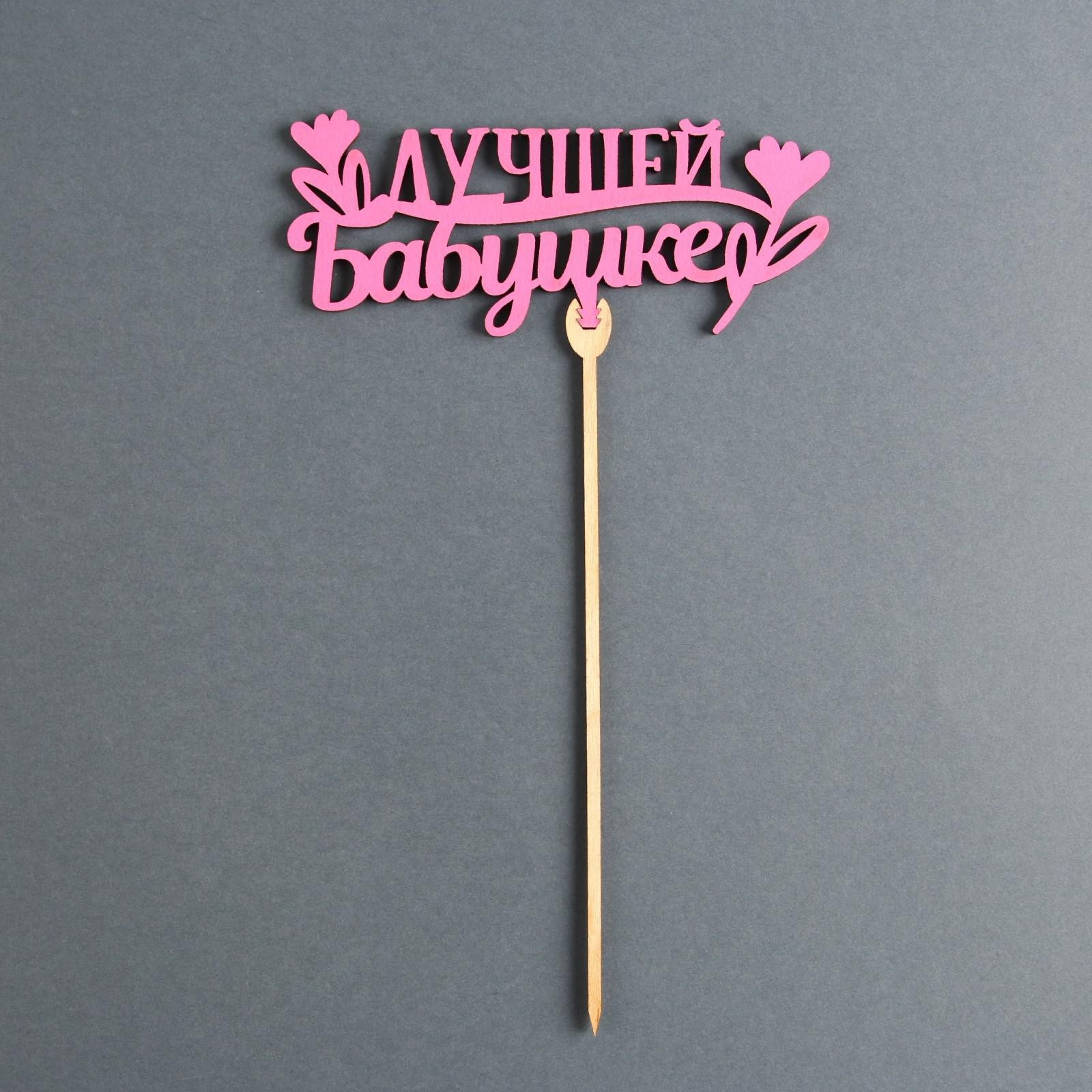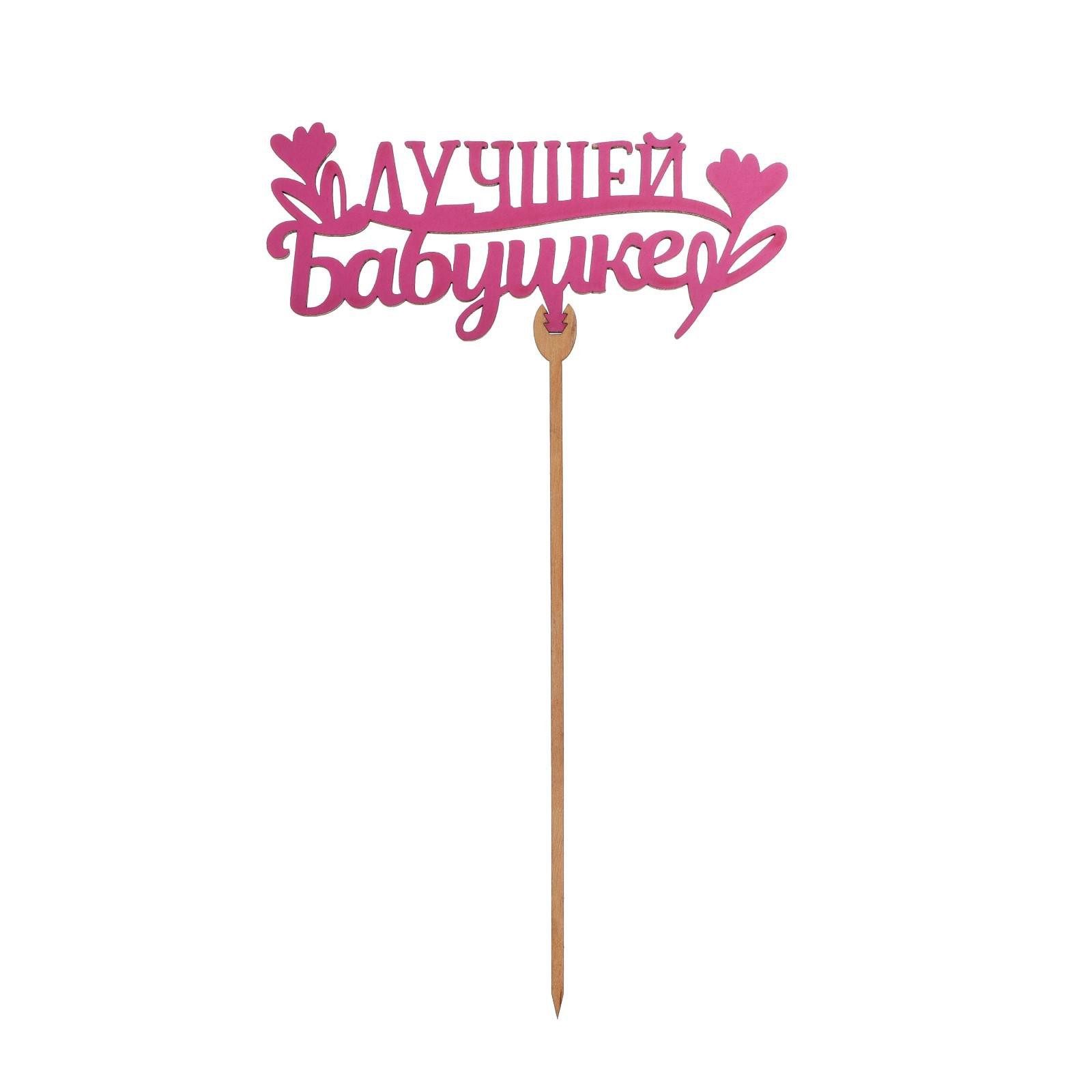 Топпер для торта деревянный «лучшей бабушке», цвет фуксия