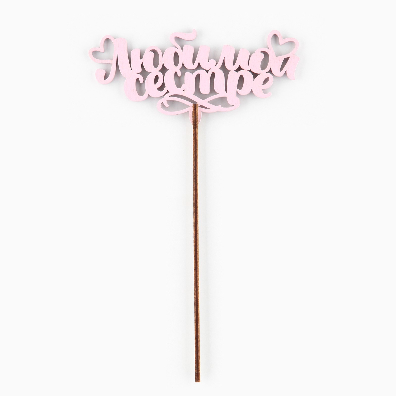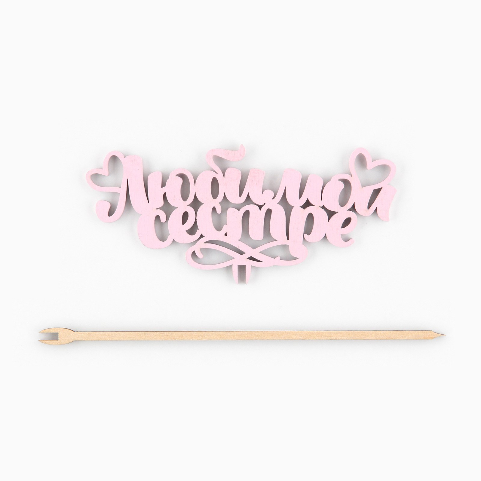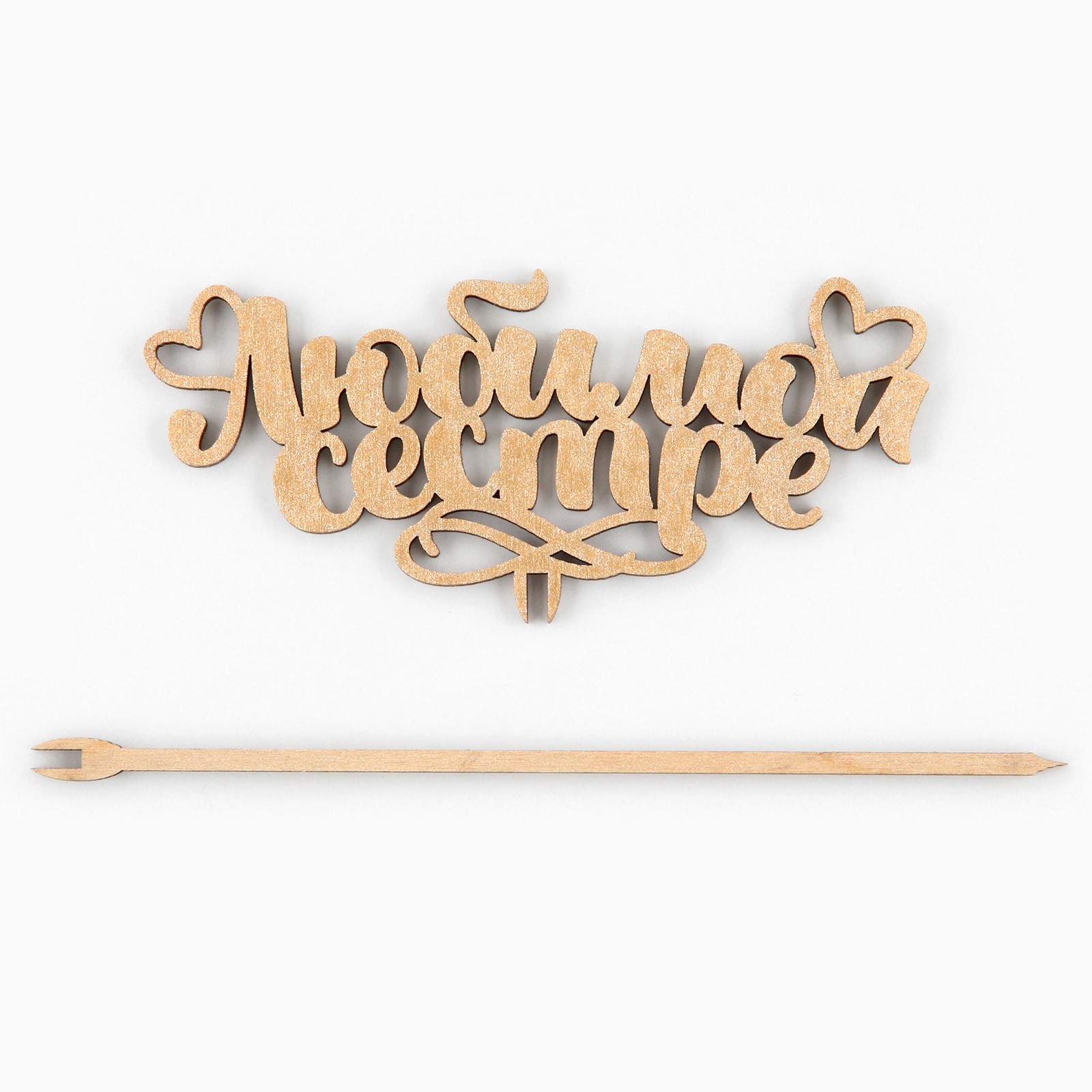 Топпер для торта деревянный «любимой сестре», цветные, микс