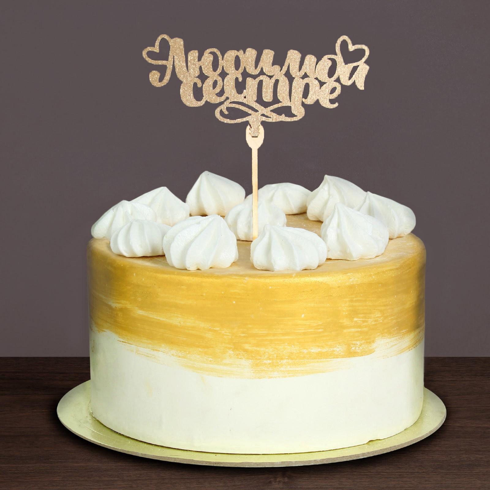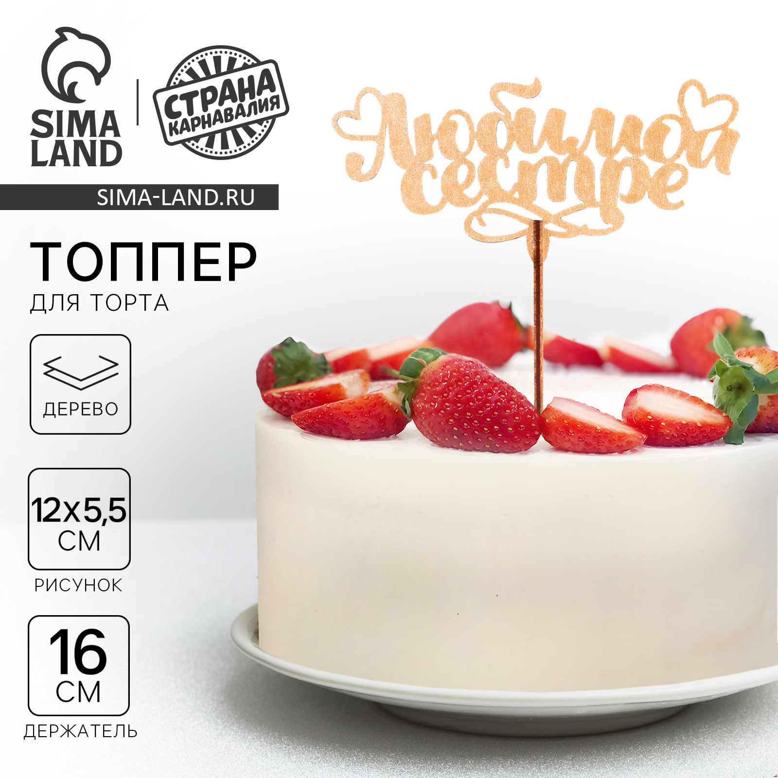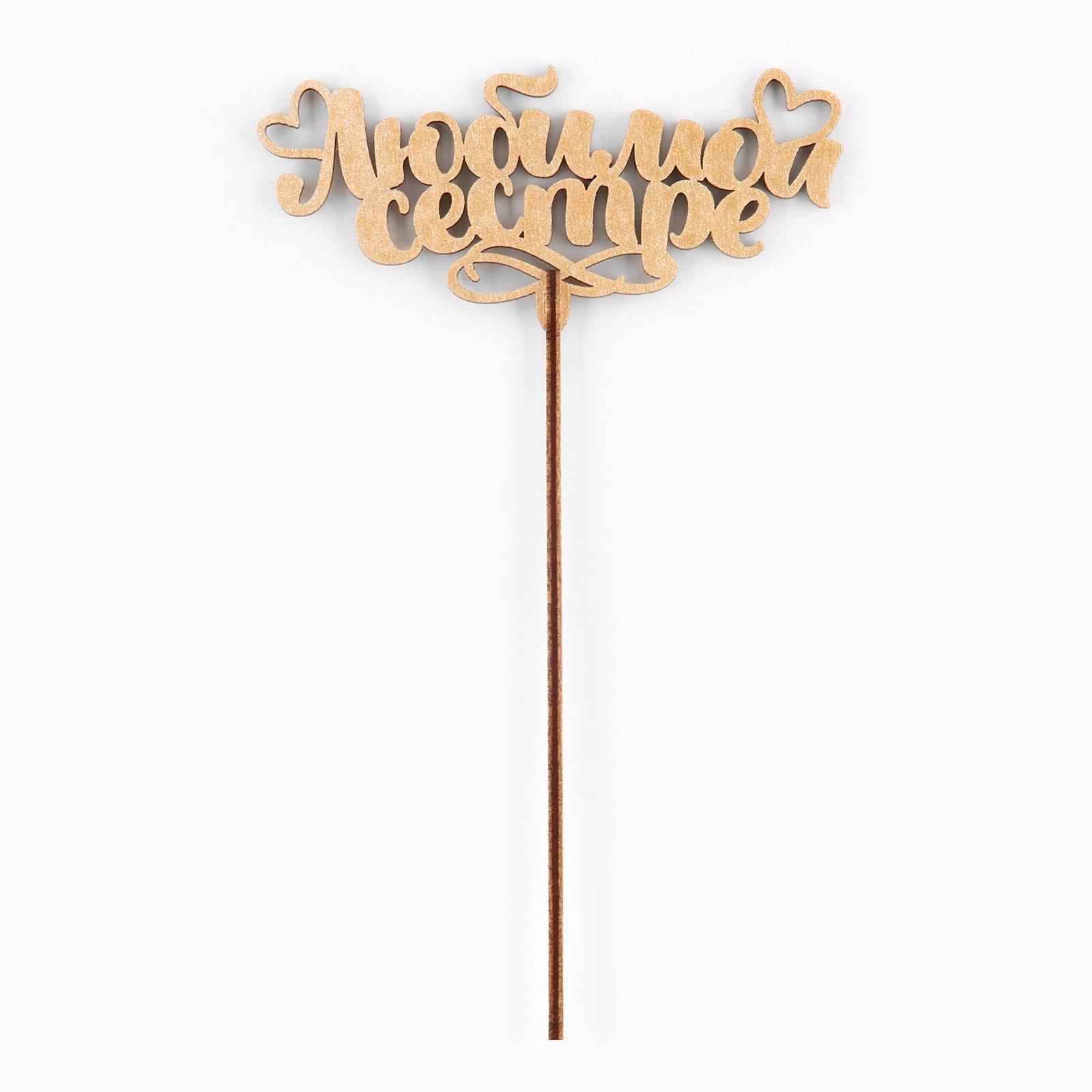 Топпер для торта деревянный «любимой сестре», цветные, микс