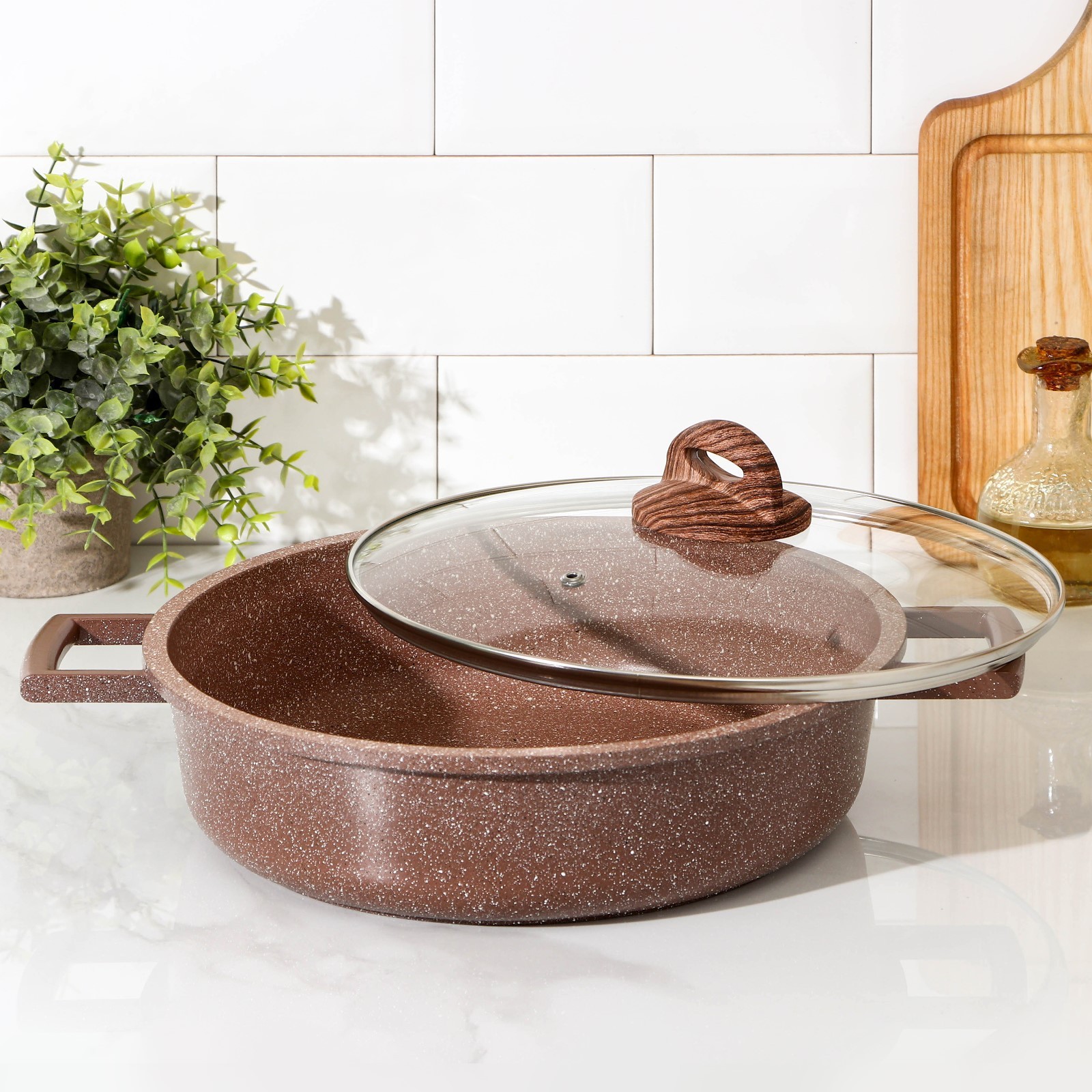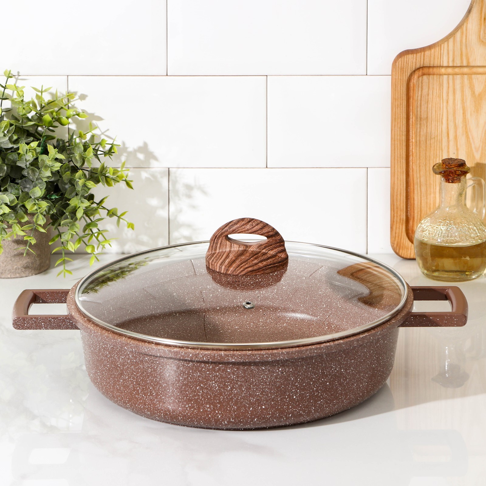 Жаровня доляна «брауни», D=28 см, стеклянная крышка, литые ручки, антипригарное покрытие, индукция