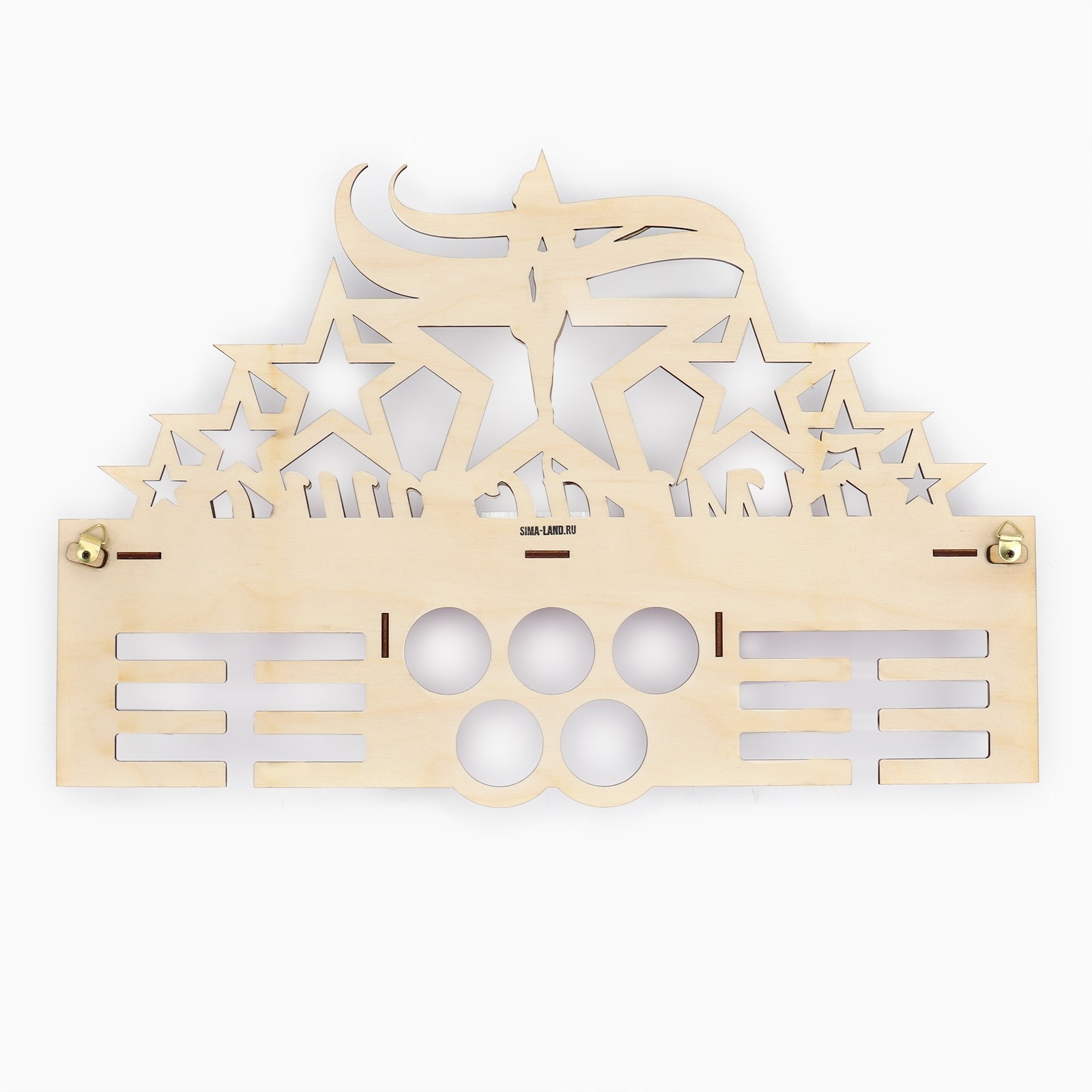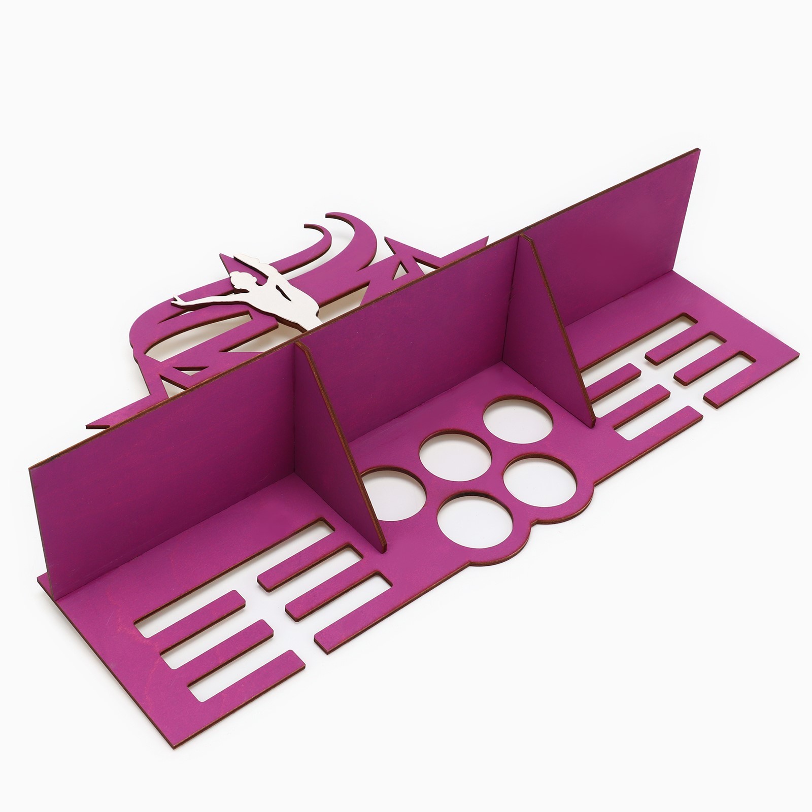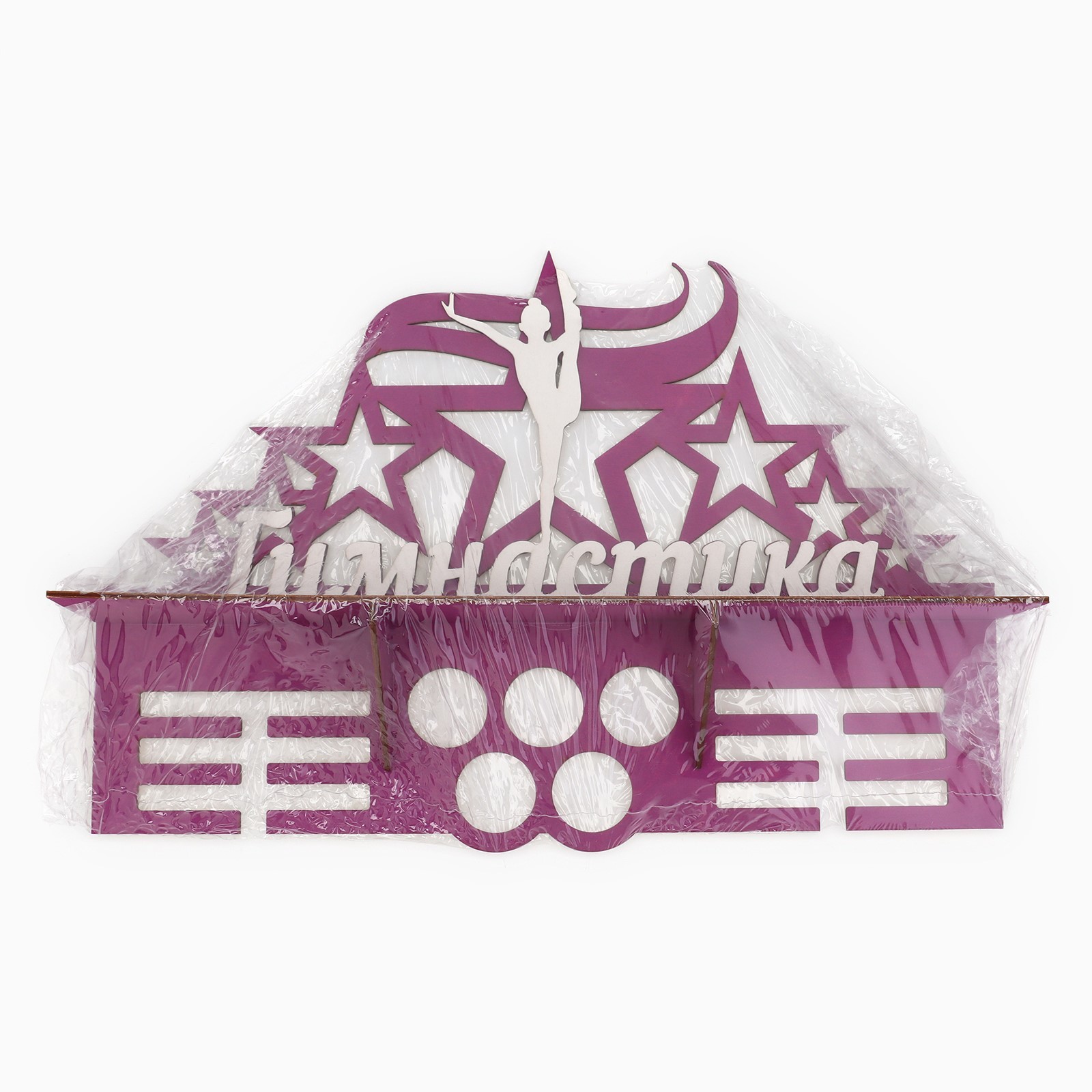 Медальница «гимнастика», 44,5 х 30 см. Для того чтобы ваши награды не пылились на полке, повесьте их на фигурную медальницу. Она изготовлена из дерева, имеет тематический дизайн. Этот аксессуар будет достойно смотреться вкупе с наградами. Также медальница станет отличным подарком для спортсменов. Цвет: Сиреневый Материал: Фанера Вид спорта: Гимнастика Особенность медальницы: С полкой Температурное ограничение: Нет  развернуть описание ▼