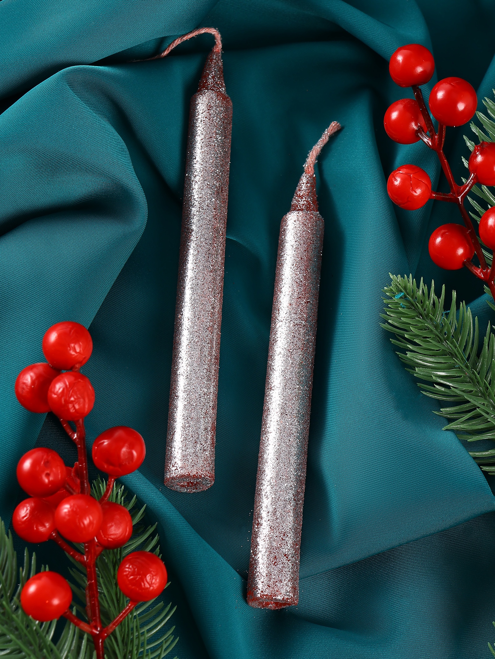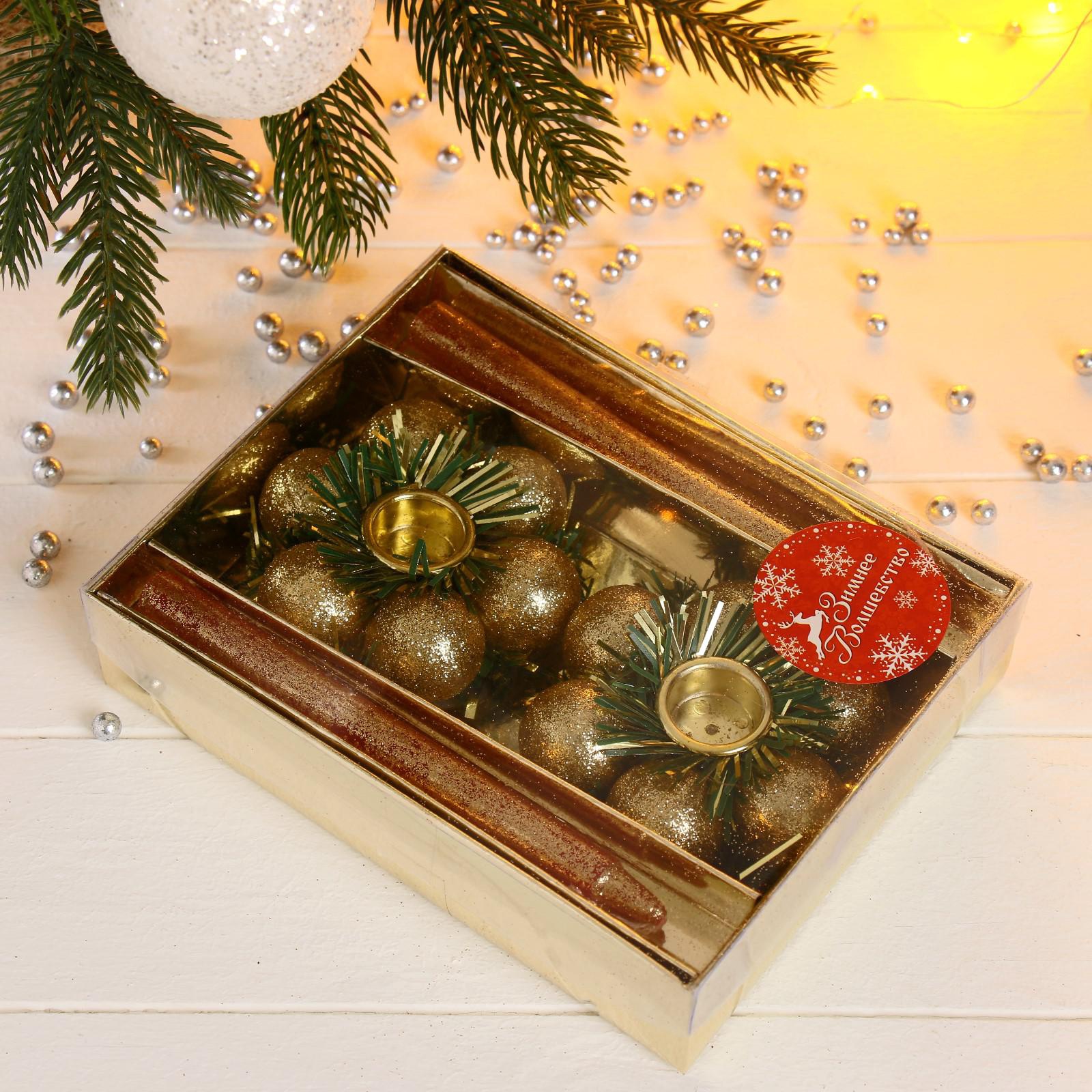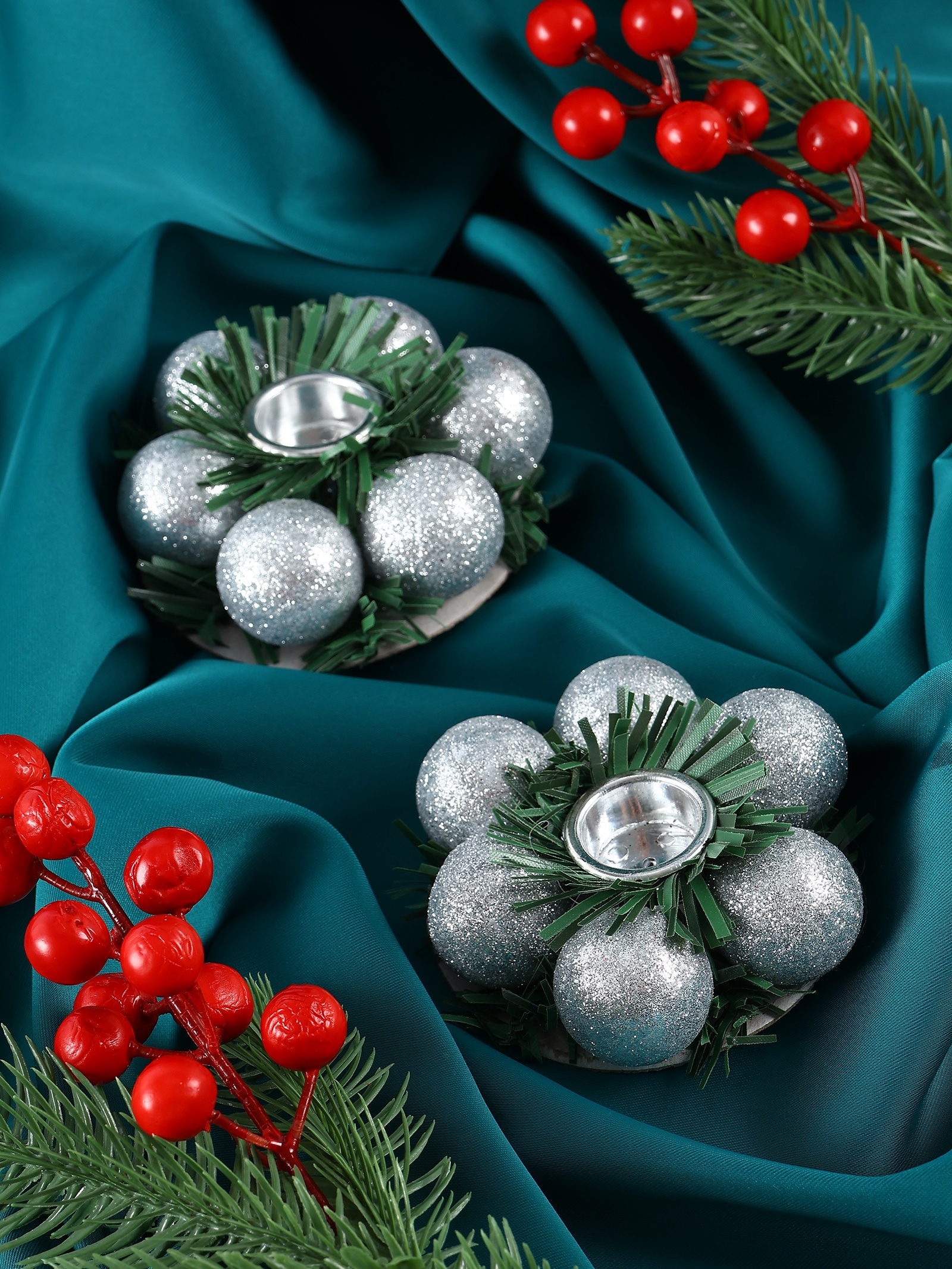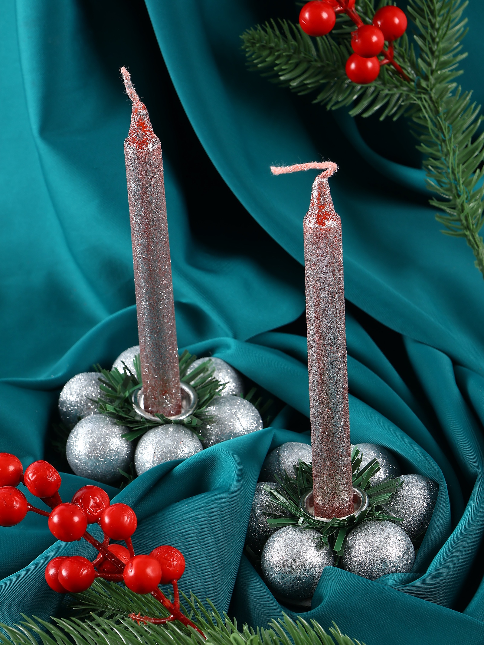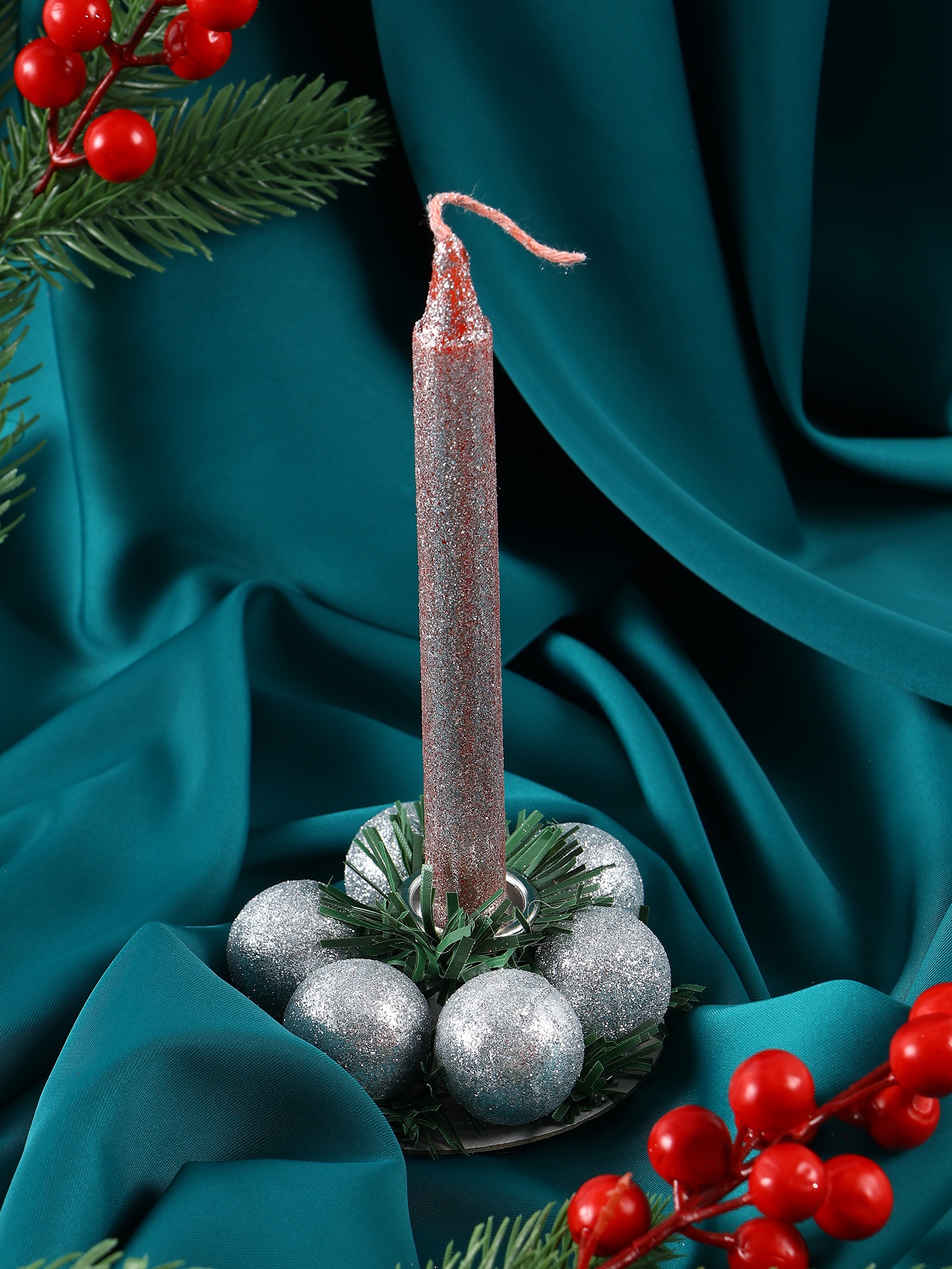 Свеча новогодняя с подсвечником «шарики», набор 2 шт., 15 см