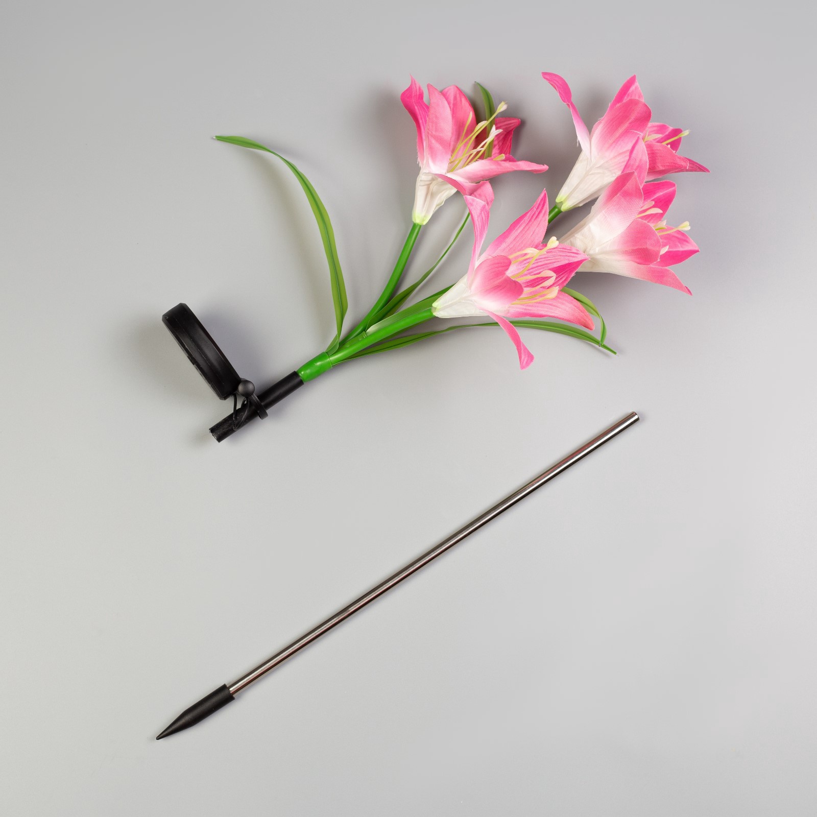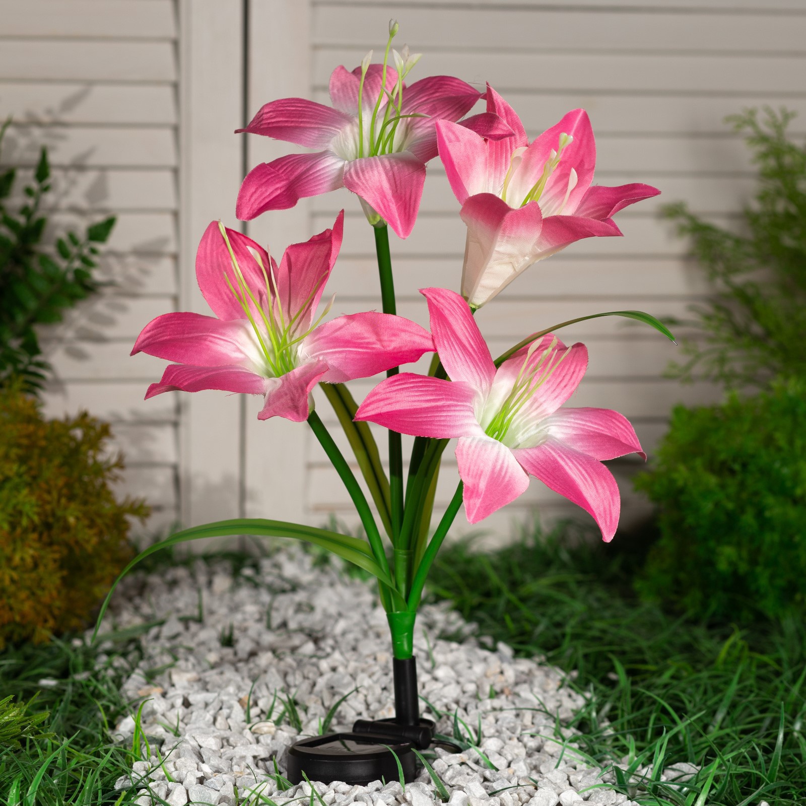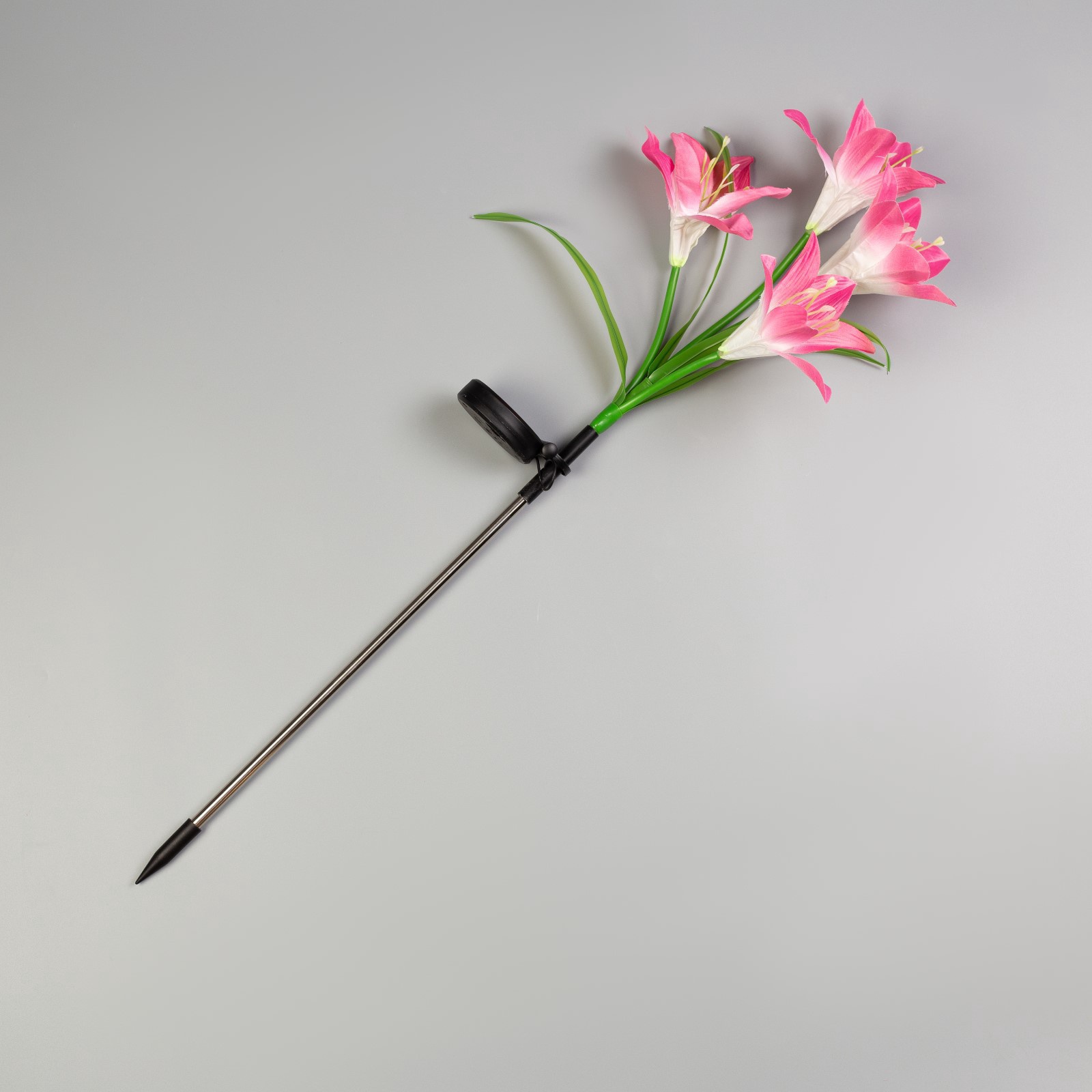 Садовый светильник «лилия розовая», уличный, на солнечной батарее, 80 см, 4 led, свечение мульти. Цвет свечения:RGB|Количество ламп:4|Цоколь:Встроенные LED|Высота, см:80|Гарантийный срок, мес.:6|Степень защиты:IP44|Материал основания:Пластик|Цвет корпуса:Зелёный|Цвет корпуса:Розовый|Температурный режим:от -10 до +35 °С|Страна:Китай  развернуть описание ▼