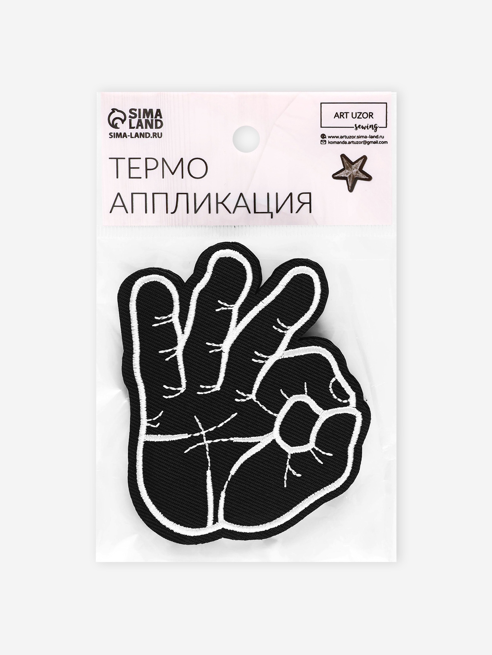 Термоаппликация «окей», 8.7 6.7 см, чёрная
