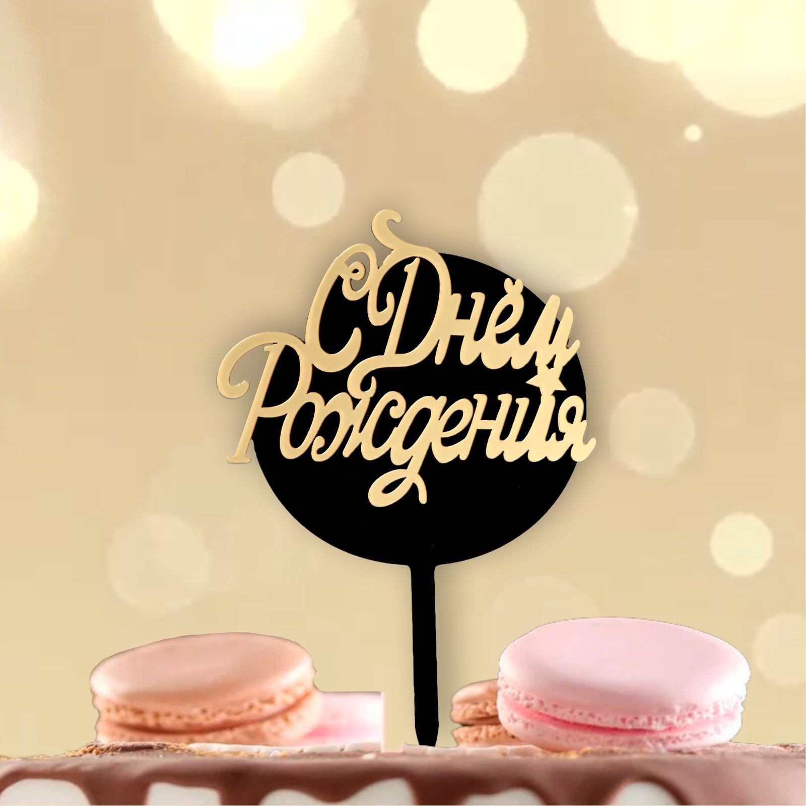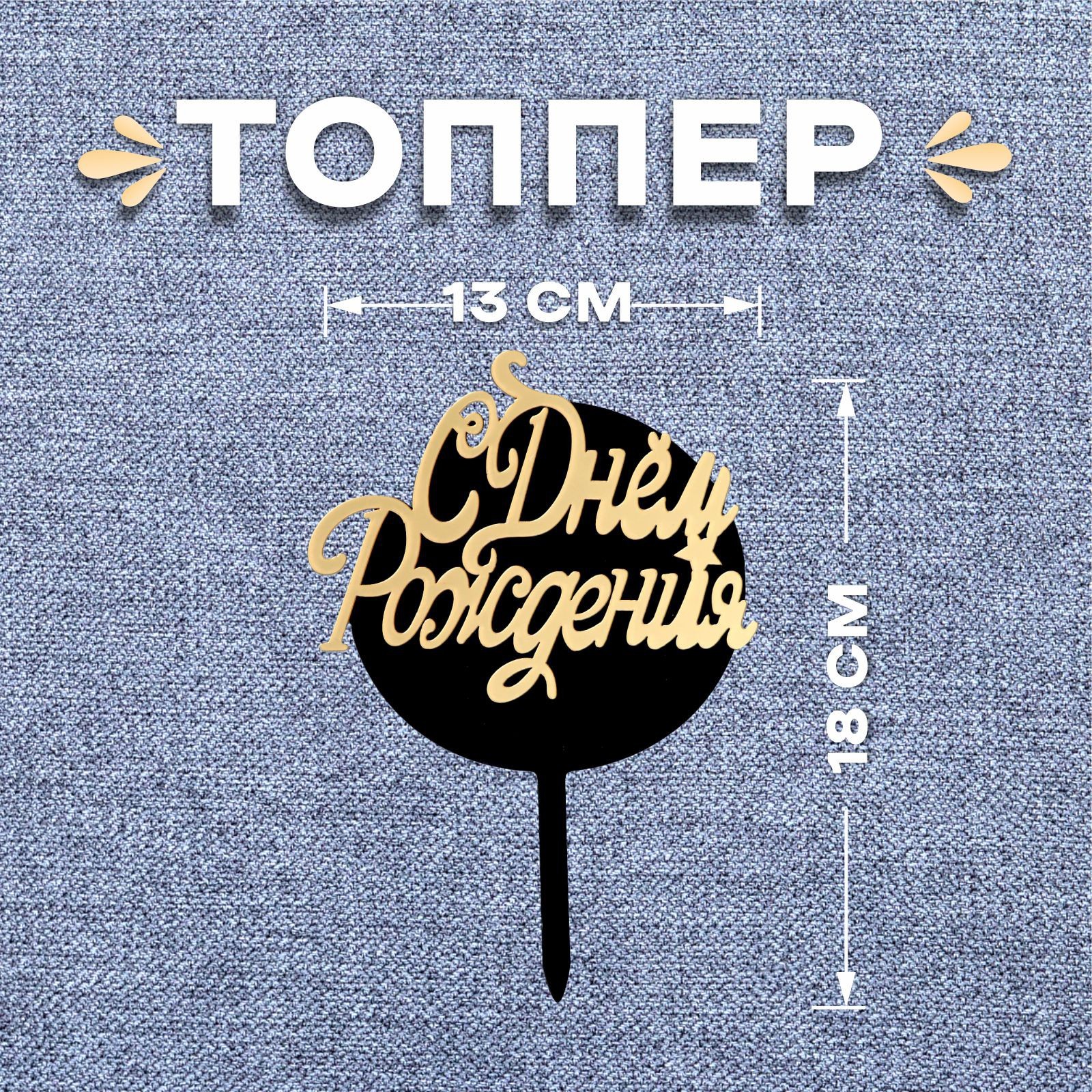 Топпер «с днём рождения», круг, цвет чёрно-золотой