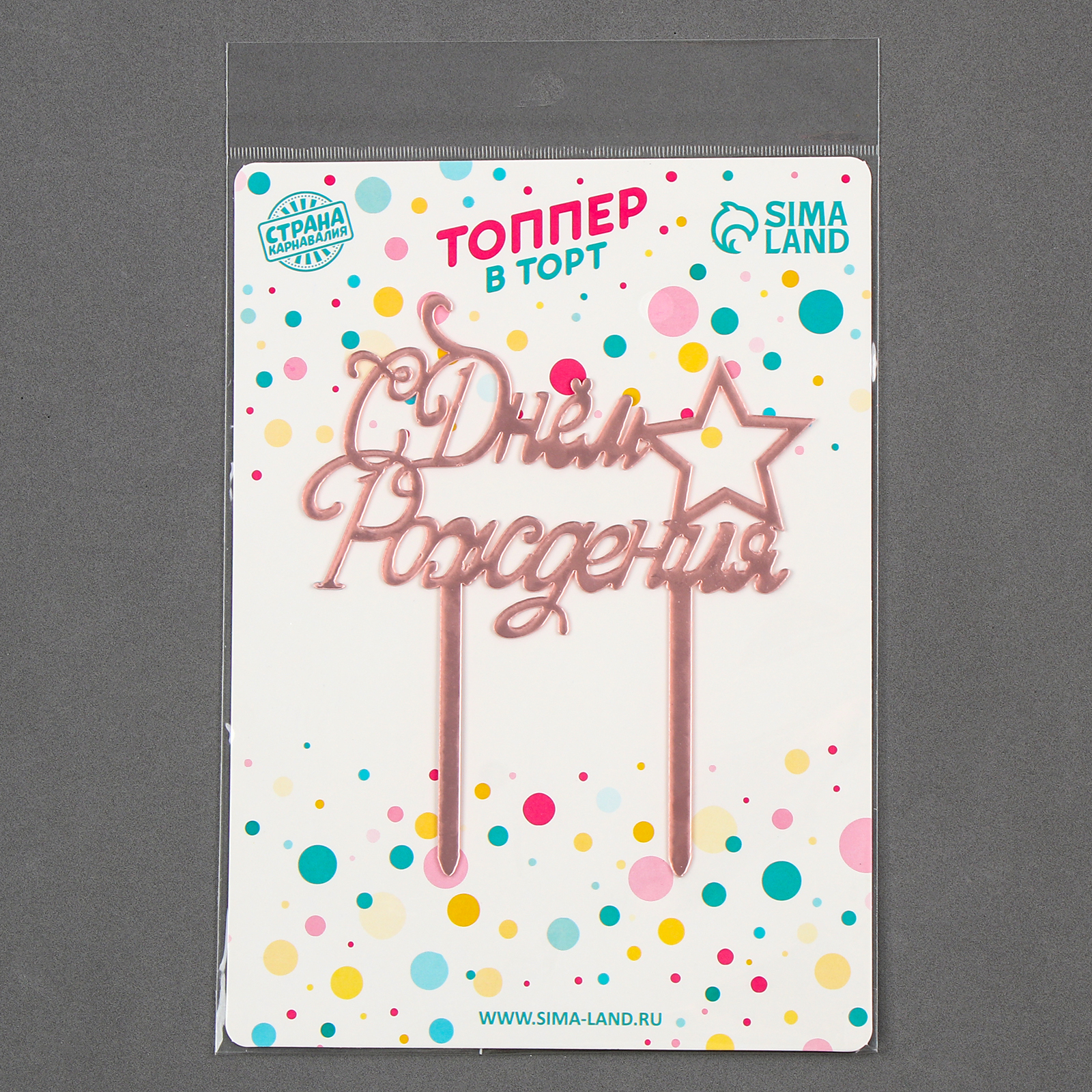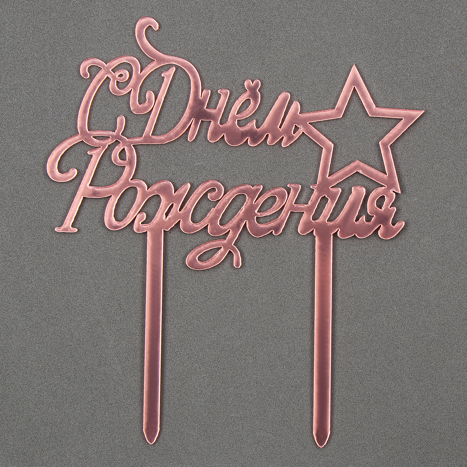 Топпер «с днём рождения» со звездой, цвет розовое золото