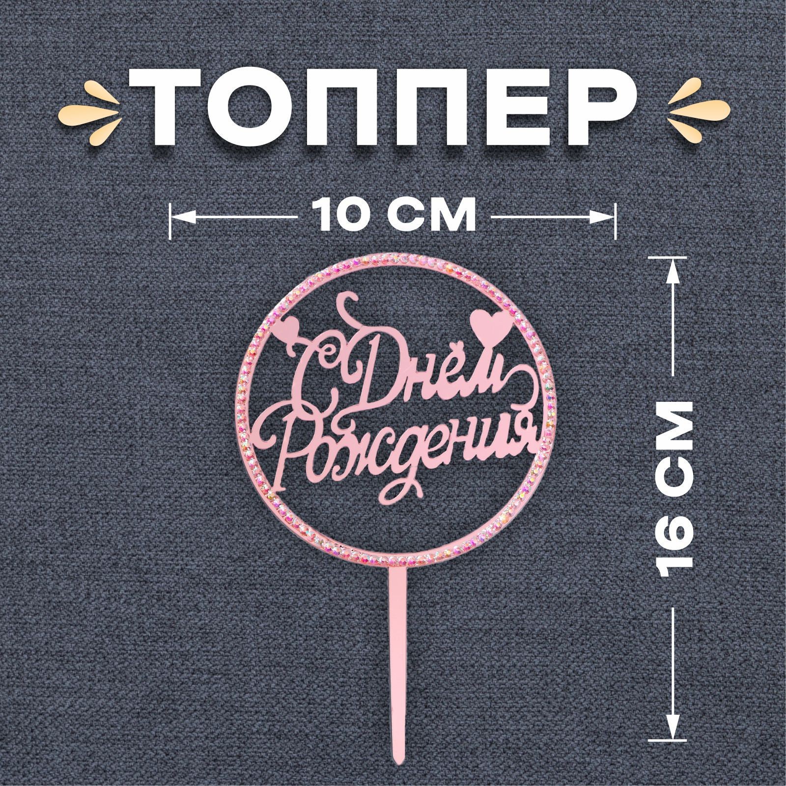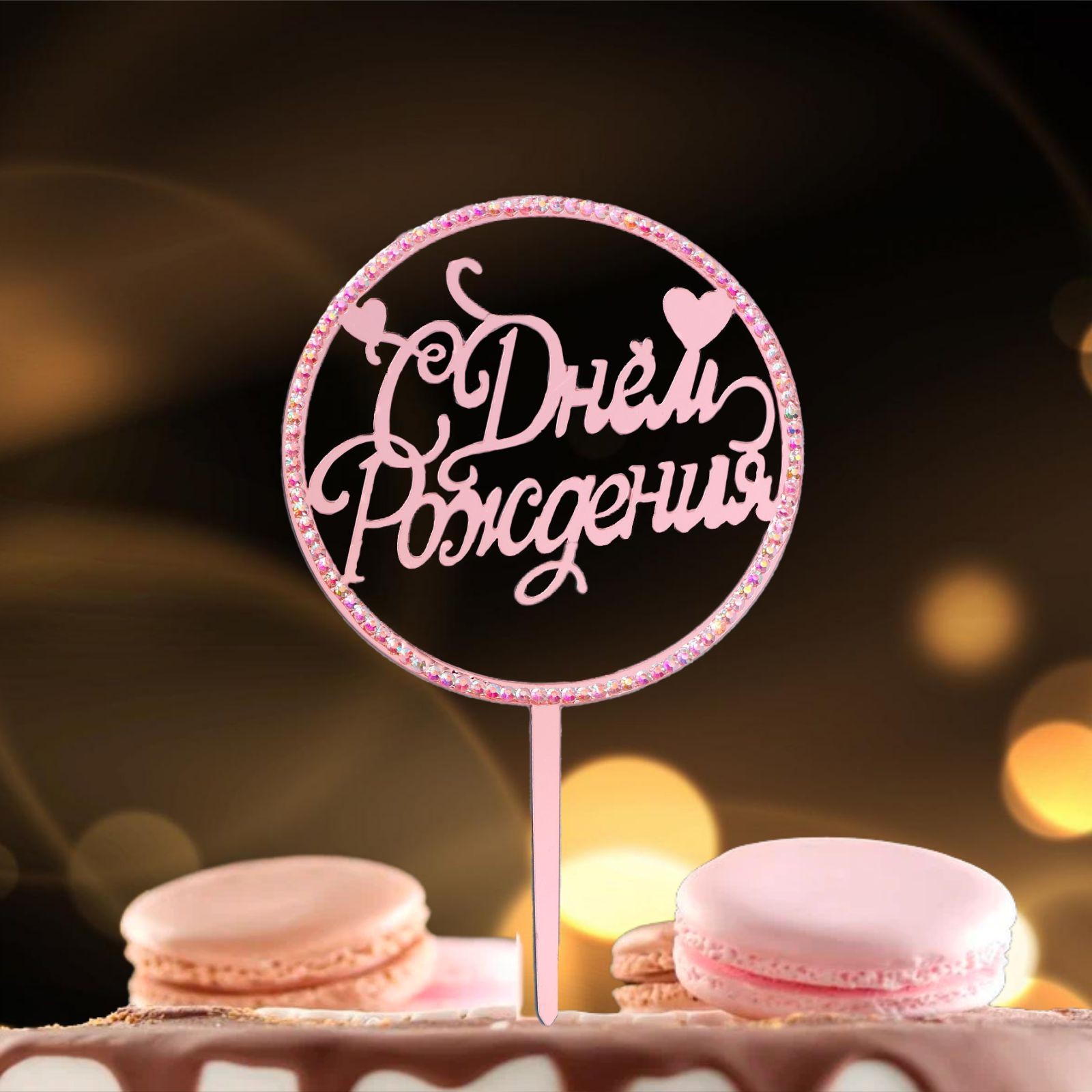 Топпер «с днём рождения», со стразами, цвет розовое золото