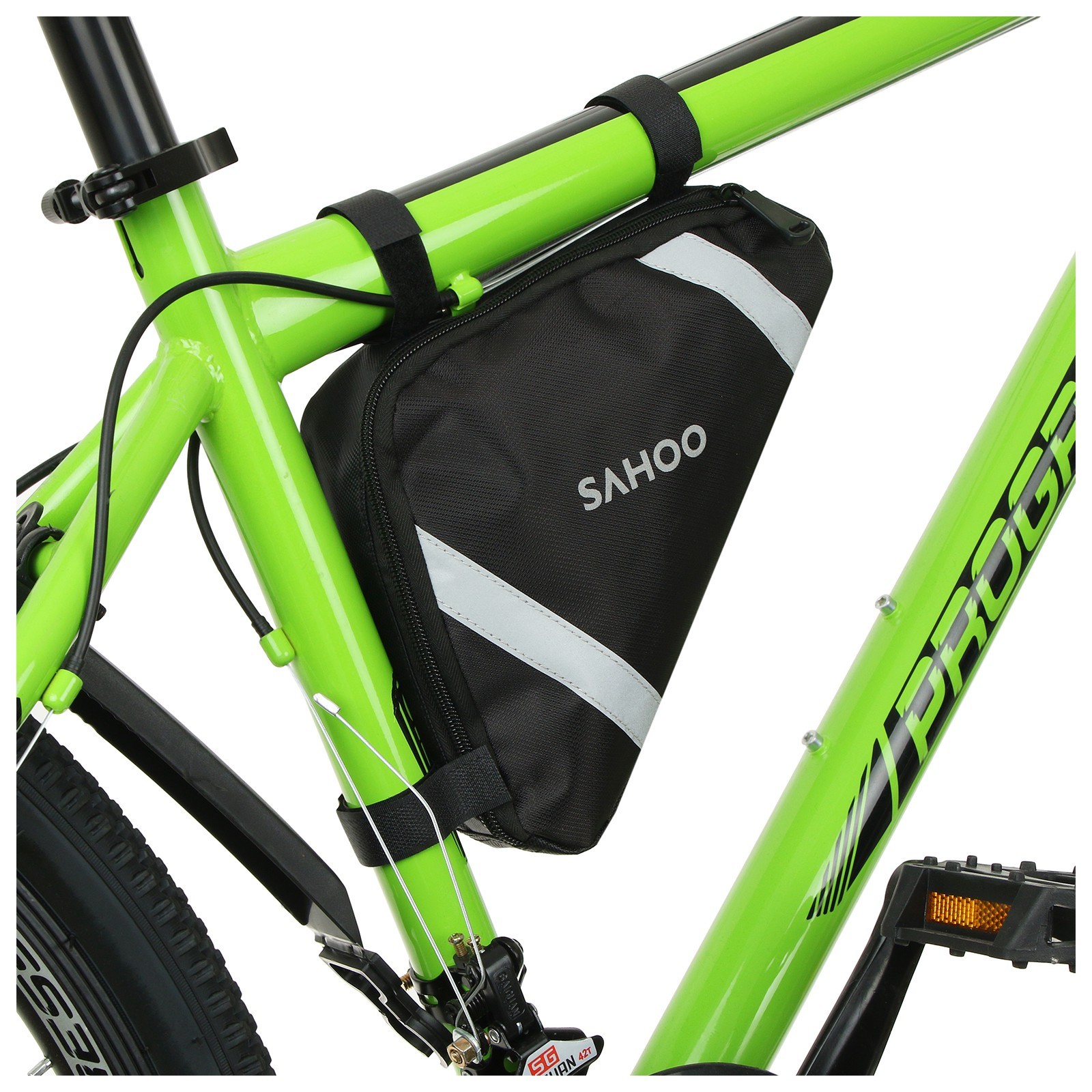 Велосумка sаhoo, на раму. Сумка подходит для всех типов велосипедов, легко крепится и снимается с помощью липучек. Изготовлена из водостойкого полиэстера. Подкладка изготовлена из вспененного полиэтилена. С каждой стороны нанесены по две светоотражающие полосы для повышения безопасности в ночное время. Цвет: Серый Цвет: Чёрный Тип: На раму  развернуть описание ▼