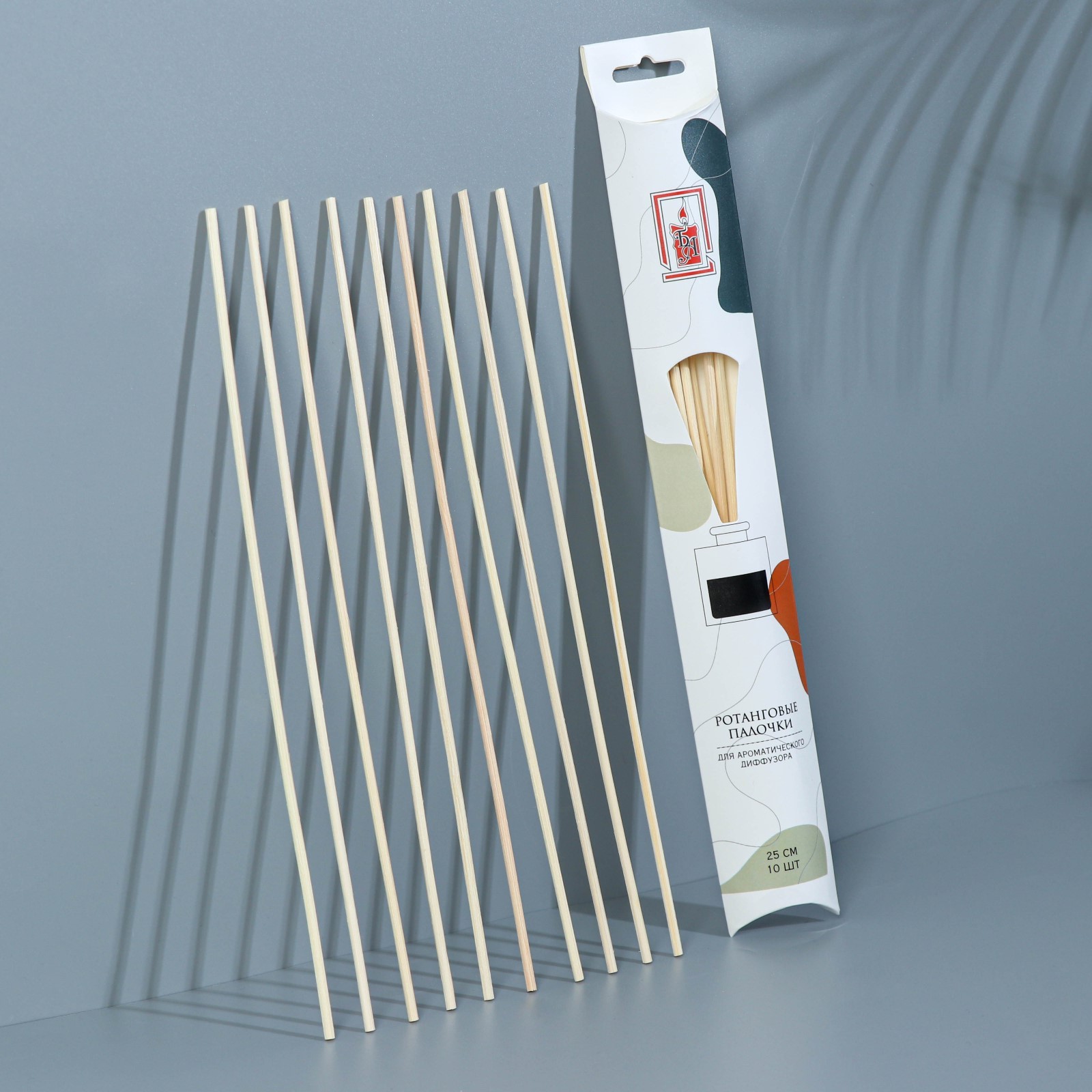 Набор ротанговых палочек для ароматического диффузора, 25х0,3 см, 10 штук. Диффузор — это безопасный, экологически чистый и натуральный способ ароматизации помещения, является прекрасной альтернативой ароматизированным спреям. Чтобы аромат оставался насыщенным, 1–2 раза в день доставайте палочки и переворачивайте их, вставляя другим концом в стеклянную колбу. Интенсивность аромата зависит от влажности воздуха (в более влажном помещении летучесть аромата сильнее), проветриваемости помещения и количества палочек. parts count: 0 Вид ароматизатора: Диффузор Аромат: Без аромата  развернуть описание ▼
