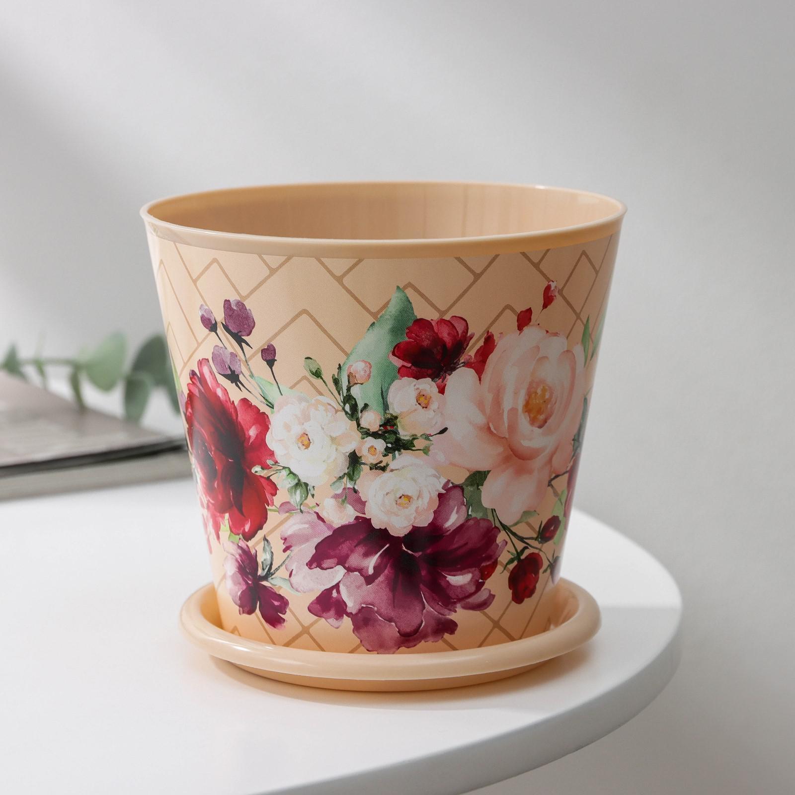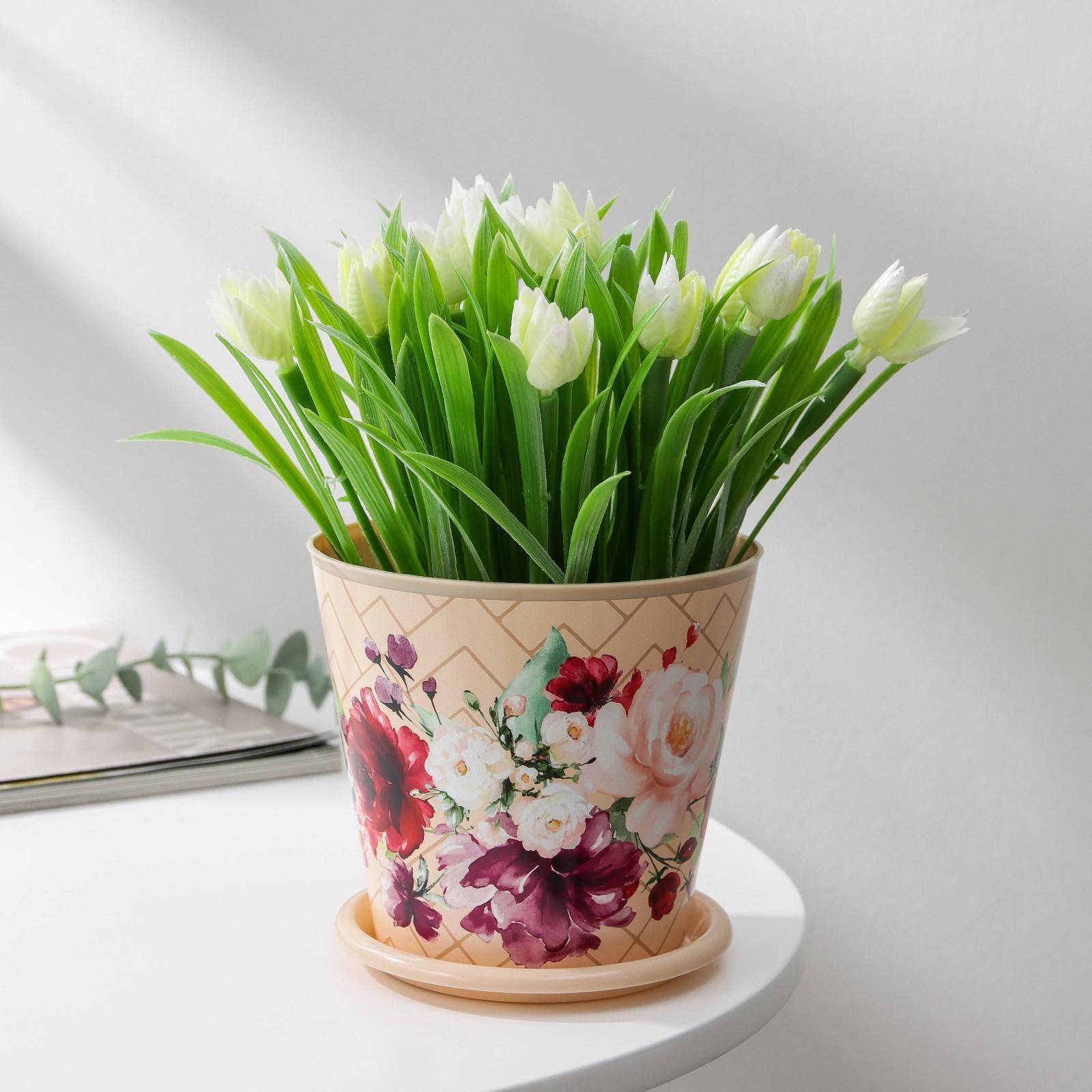 Горшок для цветов доляна «гранди», 800 мл, цвет бежевый. Представляем вам цветочные горшки от собственной торговой марки Доляна — идеальное решение для создания уютной атмосферы в вашем доме или офисе. Наши горшки изготовлены из высококачественного пластика, который обеспечивает долговечность и устойчивость к внешним воздействиям. Горшки имеют стильный дизайн и представлены в различных размерах и цветах, что позволяет подобрать идеальный вариант для любого интерьера. Благодаря наличию поддона, вы можете не беспокоиться о том, что вода прольётся на подоконник или мебель. Наши цветочные горшки станут прекрасным дополнением к вашему домашнему или офисному интерьеру. Они помогут создать уютную атмосферу и подчеркнуть вашу индивидуальность. Преимущества наших цветочных горшков: Изготовлены из качественного пластика.Имеют стильный дизайн.Представлены в разных размерах и цветах.Оснащены поддонами для защиты поверхностей от влаги.Доступны по цене.Не упустите возможность приобрести качественные цветочные горшки по доступной цене! Создайте уют и гармонию в своём доме или офисе с помощью наших горшков. Цвет:Бежевый|Форма:Круглая|Диаметр, см:12|Высота, см:11|Объём, л:0.8|Вид установки:Настольное|Рисунок:Да|Тематика праздника:8 Марта|Материал:Пластик|Можно оставлять зимой на улице:Нет|Поддон в комплекте:Да|Страна:Россия  развернуть описание ▼