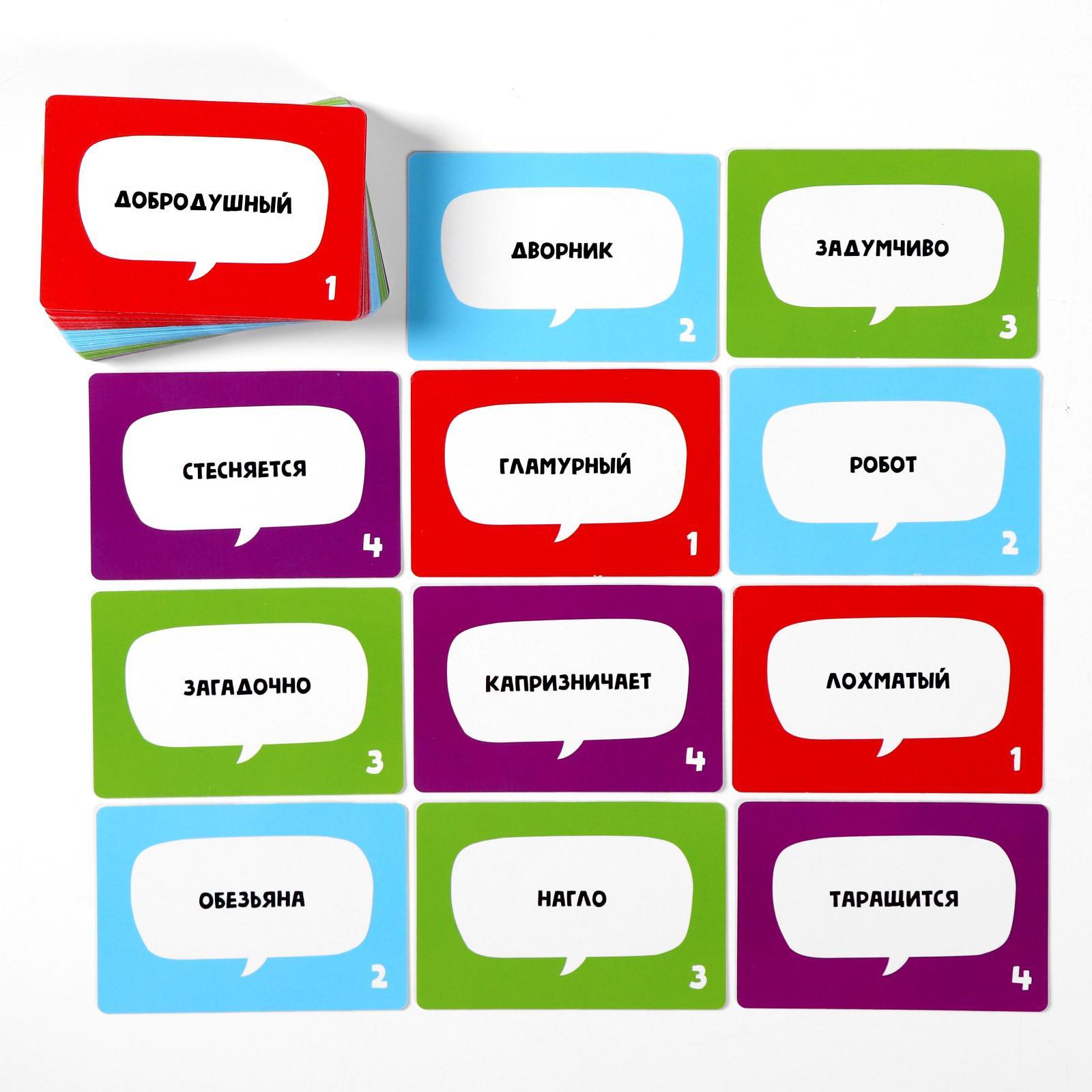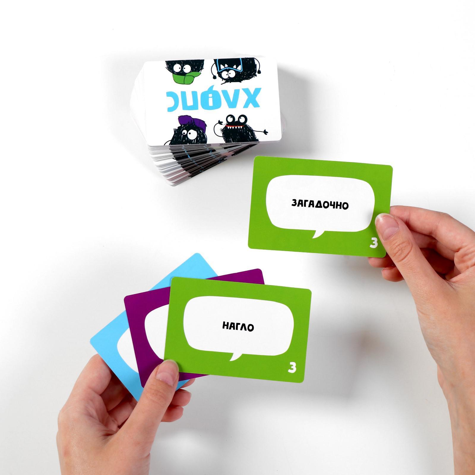 Настольная игра «хлопс», 100 карт, 12+. Игра «Хлопс» Что нужно компании для отличного настроенияx! Конечно же, веселая игра! Смех, удовольствие, азарт гарантированы! Что мы будем делатьx В игре есть карточки четырех разных цветов. Задача игроков – собрать по одной карточке каждого цвета; кто первый сделает это, кричит «Хлопс!», а следом за ним – все остальные. А теперь самое интересное… Тот, кто последним крикнул «Хлопс!», должен взять карточки первого игрока, сложить из слов предложение и показать его. Другие участники угадывают. Предложения получаются самые забавные, например, «Наглый дворник задумчиво пыхтит». Тут можно проявить весь свой артистизм, находчивость и изобретательность, а также развеселить всех без исключения! Сложно ли играть в «Хлопс»x Играть в эту игру очень просто! Внутри коробки вы найдете подробные правила. Кто будет победителем Решать вам. Возможно, его вообще не будет, если вы играете ради удовольствия, или это будет самый удачливый участник, который быстрее всех собирает карточки, а может быть, - самый талантливый, чьи пантомимы вызовут наибольший восторг… Внутри вы найдёте: 100 карточек; правила игры. Возраст:От 12 лет|Материал:Бумага|Материал:Картон|Количество игроков:От 3 игроков|Время игры:15 минут|Жанр игры:Коммуникативная|Жанр игры:На реакцию и внимание|Развитие навыков:Реакция|Развитие навыков:Внимание|Количество игроков:3 - 10|Материал:Картон|Страна:Китай  развернуть описание ▼